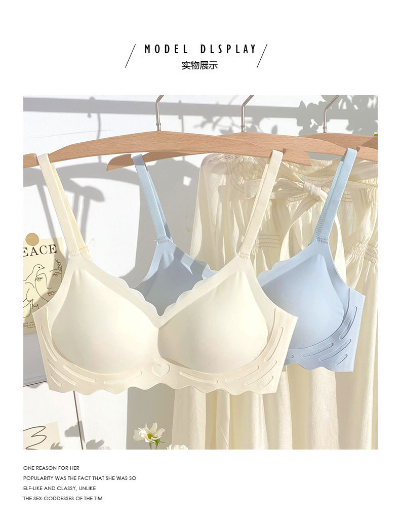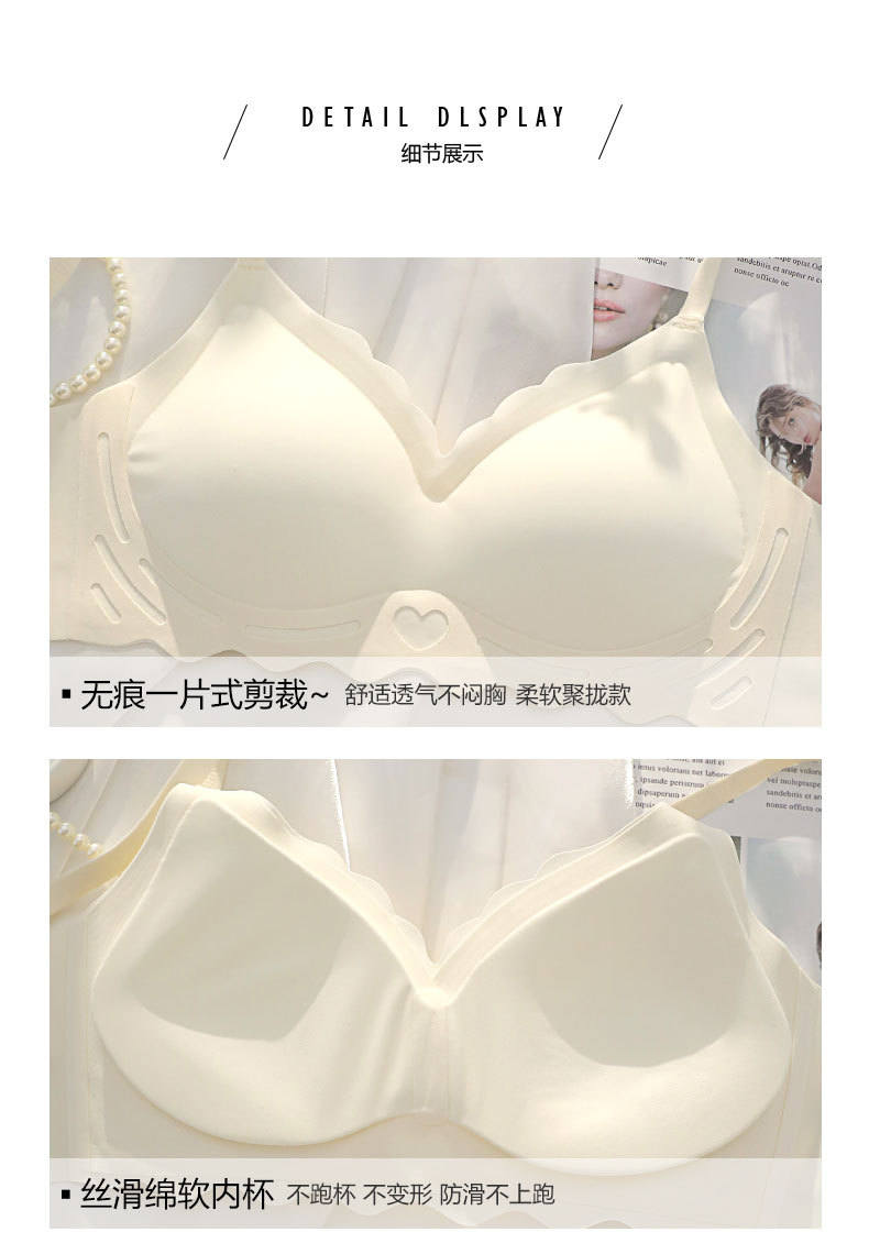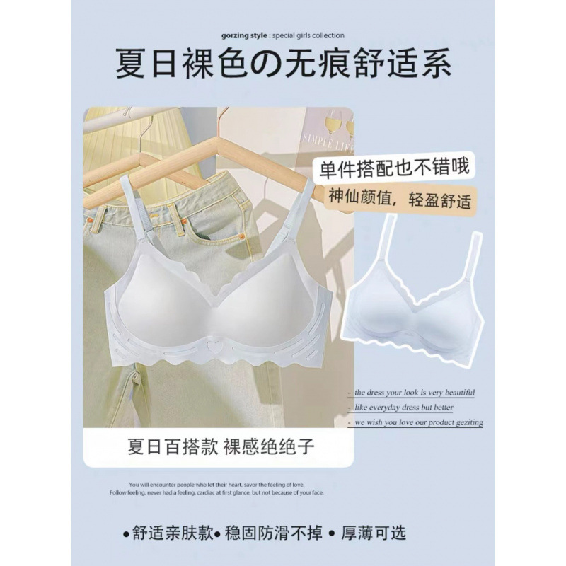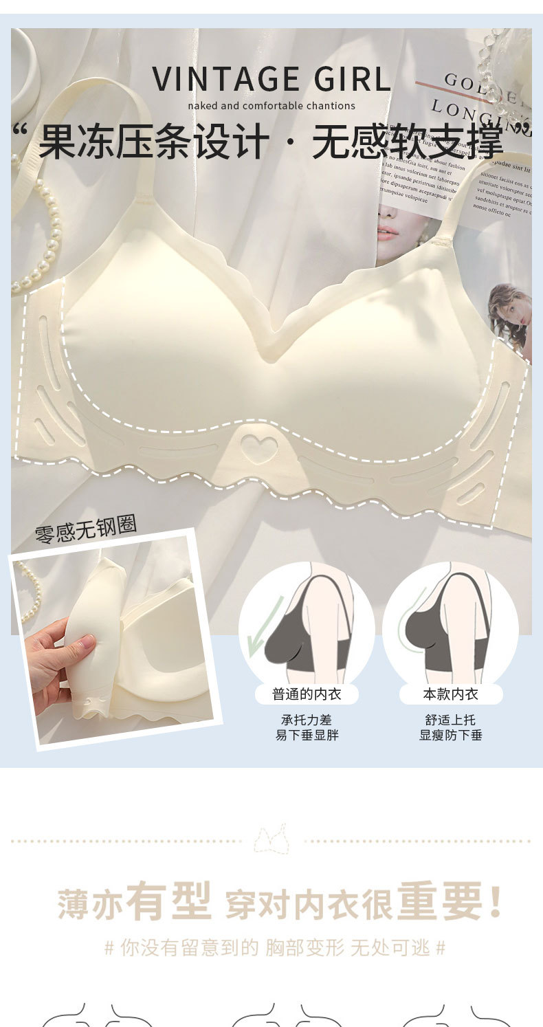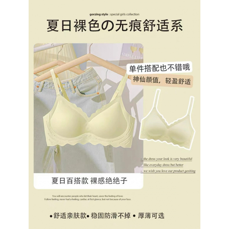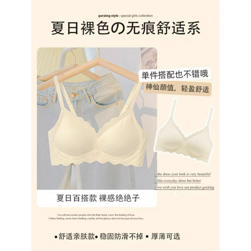 벌거 벗은 원활한 젤리 부드러운 지원 속옷 소녀 스타일 작은 가슴 수집 봄과 여름 얇은 강철 반지 텍스트 브래지어 세트