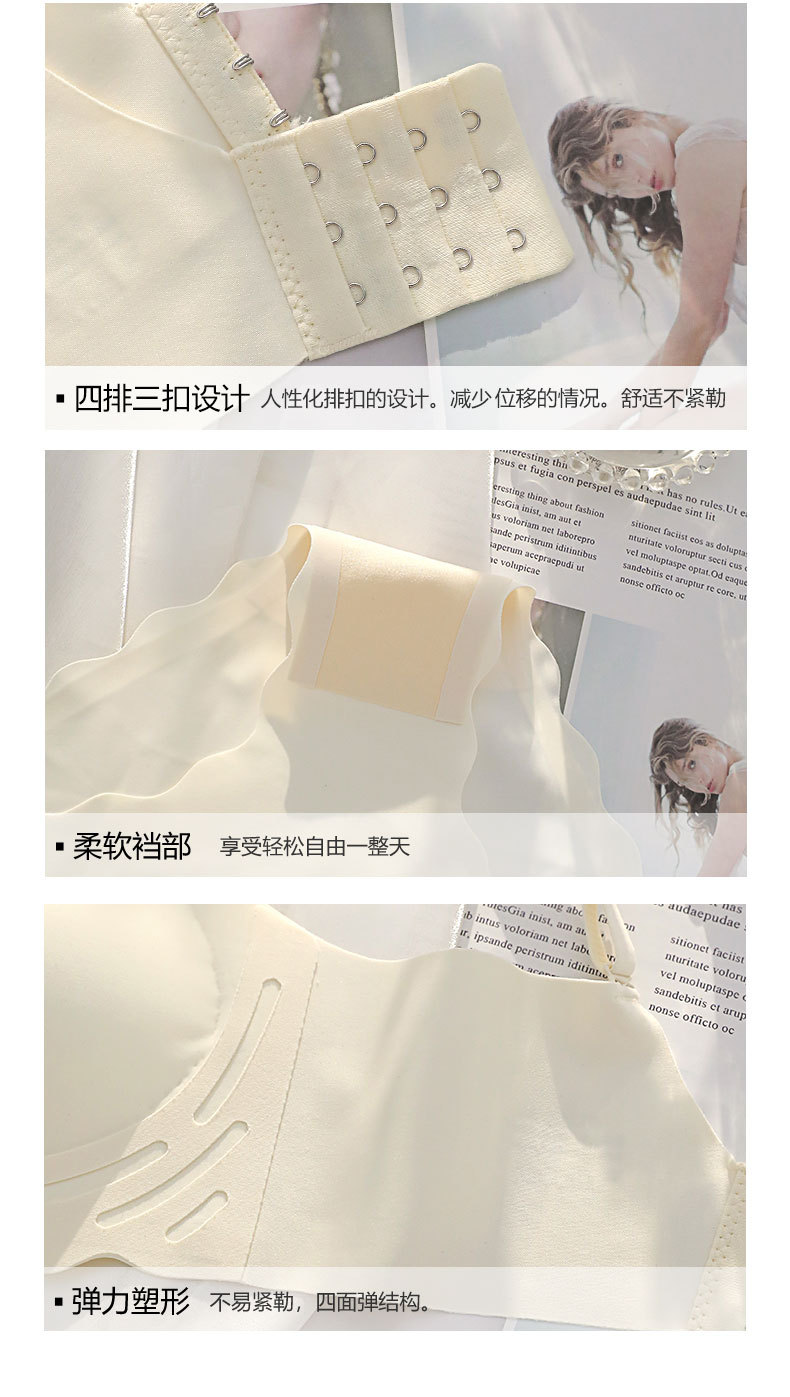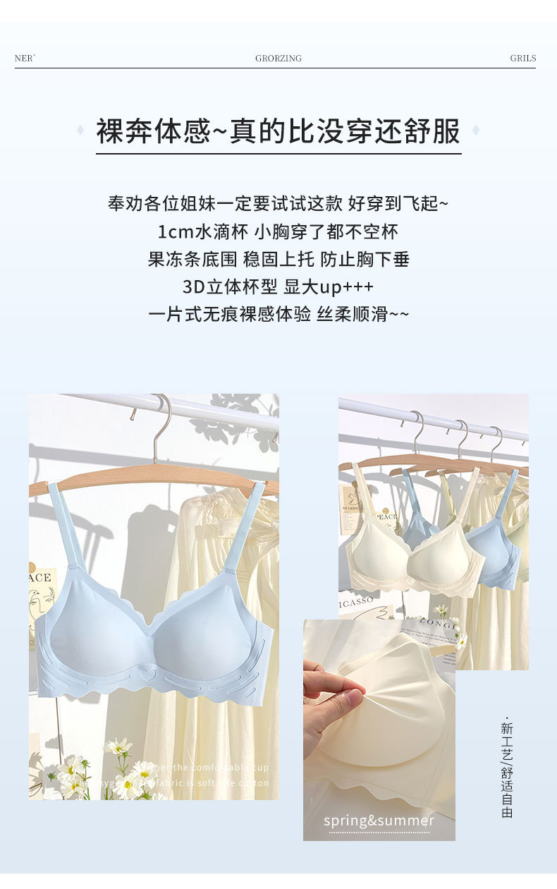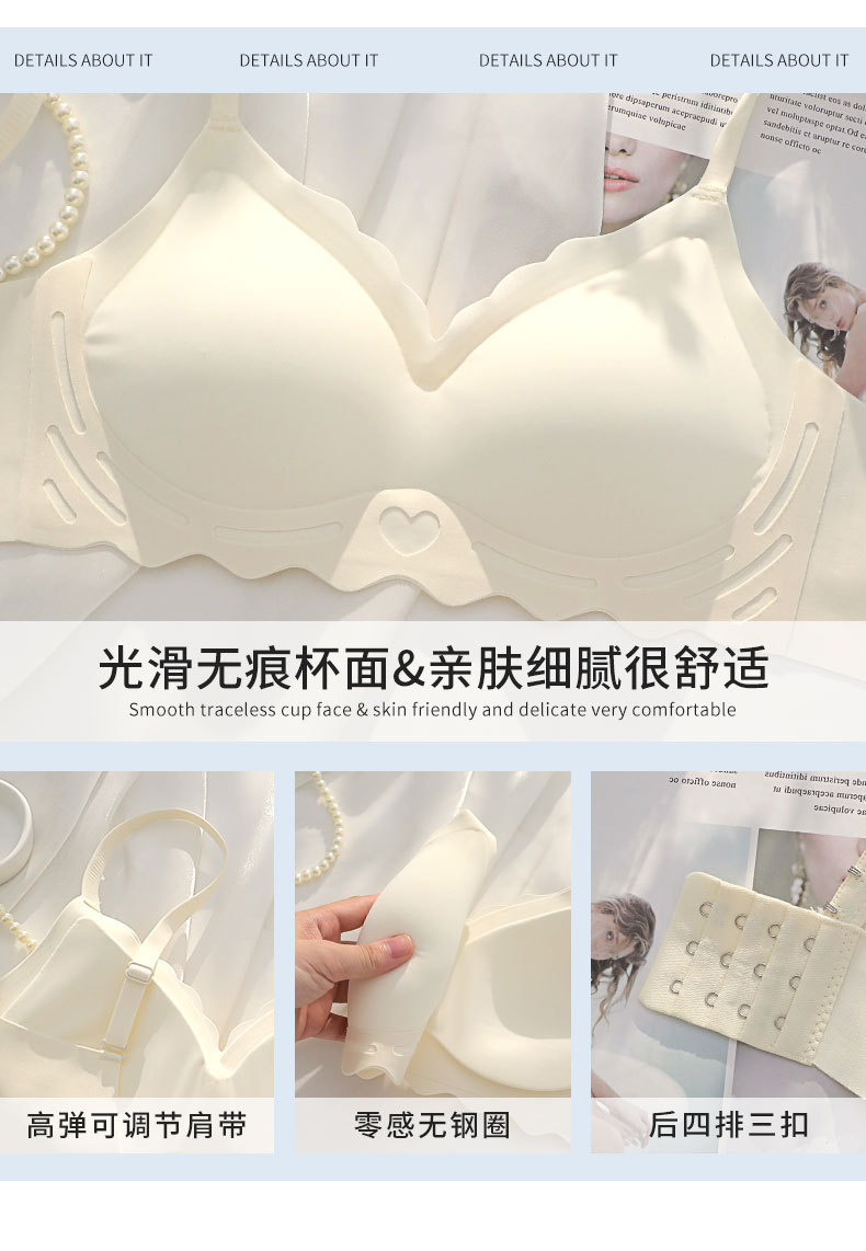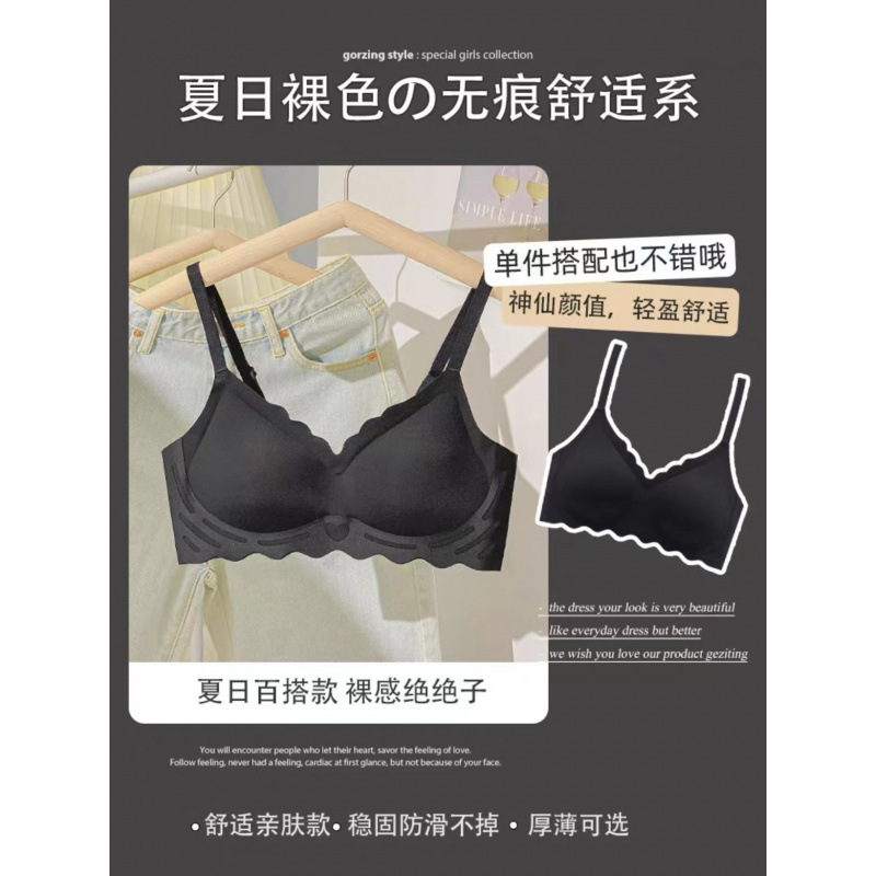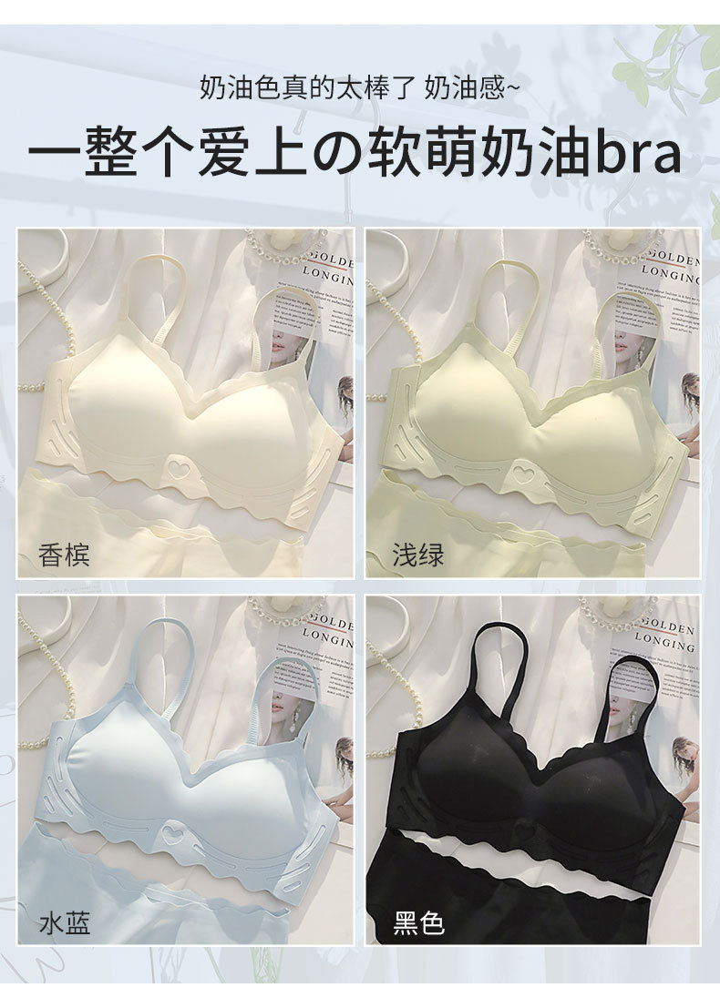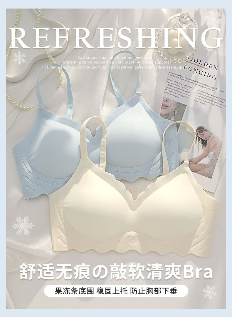 벌거 벗은 원활한 젤리 부드러운 지원 속옷 소녀 스타일 작은 가슴 수집 봄과 여름 얇은 강철 반지 텍스트 브래지어 세트