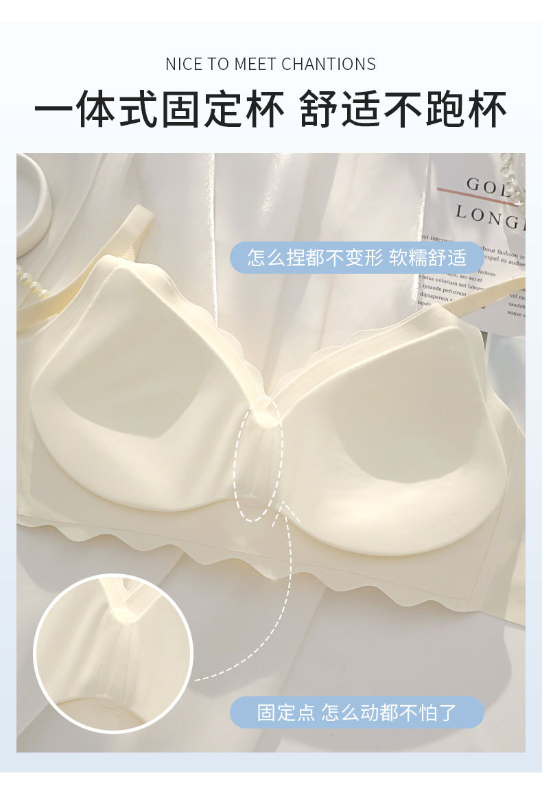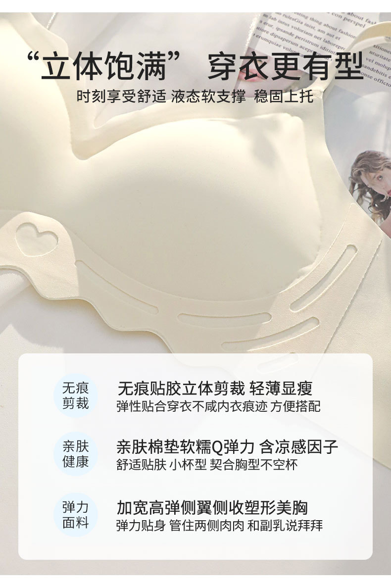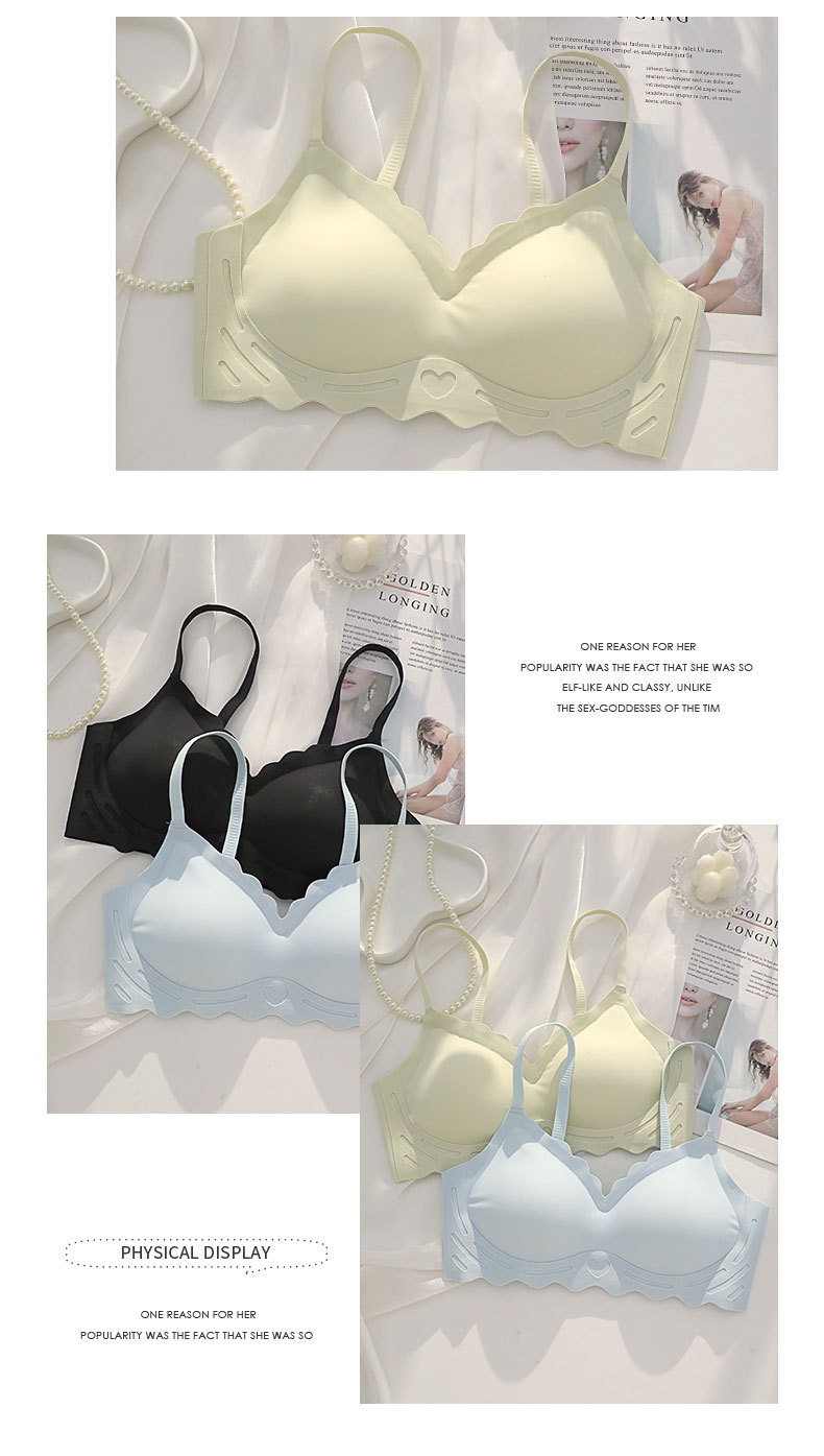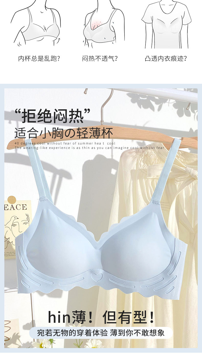 벌거 벗은 원활한 젤리 부드러운 지원 속옷 소녀 스타일 작은 가슴 수집 봄과 여름 얇은 강철 반지 텍스트 브래지어 세트
