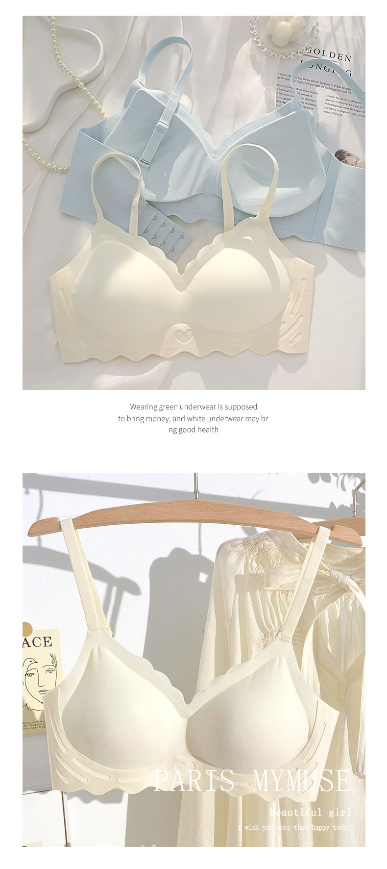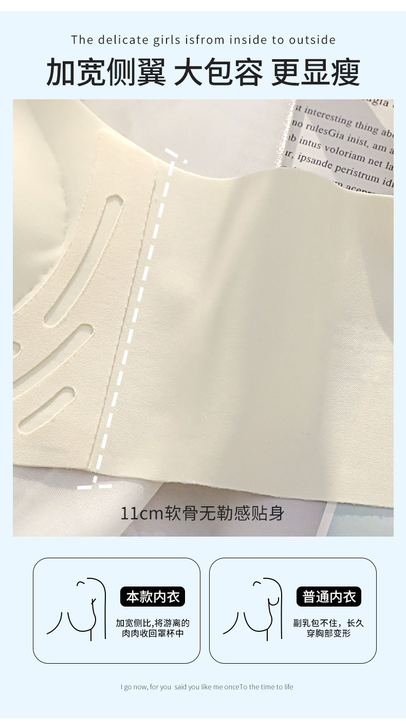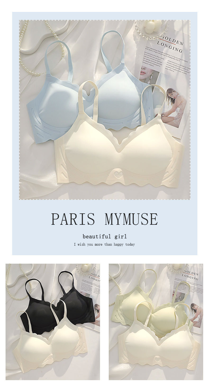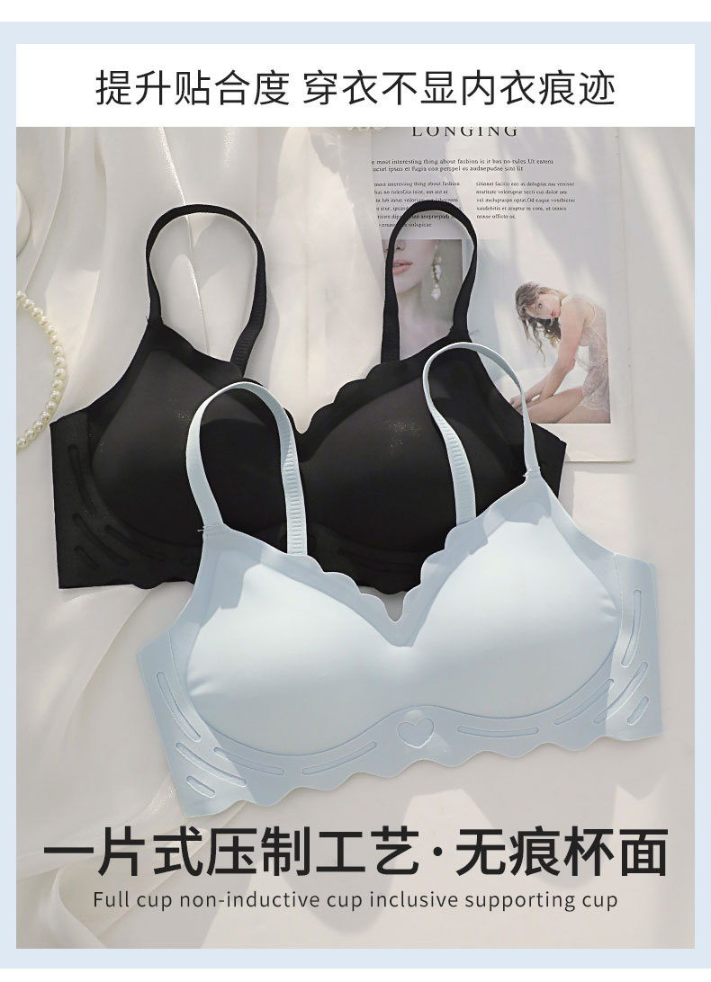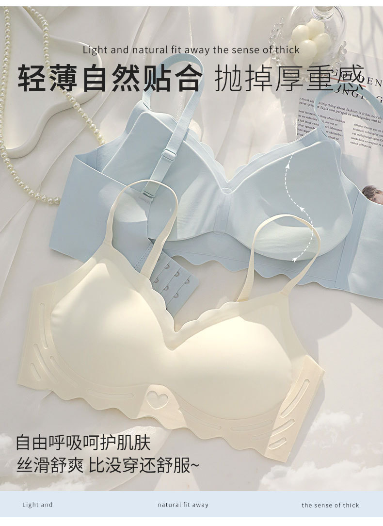 벌거 벗은 원활한 젤리 부드러운 지원 속옷 소녀 스타일 작은 가슴 수집 봄과 여름 얇은 강철 반지 텍스트 브래지어 세트