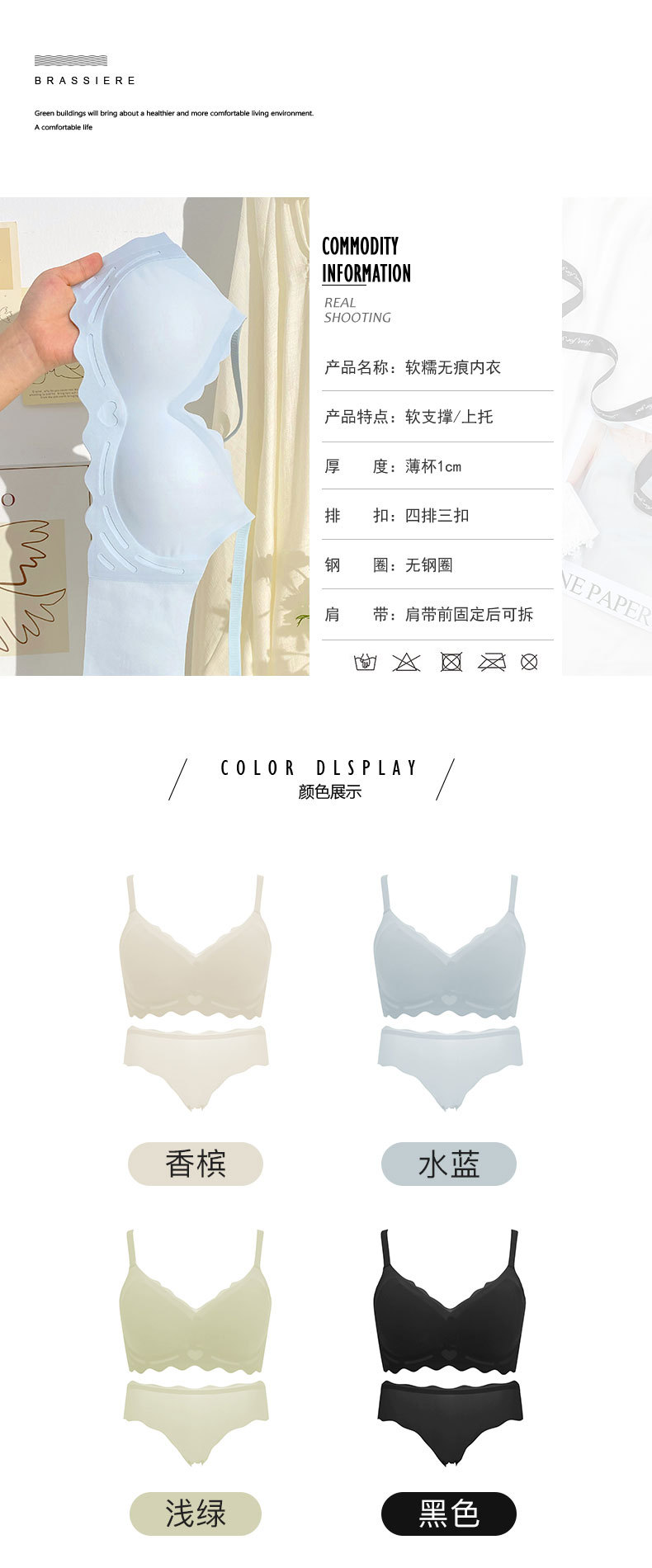 벌거 벗은 원활한 젤리 부드러운 지원 속옷 소녀 스타일 작은 가슴 수집 봄과 여름 얇은 강철 반지 텍스트 브래지어 세트스토어 가기