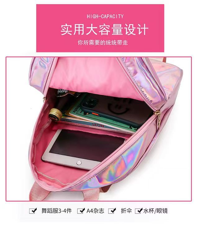 어린이 가방 댄스 가방 학교 가방 레이저 가방 방수 활 패턴 대용량 다채로운 배낭 배낭 남성과 여성