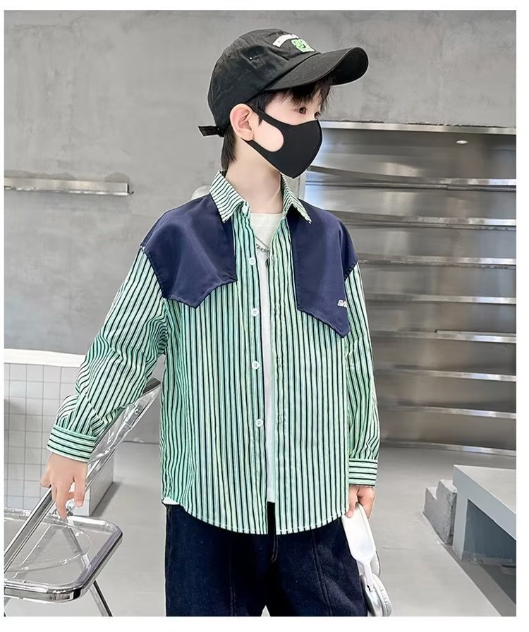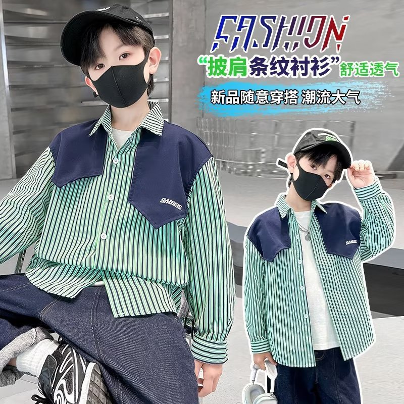 소년 셔츠 봄 2024 새로운 어린이 가을 한국 스타일 셔츠 외부 아기 캐주얼 셔츠 긴 소매 코트 코튼