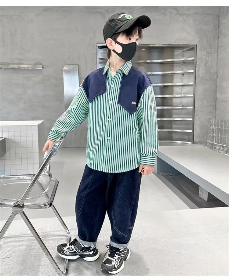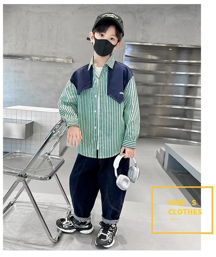 소년 셔츠 봄 2024 새로운 어린이 가을 한국 스타일 셔츠 외부 아기 캐주얼 셔츠 긴 소매 코트 코튼스토어 가기