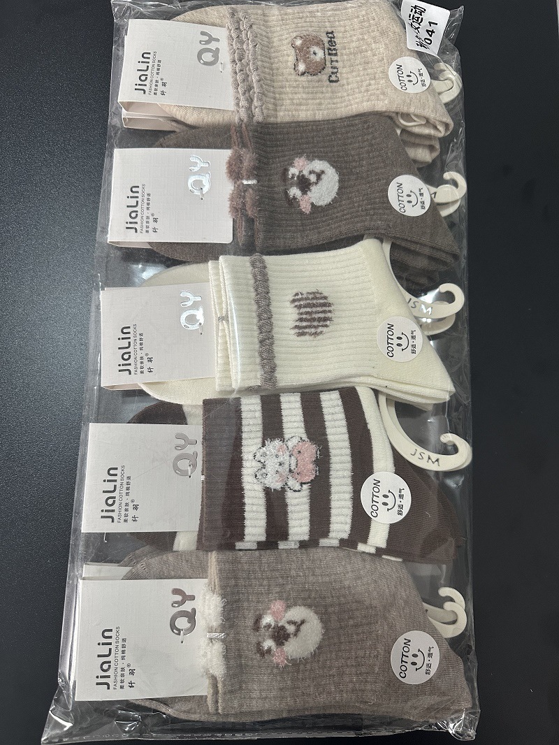 슬림 깃털 남성과 여성 스포츠면 양말 도매 가을과 겨울 두꺼운 줄무늬 만화 중간 튜브 양말 편안한 면 양말 재고