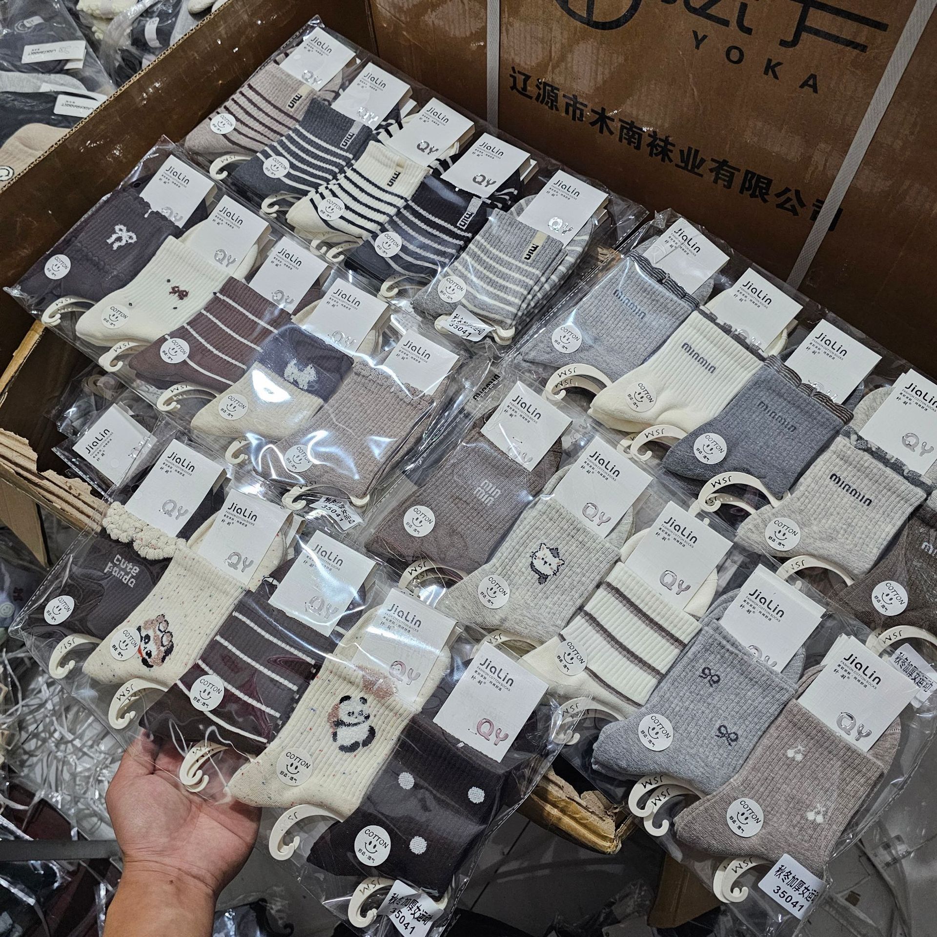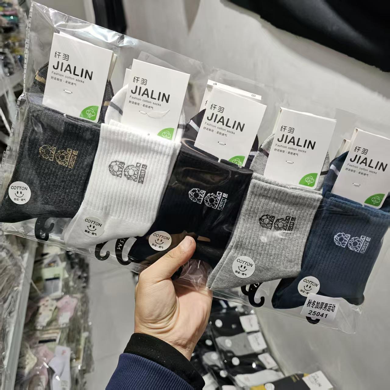슬림 깃털 남성과 여성 스포츠면 양말 도매 가을과 겨울 두꺼운 줄무늬 만화 중간 튜브 양말 편안한 면 양말 재고스토어 가기
