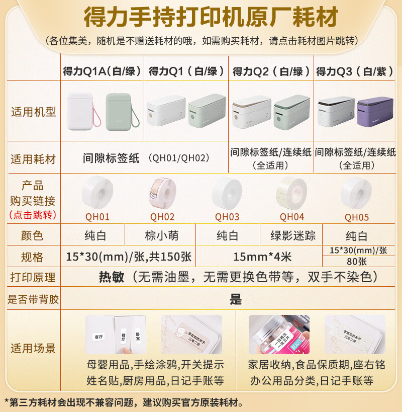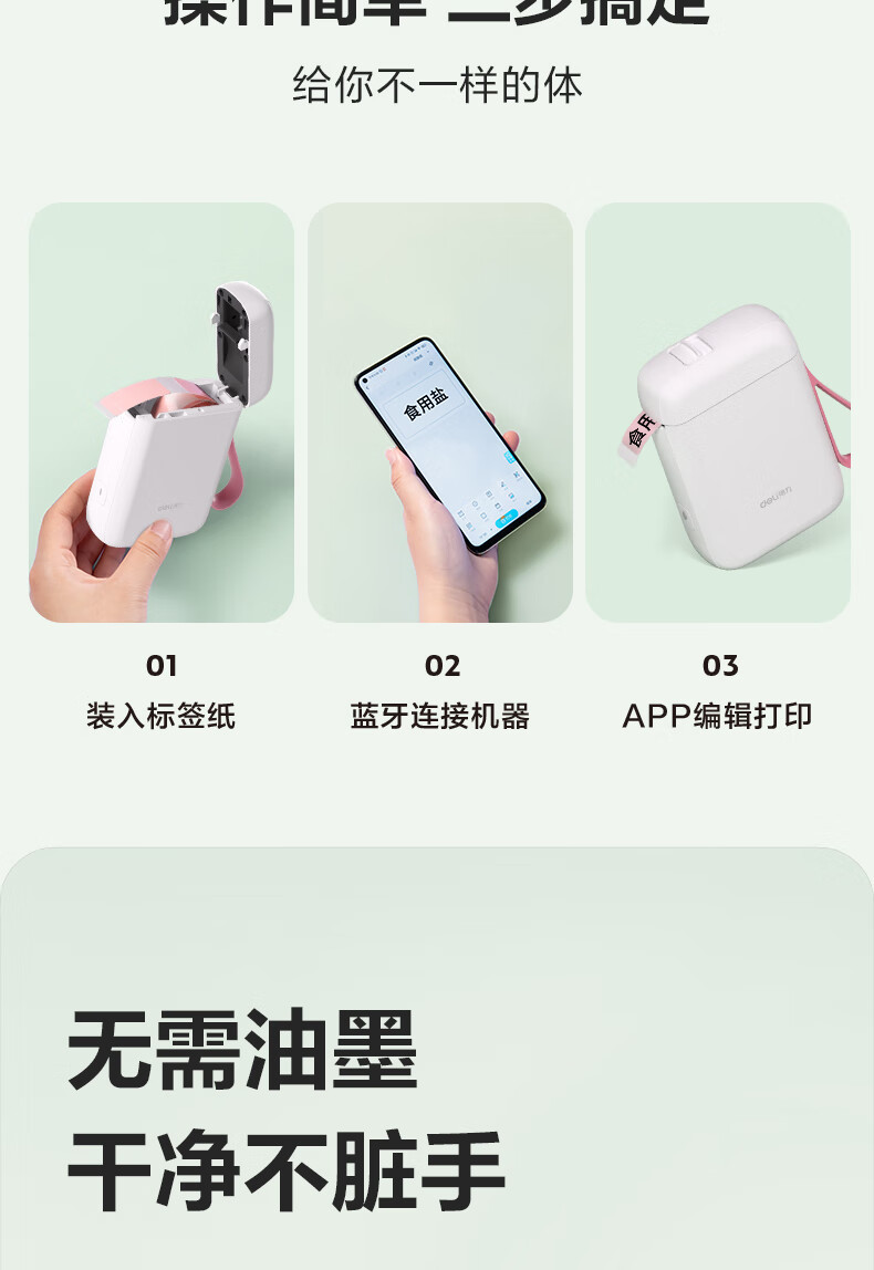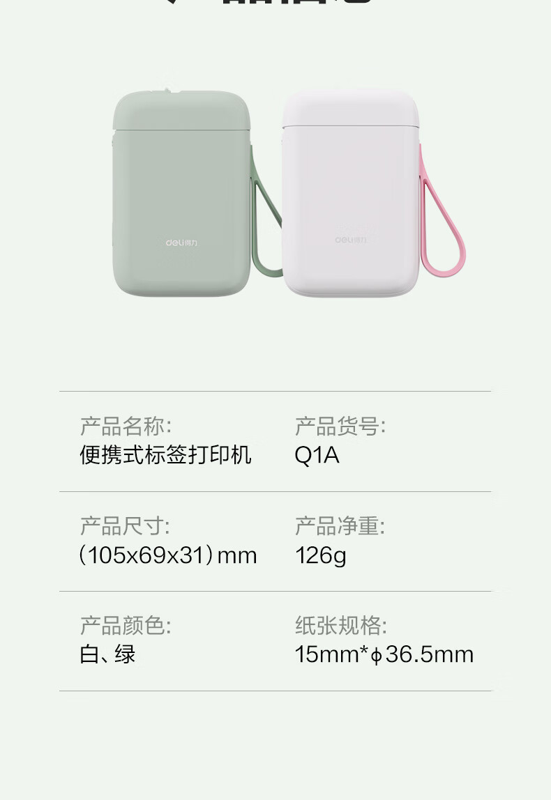 델리 Q1A 홈 휴대용 열 라벨 프린터 식품 라벨 프린터 휴대 전화 블루투스 연결스토어 가기