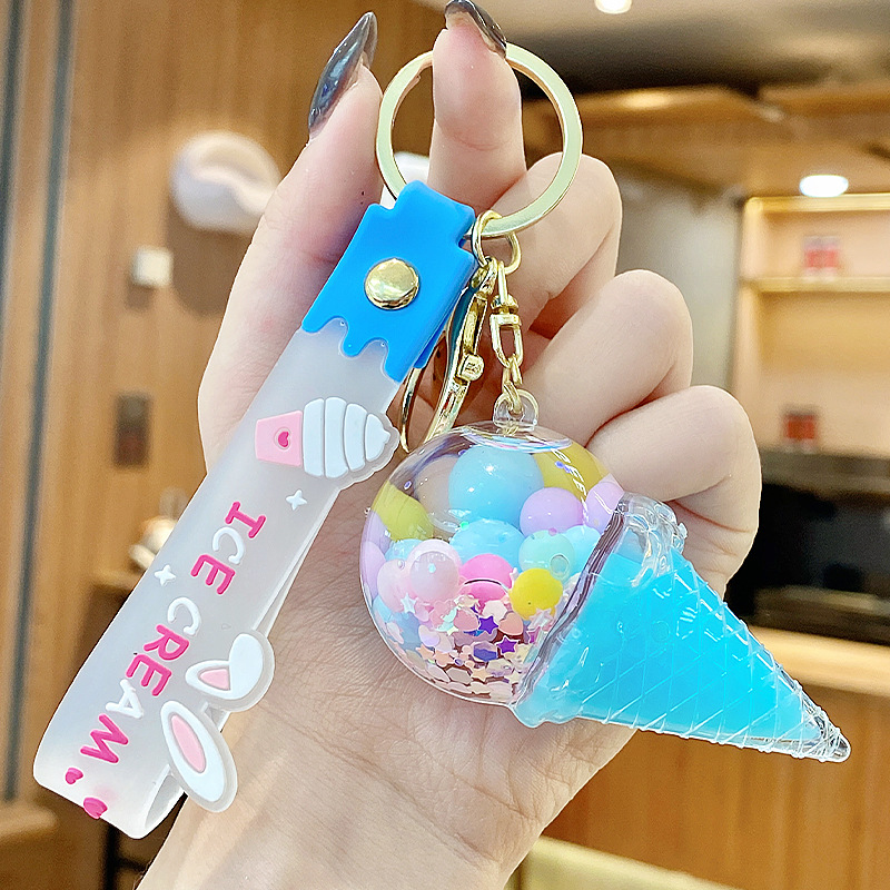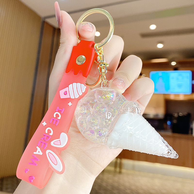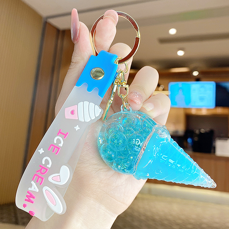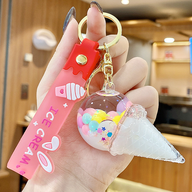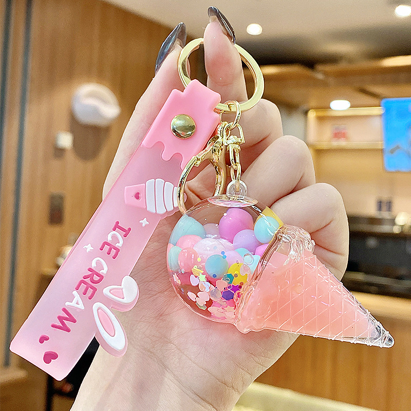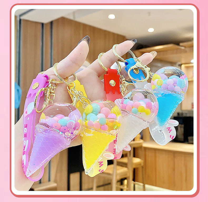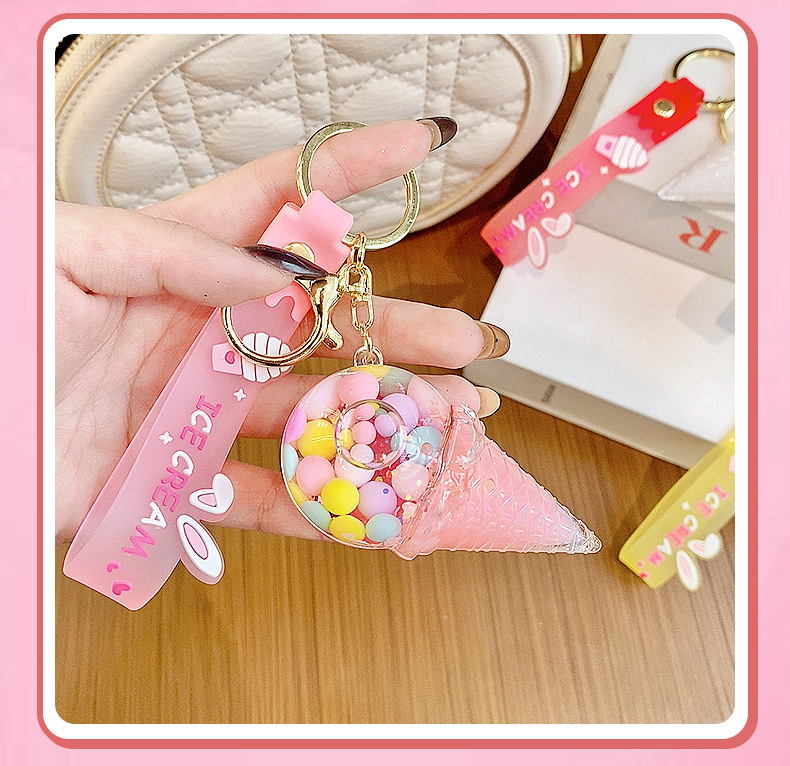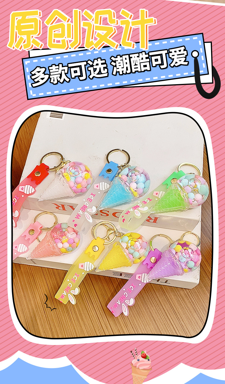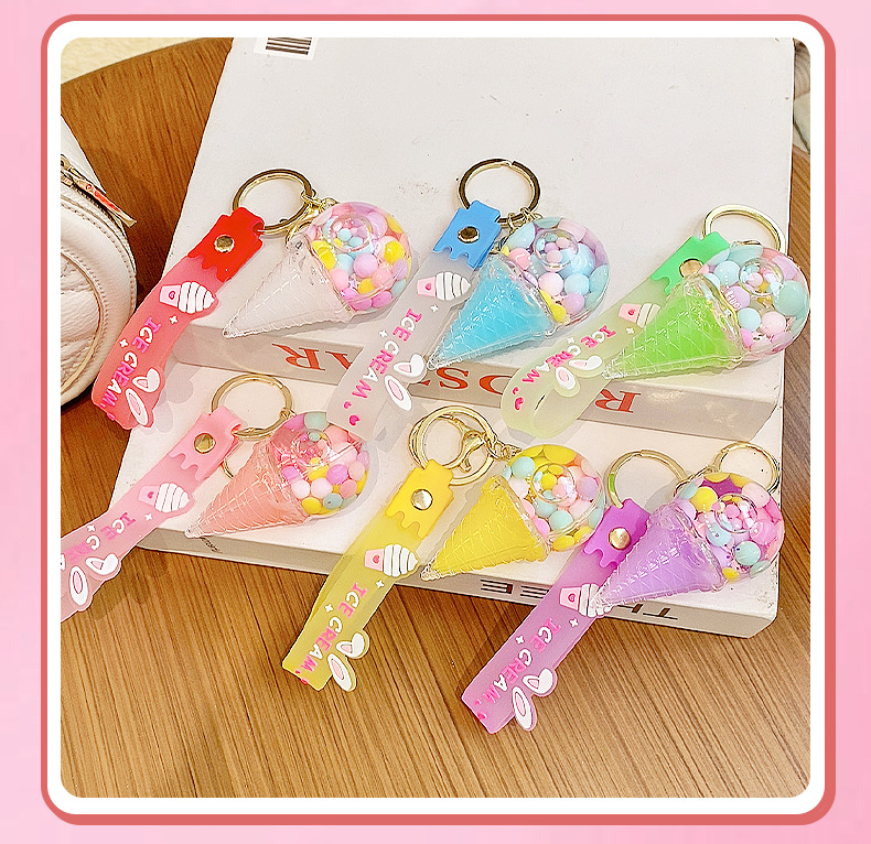 크로스보더 컬러풀 모래시계 아이스크림 플로팅 병 키체인 소녀스러운 하트 모래시계 펜던트 가방 장식품 여성용스토어 가기
