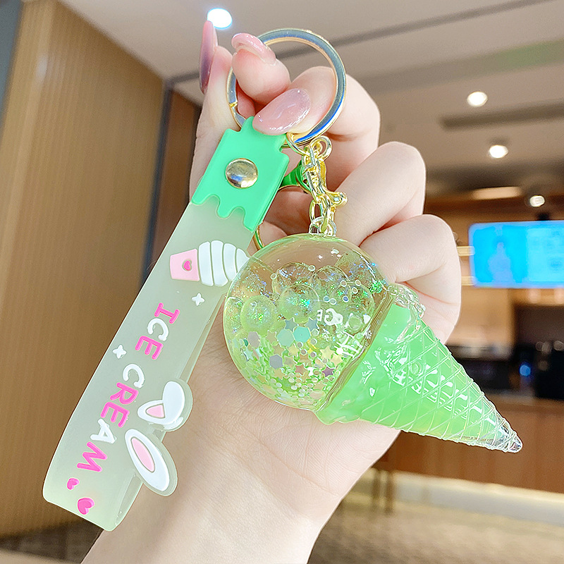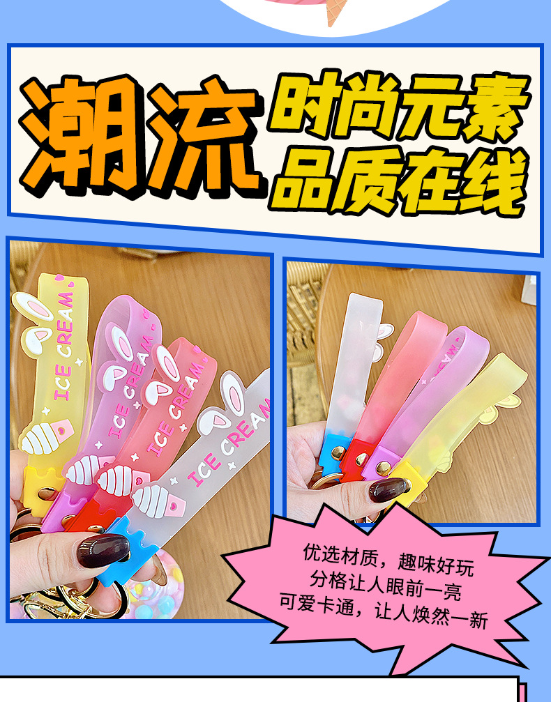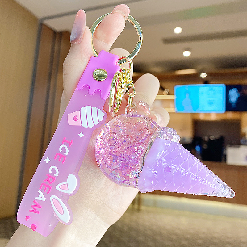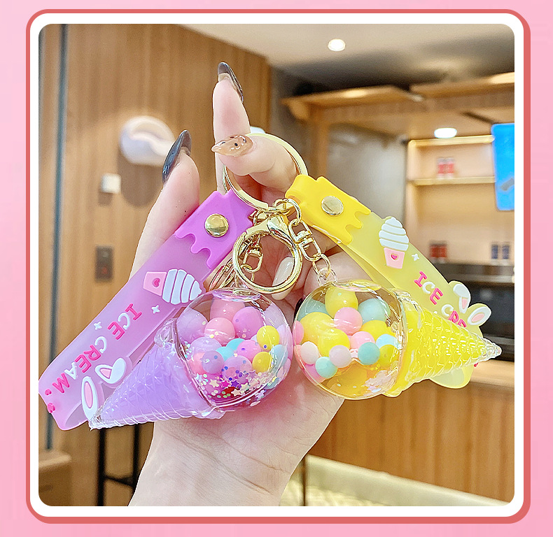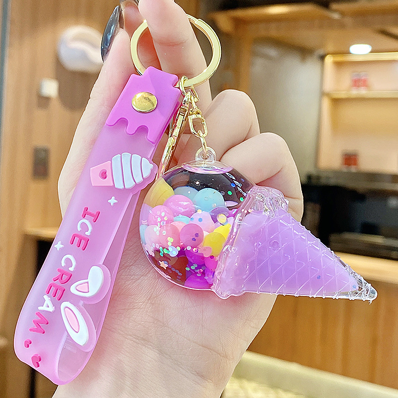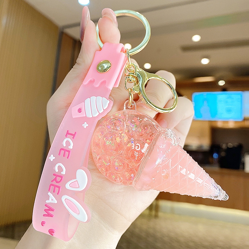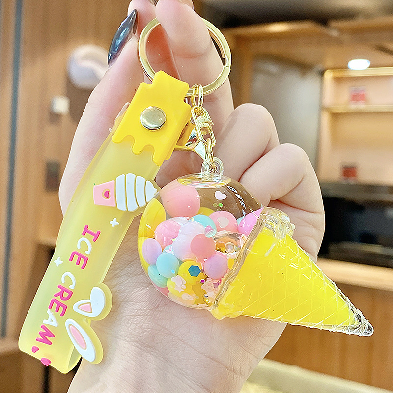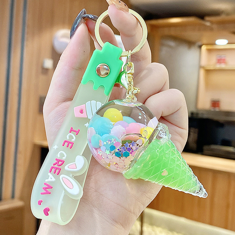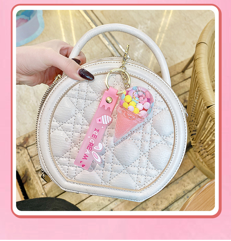 크로스보더 컬러풀 모래시계 아이스크림 플로팅 병 키체인 소녀스러운 하트 모래시계 펜던트 가방 장식품 여성용스토어 가기