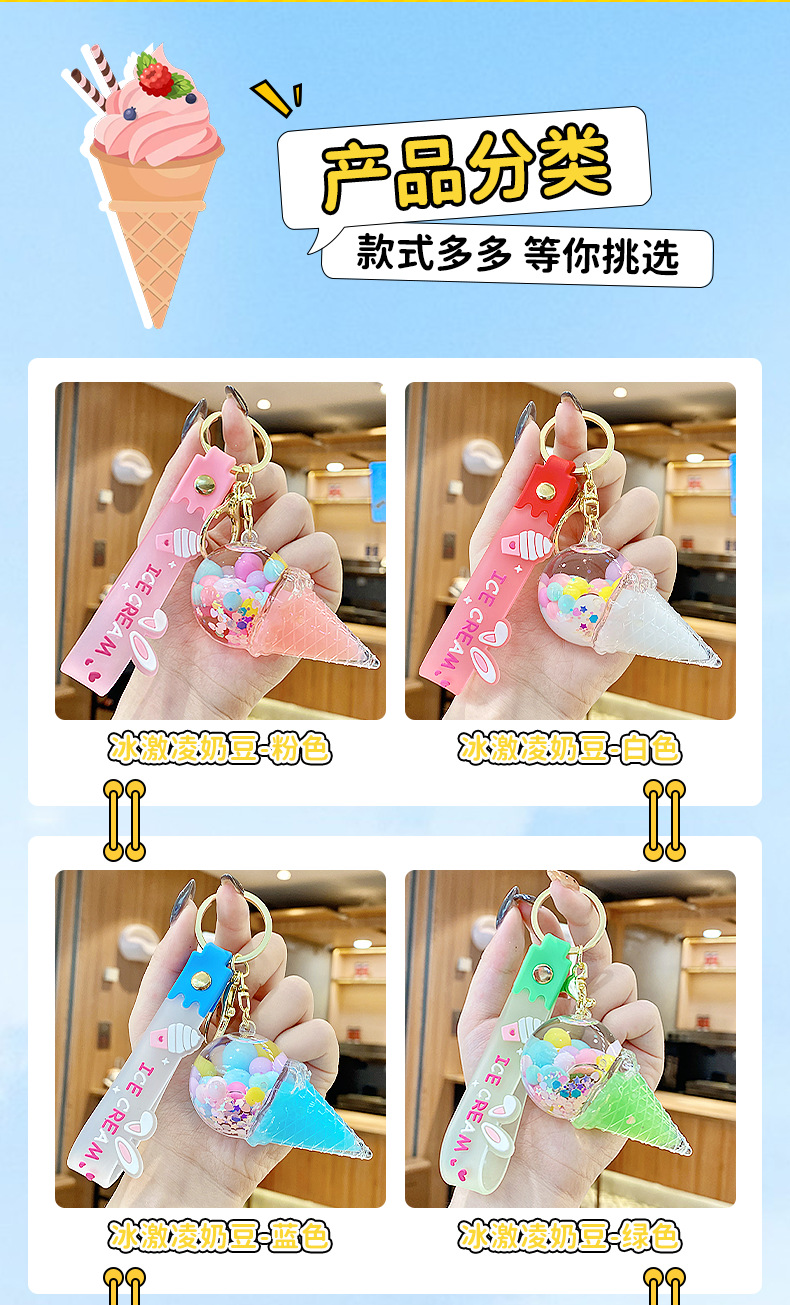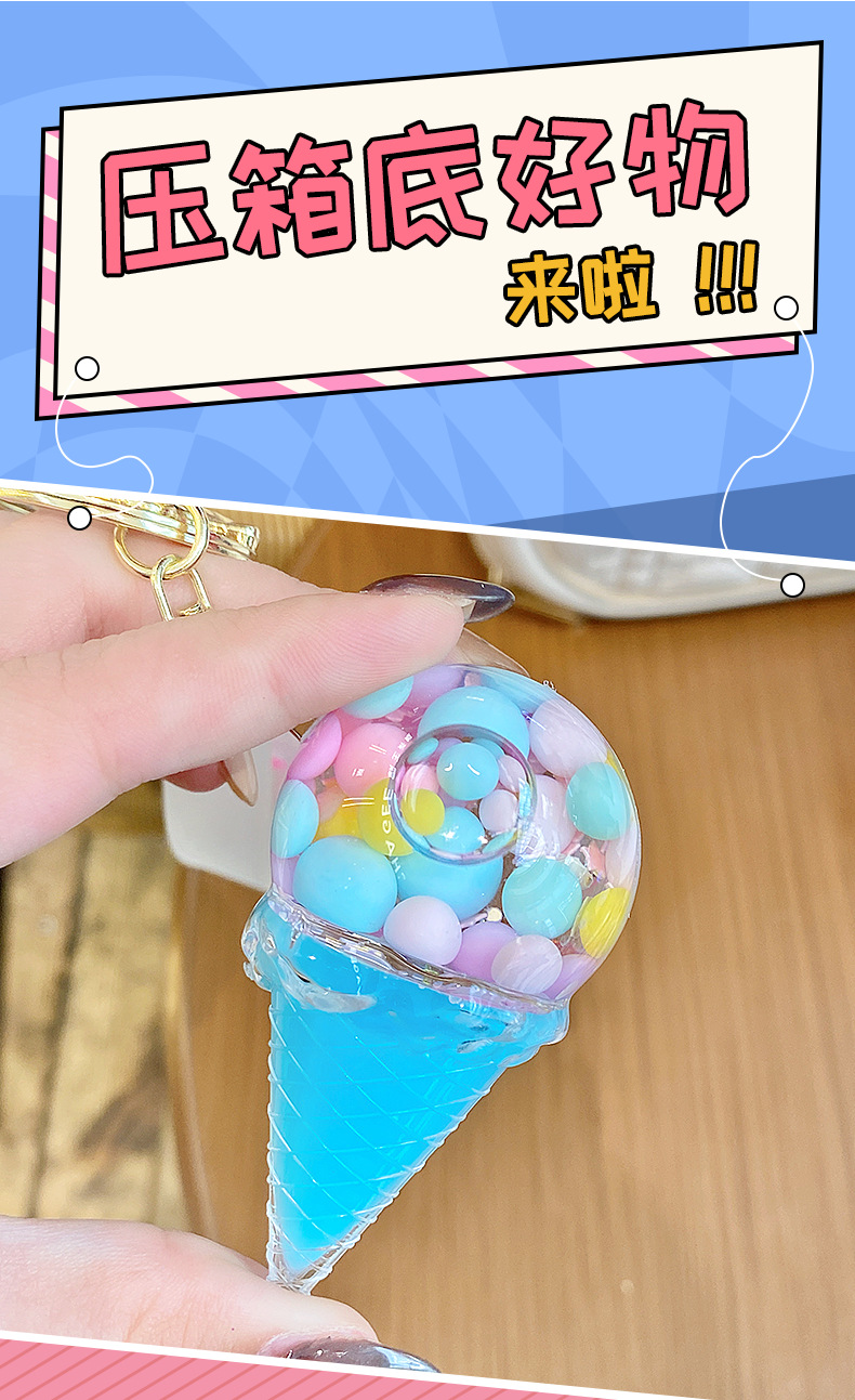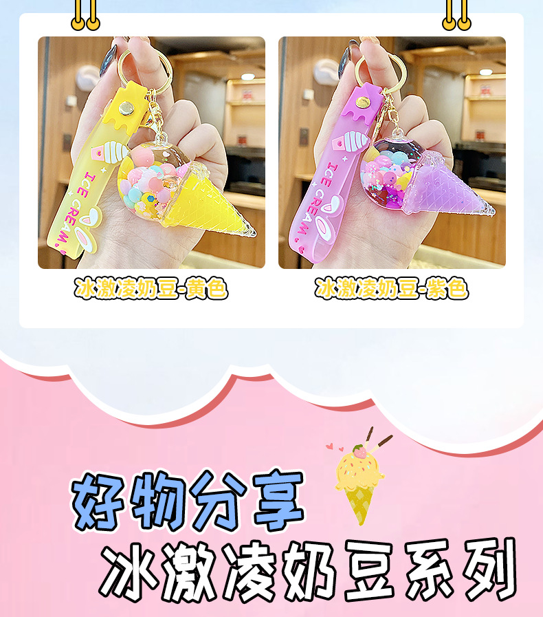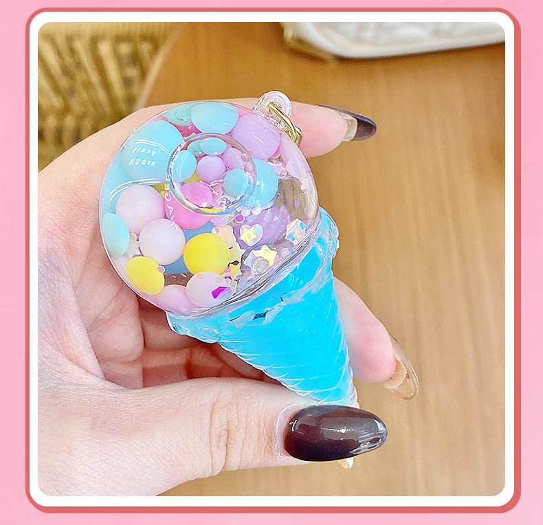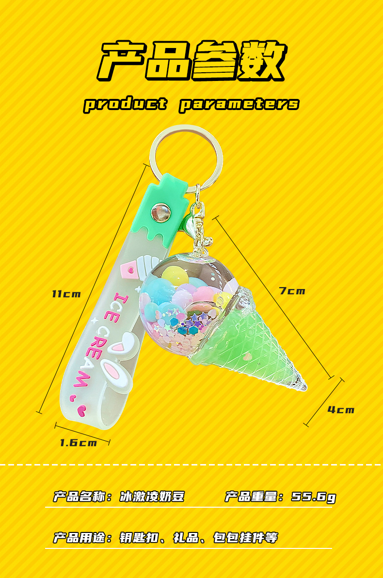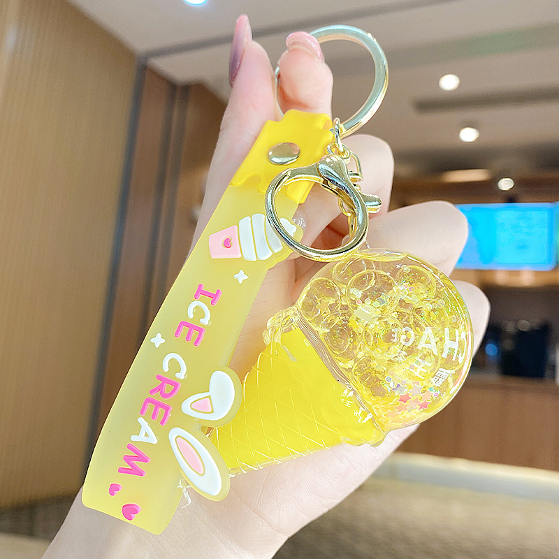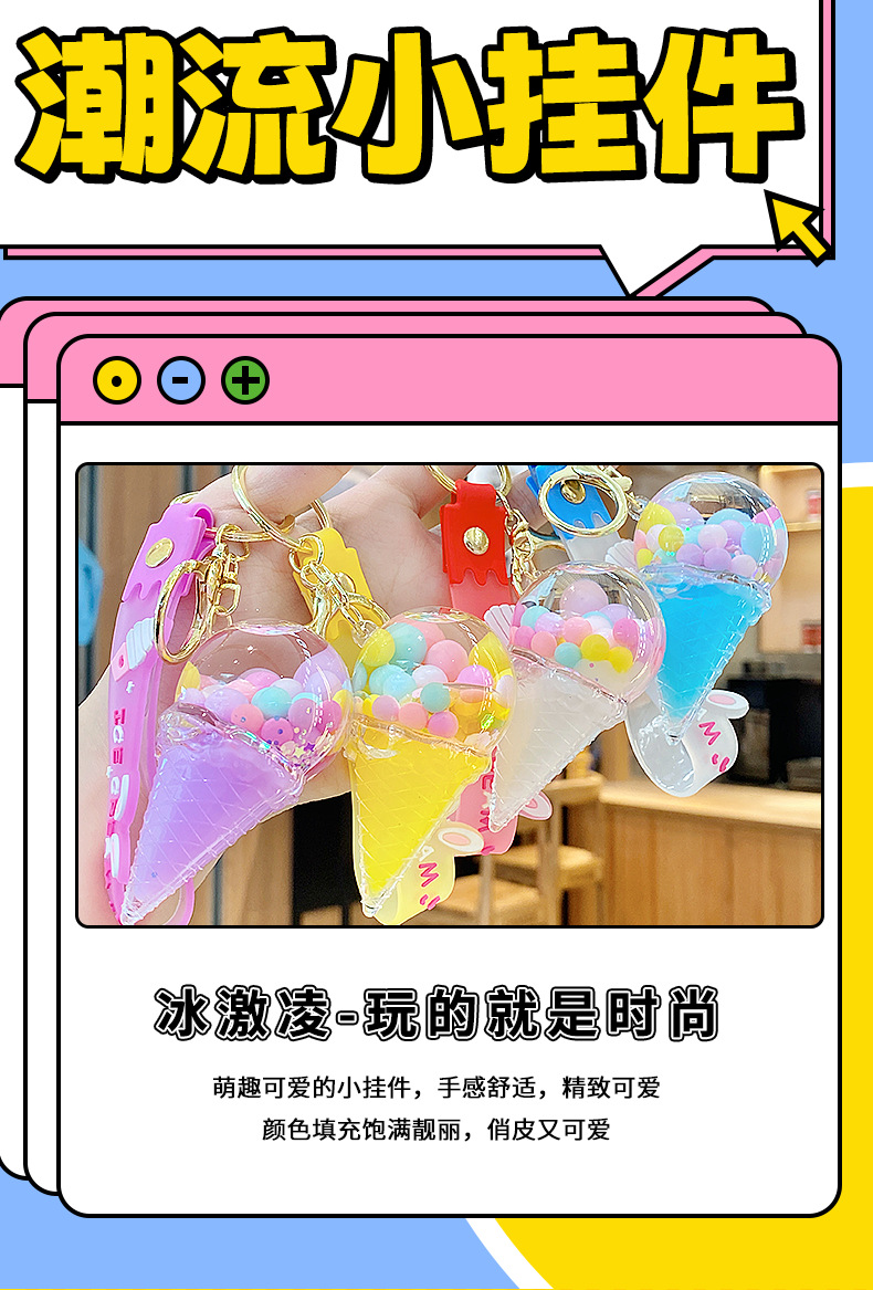 크로스보더 컬러풀 모래시계 아이스크림 플로팅 병 키체인 소녀스러운 하트 모래시계 펜던트 가방 장식품 여성용스토어 가기