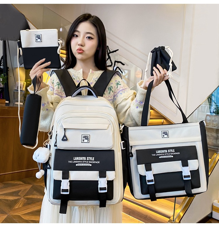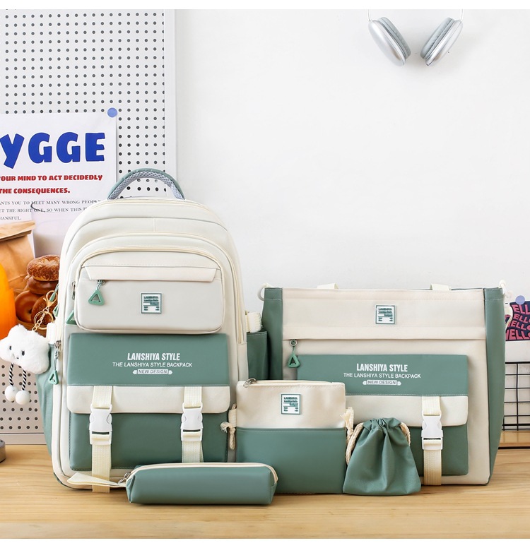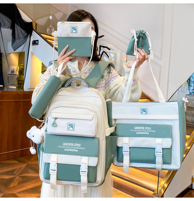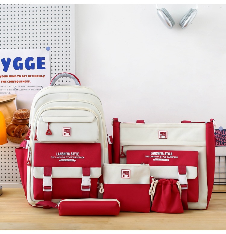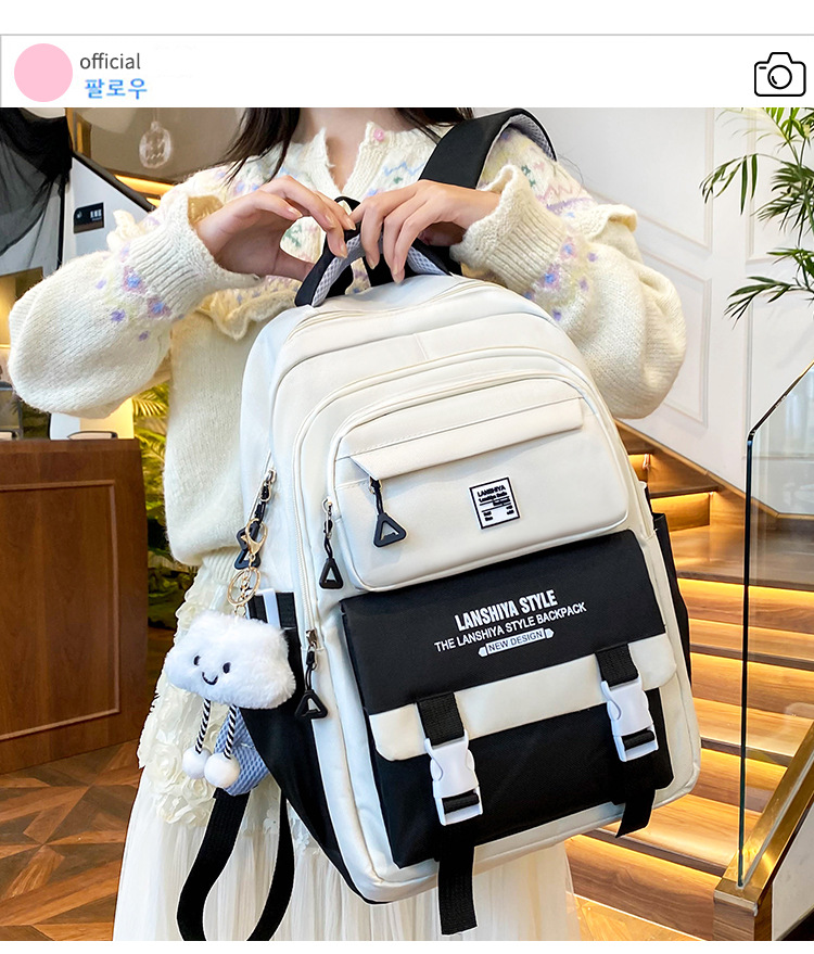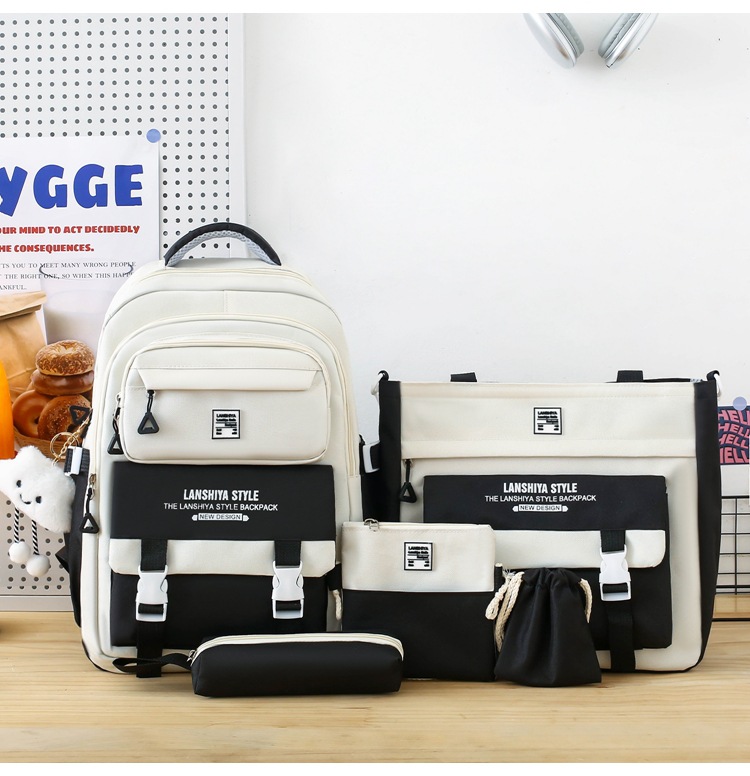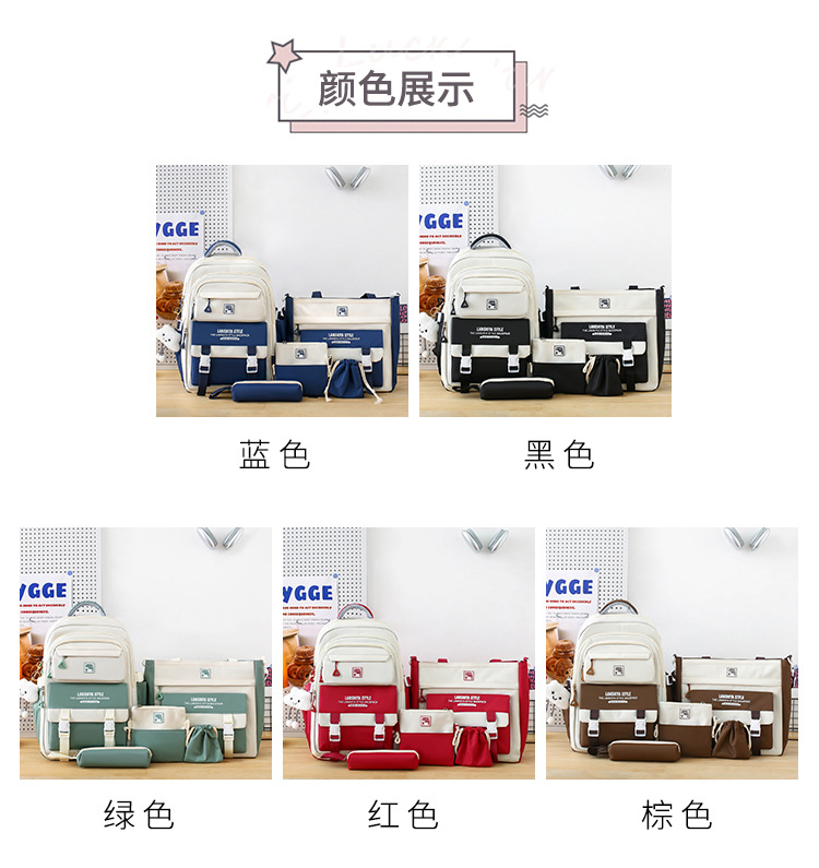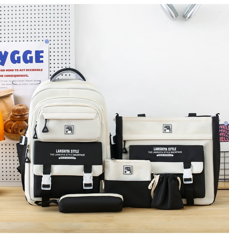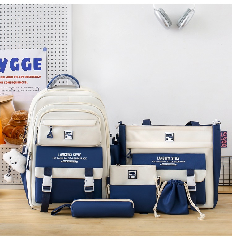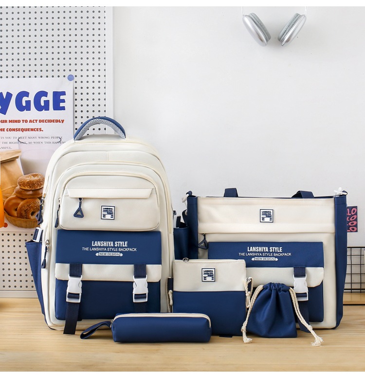 학생 책가방 5종 세트, 대비색상 통근 고등학생 배낭, 한국판 남성용 내구성이 뛰어난 대용량 캠퍼스 배낭스토어 가기