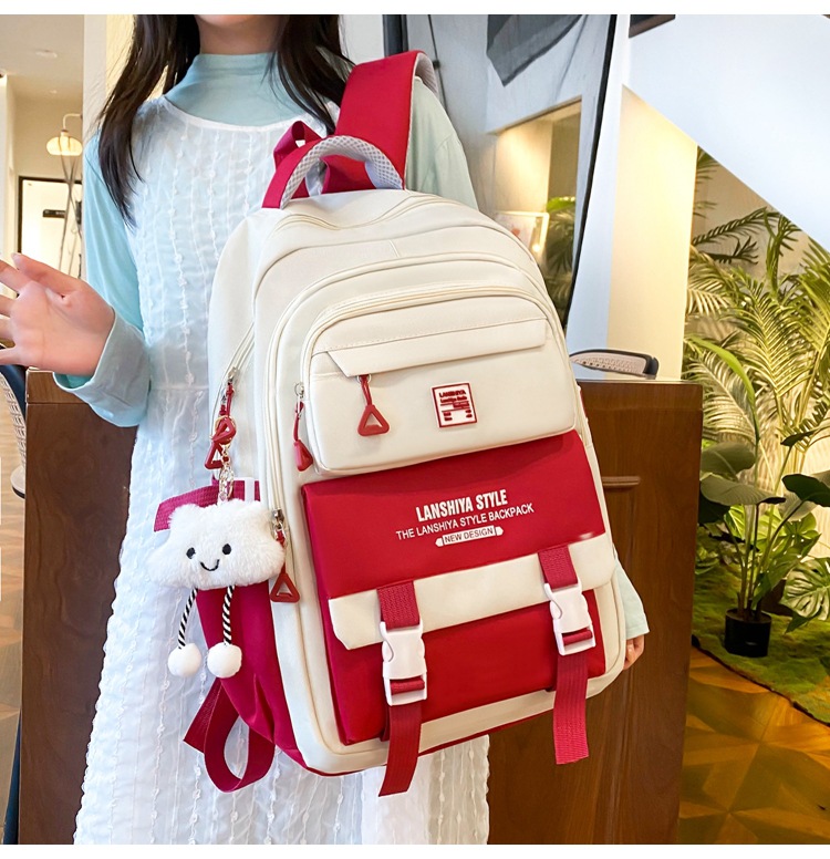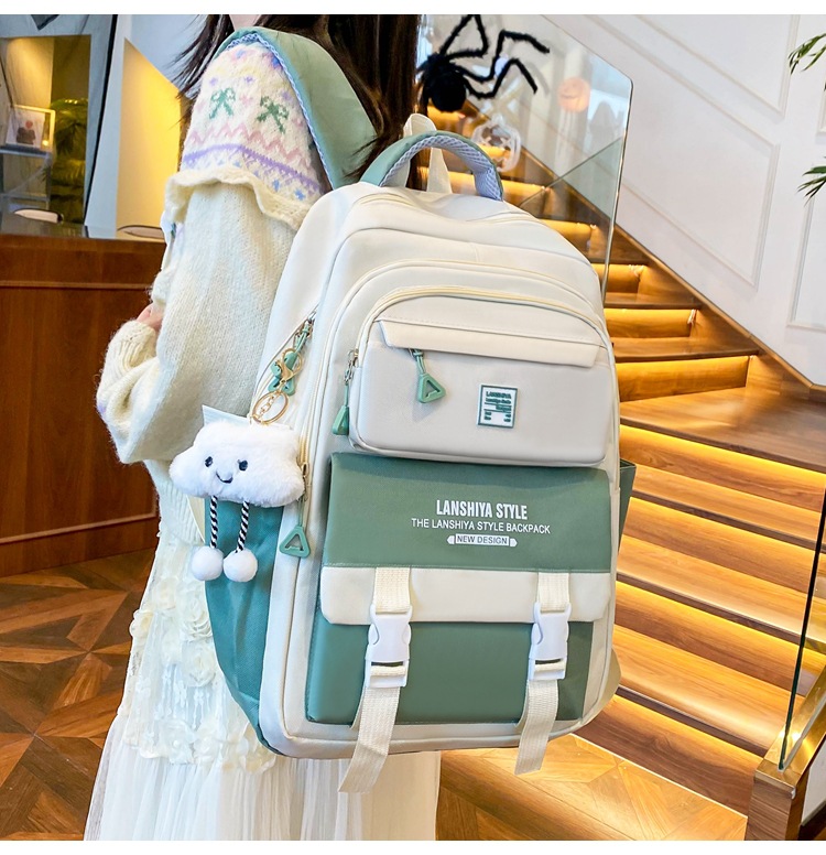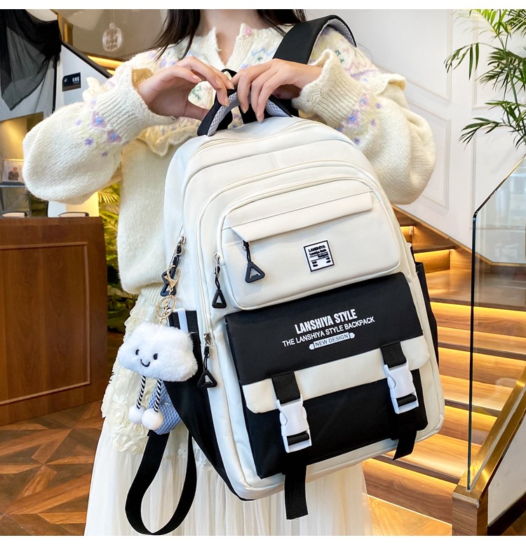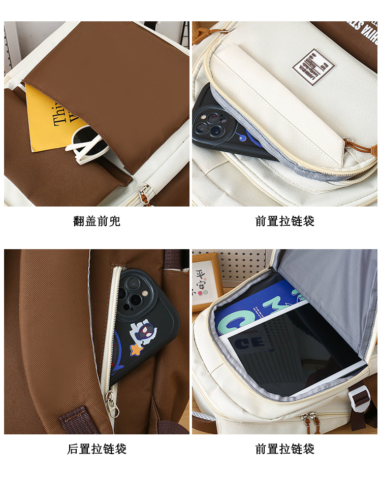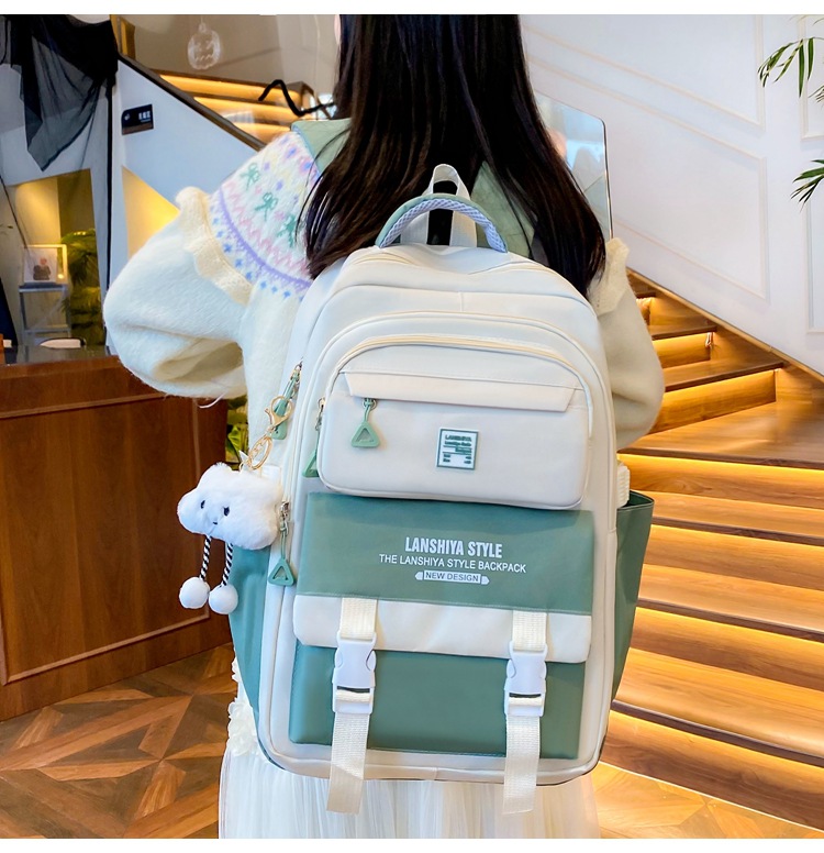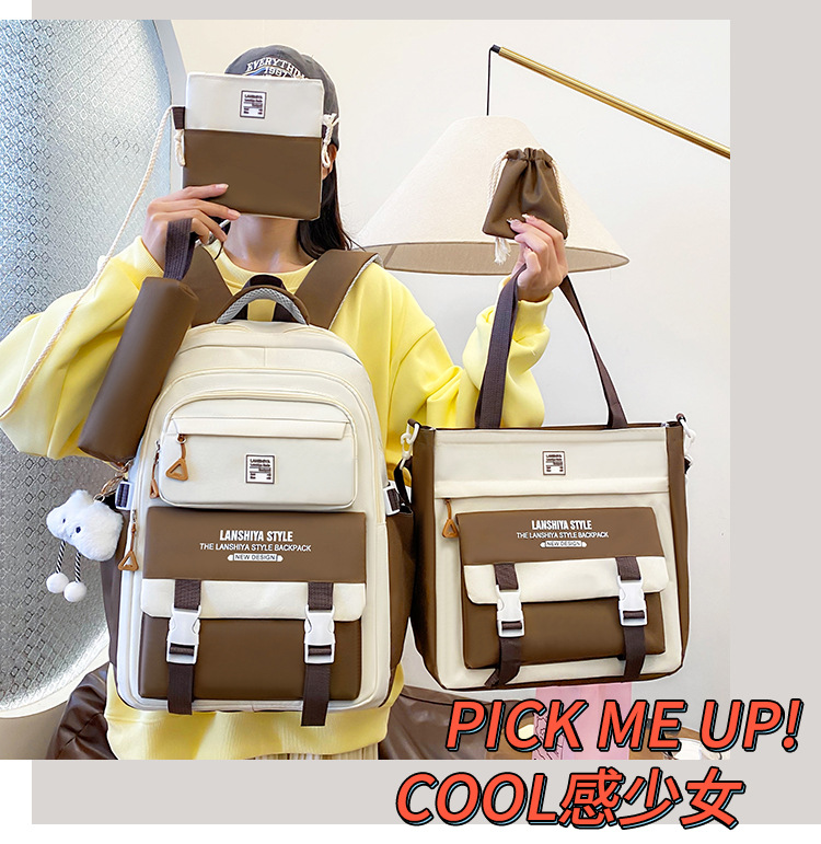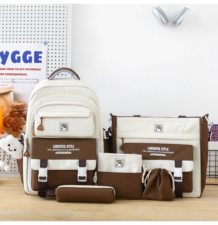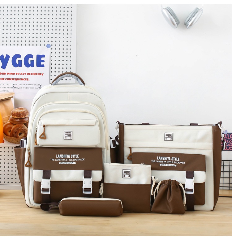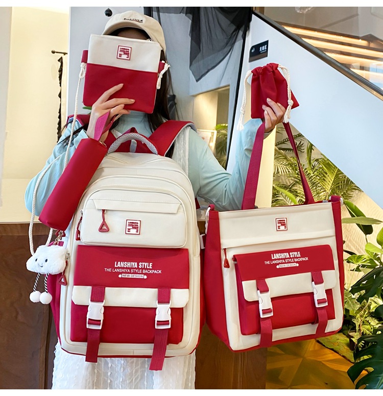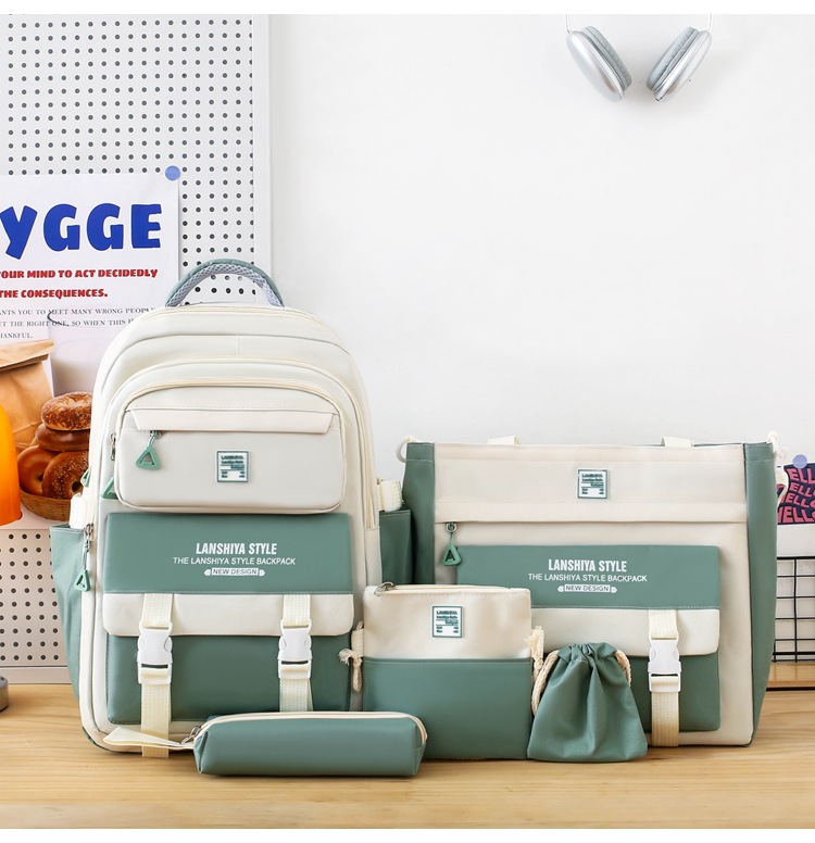 학생 책가방 5종 세트, 대비색상 통근 고등학생 배낭, 한국판 남성용 내구성이 뛰어난 대용량 캠퍼스 배낭스토어 가기