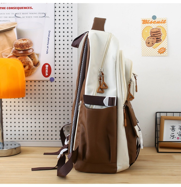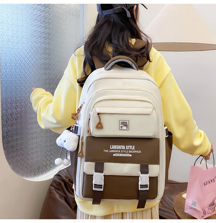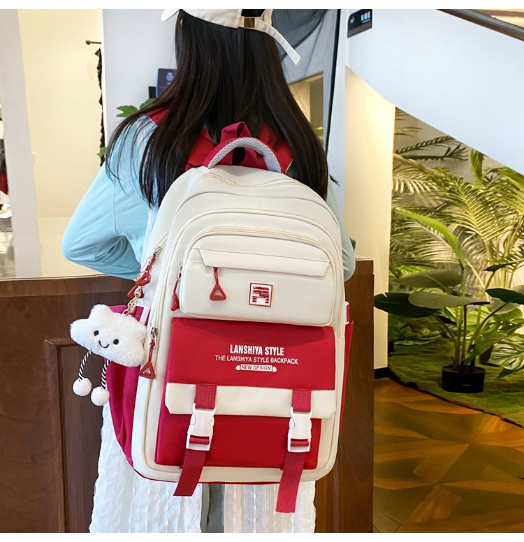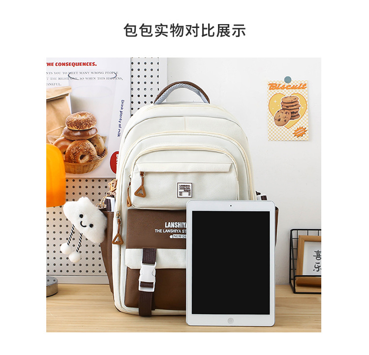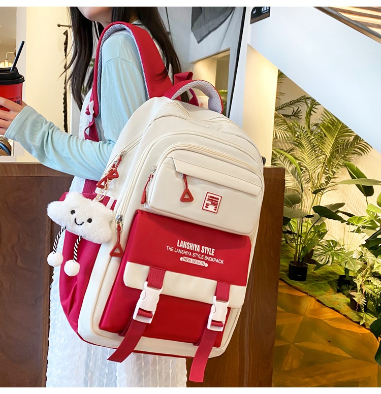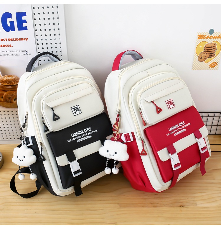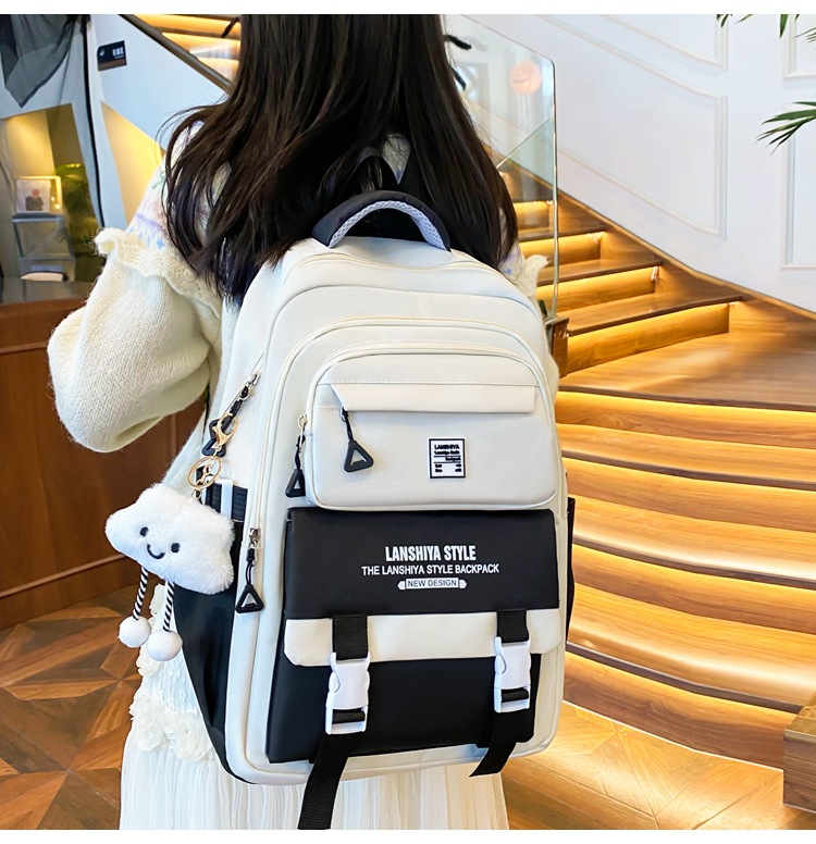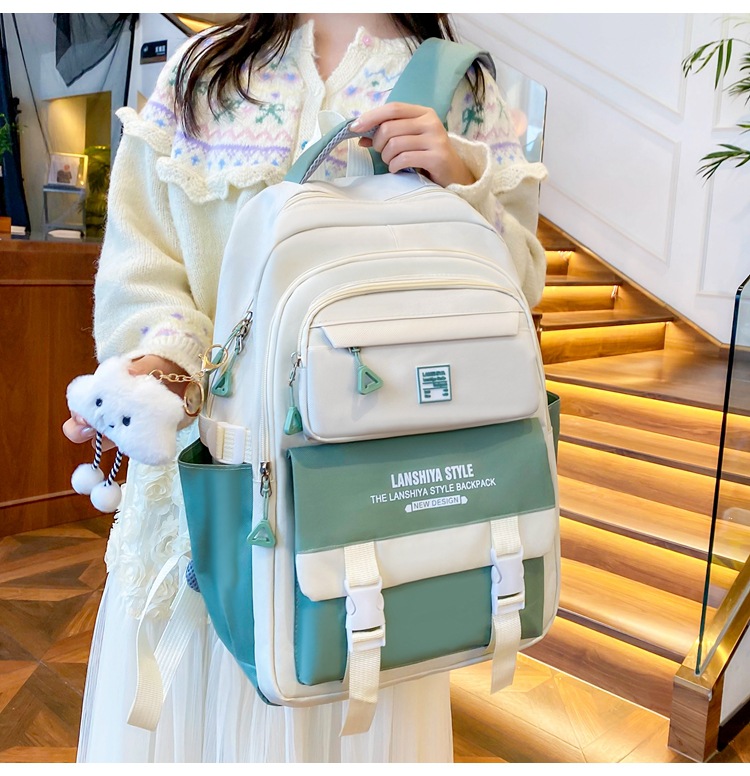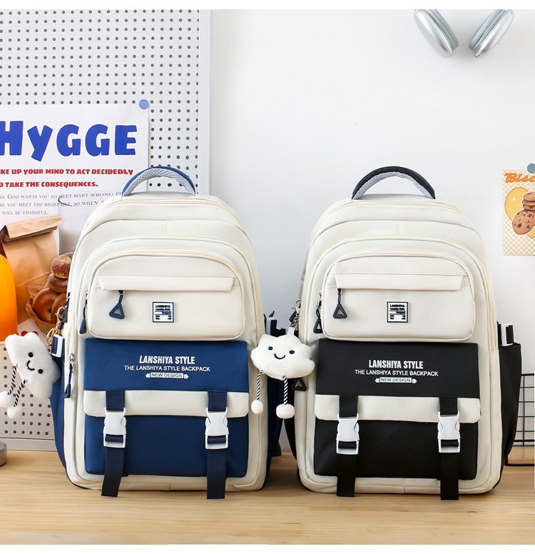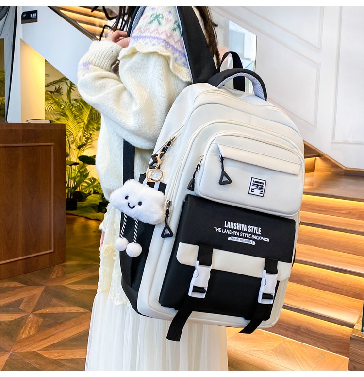 학생 책가방 5종 세트, 대비색상 통근 고등학생 배낭, 한국판 남성용 내구성이 뛰어난 대용량 캠퍼스 배낭스토어 가기