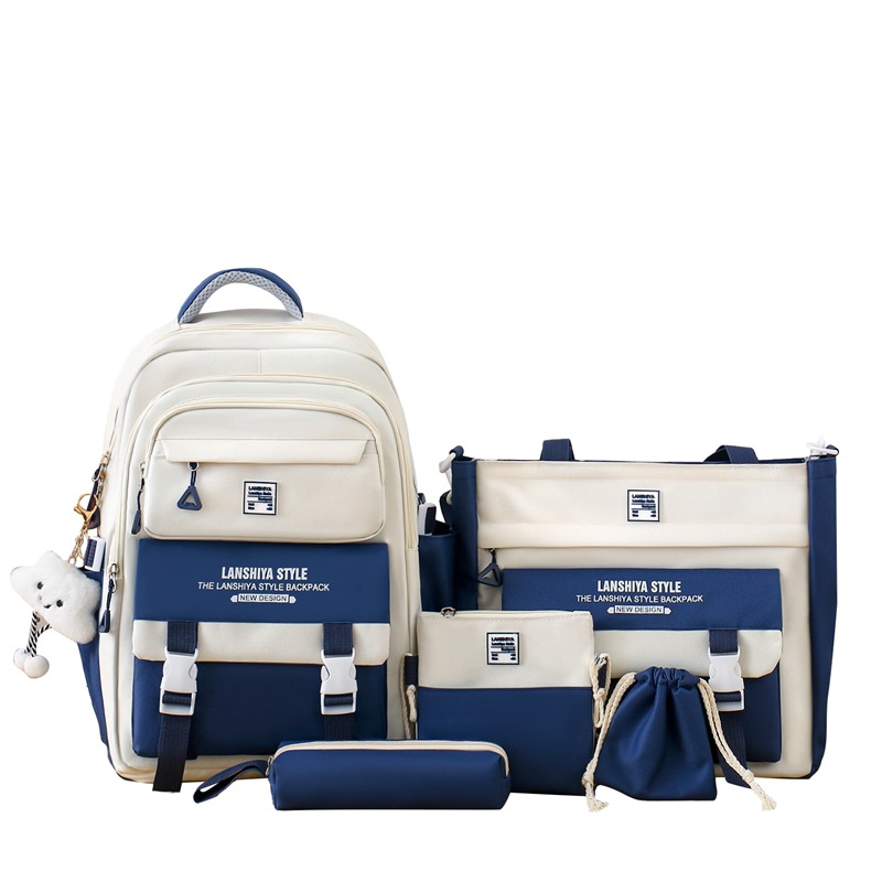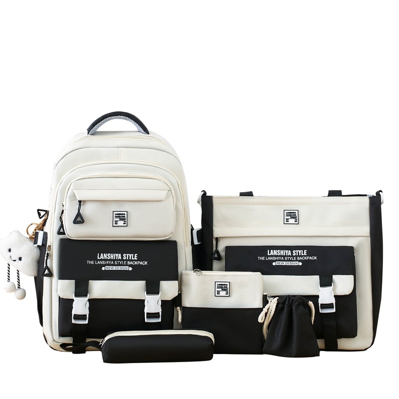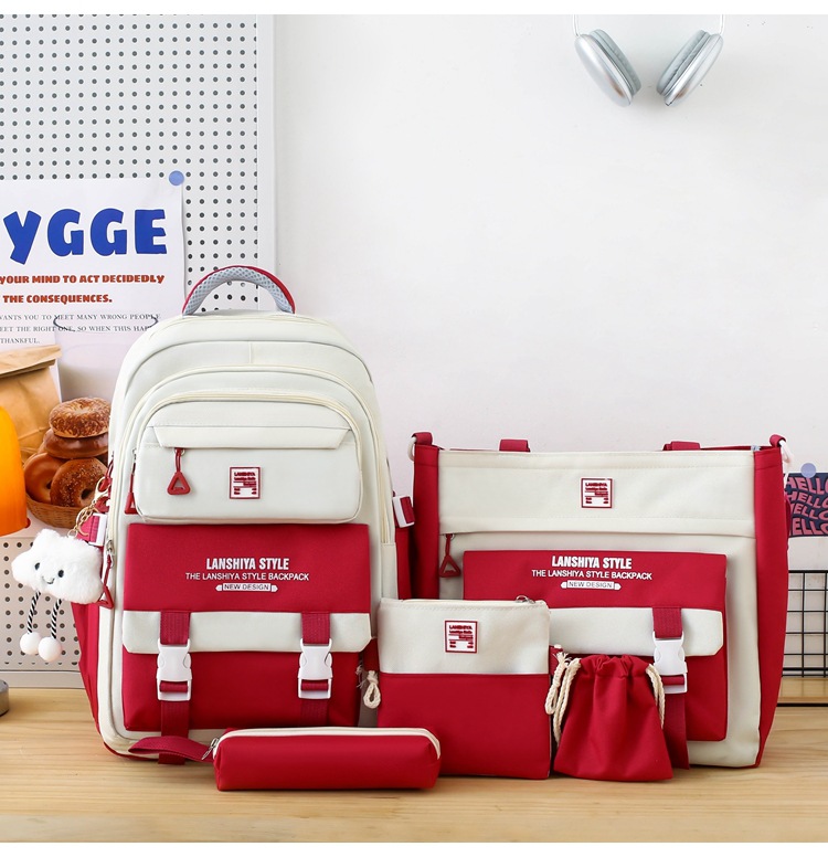 학생 책가방 5종 세트, 대비색상 통근 고등학생 배낭, 한국판 남성용 내구성이 뛰어난 대용량 캠퍼스 배낭