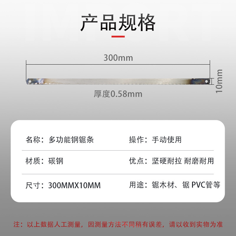 높은 탄소 강철 톱날 수동 쇠톱 블레이드 쇠톱 블레이드 나무 톱날 300mm 쇠톱 프레임 톱날