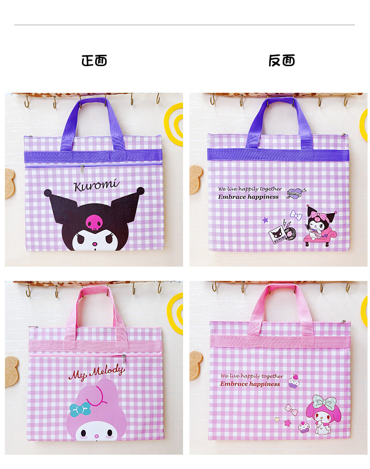 학생 튜토리얼 가방 Kulomi Sanrio 핸드백 PUA4 파일 가방 만화 더블 지퍼 저장 가방 대외 무역