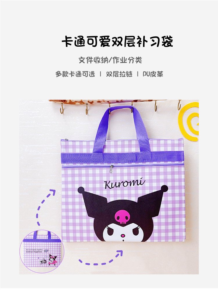 학생 튜토리얼 가방 Kulomi Sanrio 핸드백 PUA4 파일 가방 만화 더블 지퍼 저장 가방 대외 무역스토어 가기