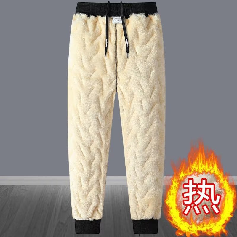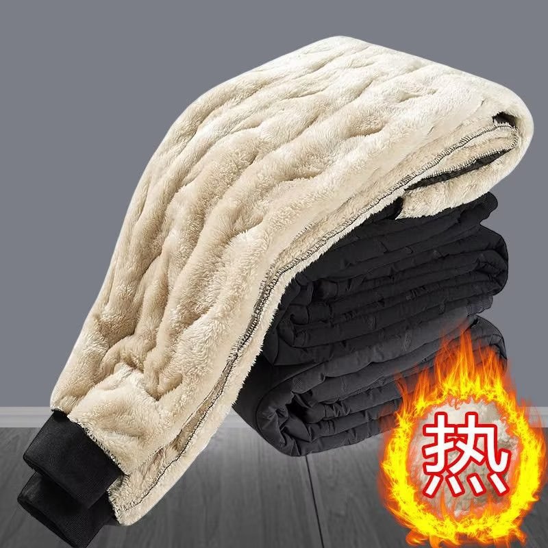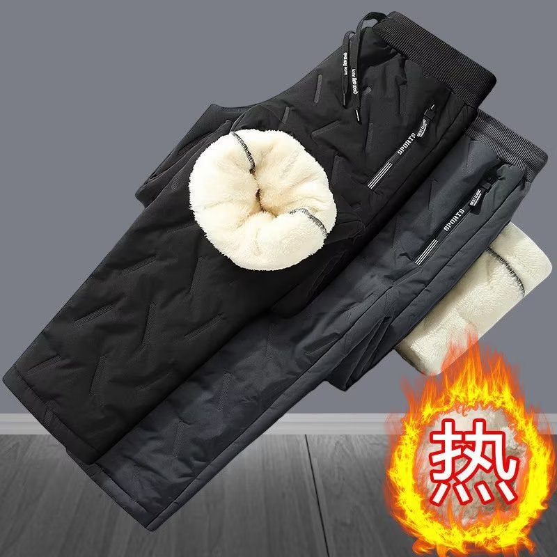 따뜻한 기모 두꺼운 스포츠 바지 남자의 느슨한 방풍 방수 캐주얼 바지 면 바지 외부 양고기 양털 운동복