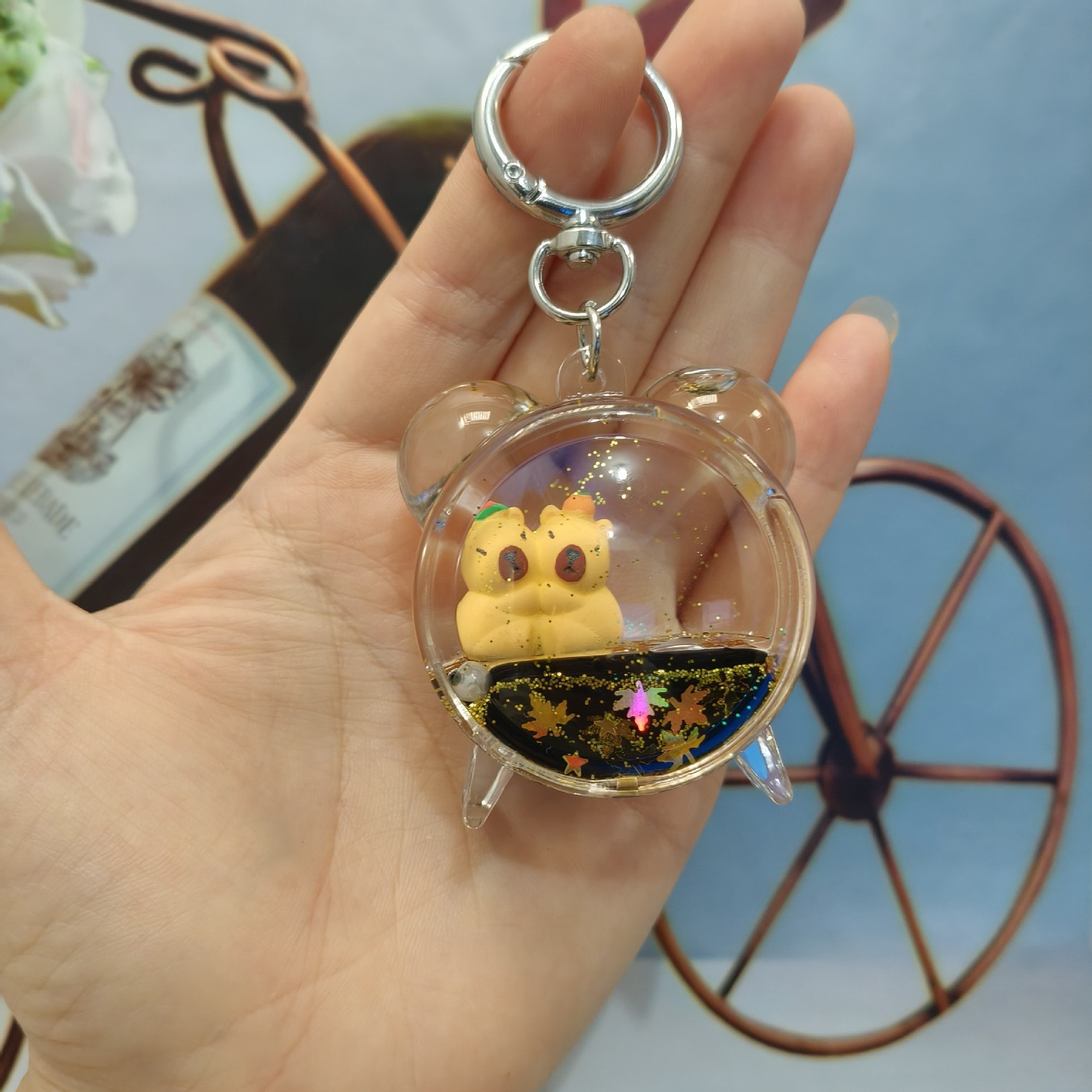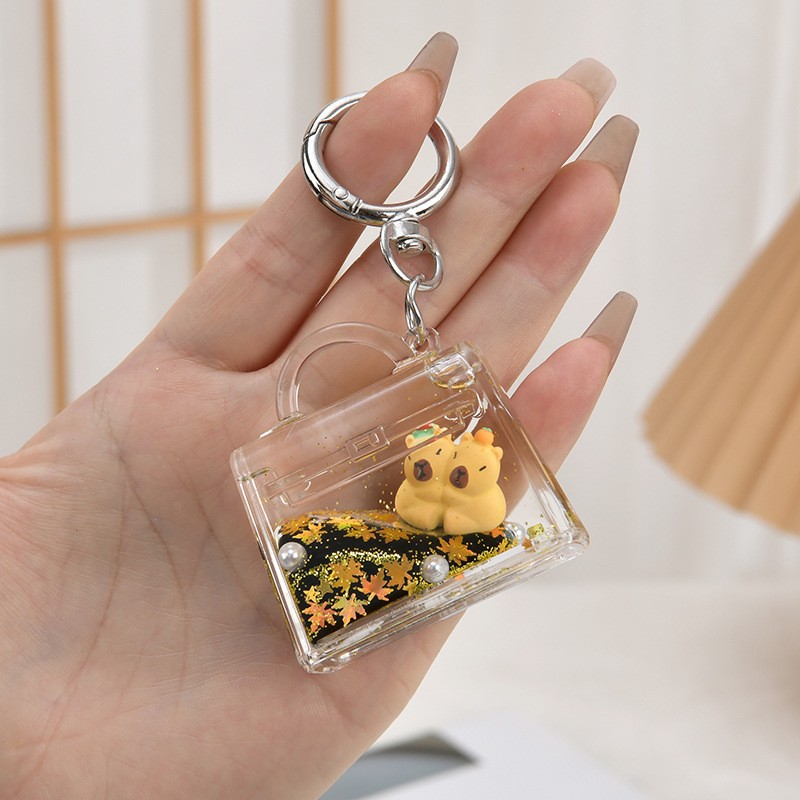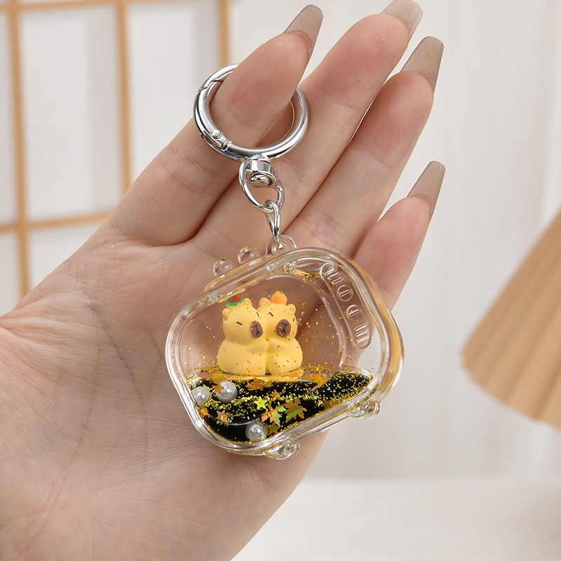 만화 퀵 샌드 오일 카피 발라 키 체인 도매 배낭 펜던트 떠 다니는 액체 작은 선물 학교 가방 펜던트스토어 가기