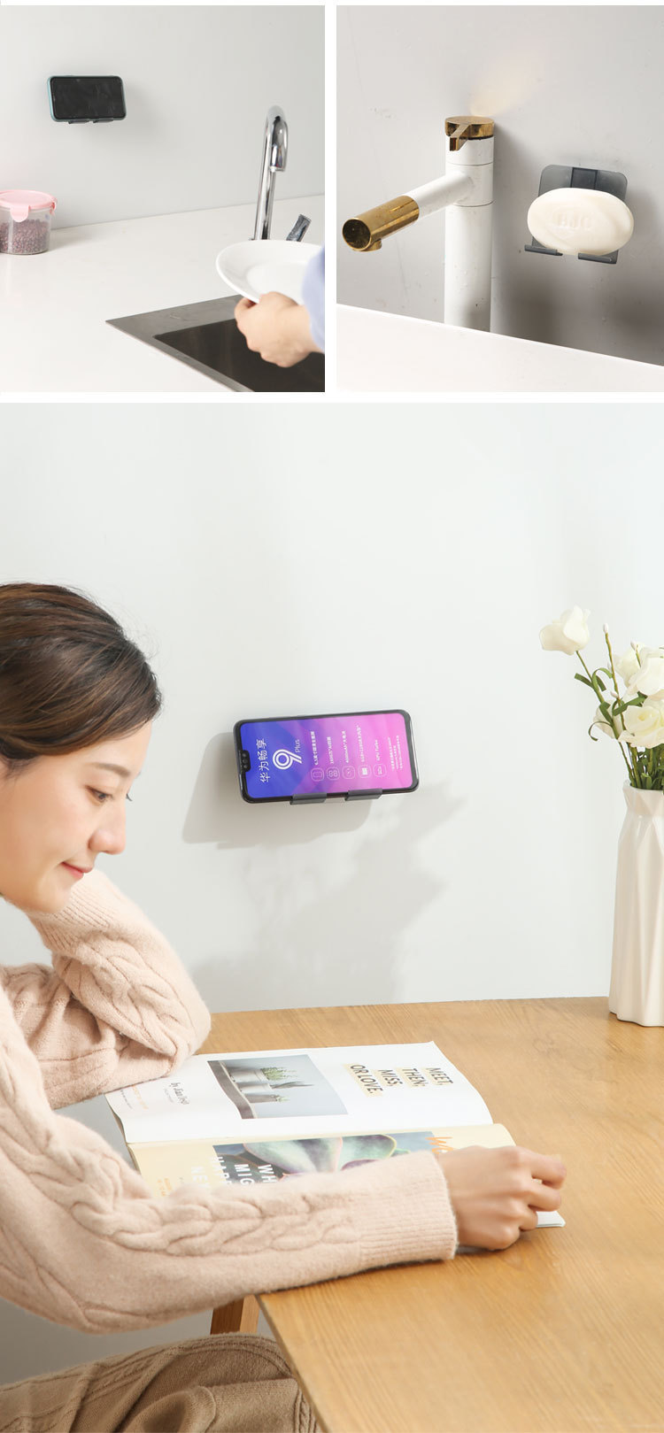 펀치없는 벽걸이 형 목욕 보관 랙 창조적 인 간단한 게으른 추적없는 휴대 전화 브래킷 벽걸이 휴대 전화 랙 화장실스토어 가기