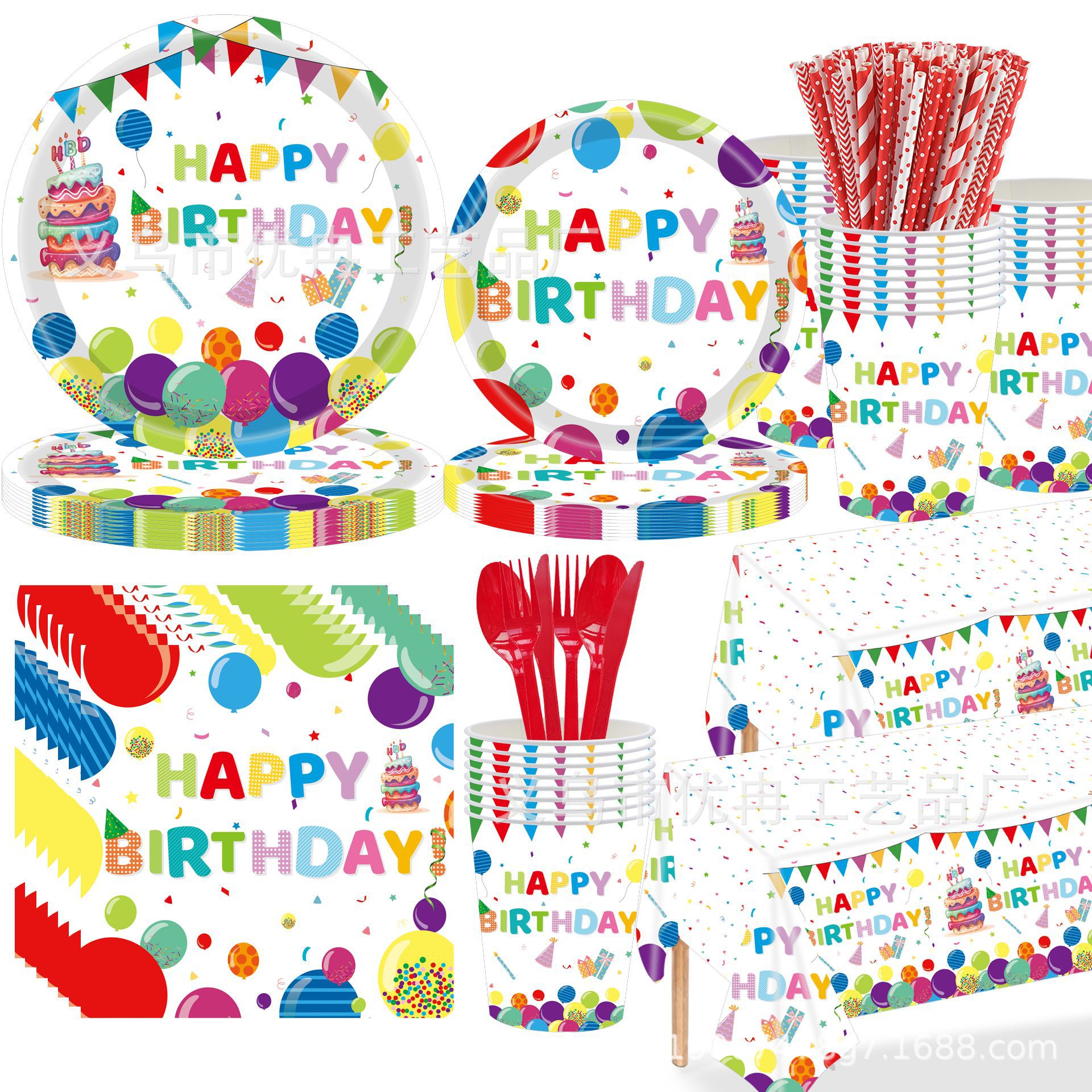 풍선 생일 만화 테마 일회용 테이블 천 종이 트레이 생일 파티 세트 배열 용품