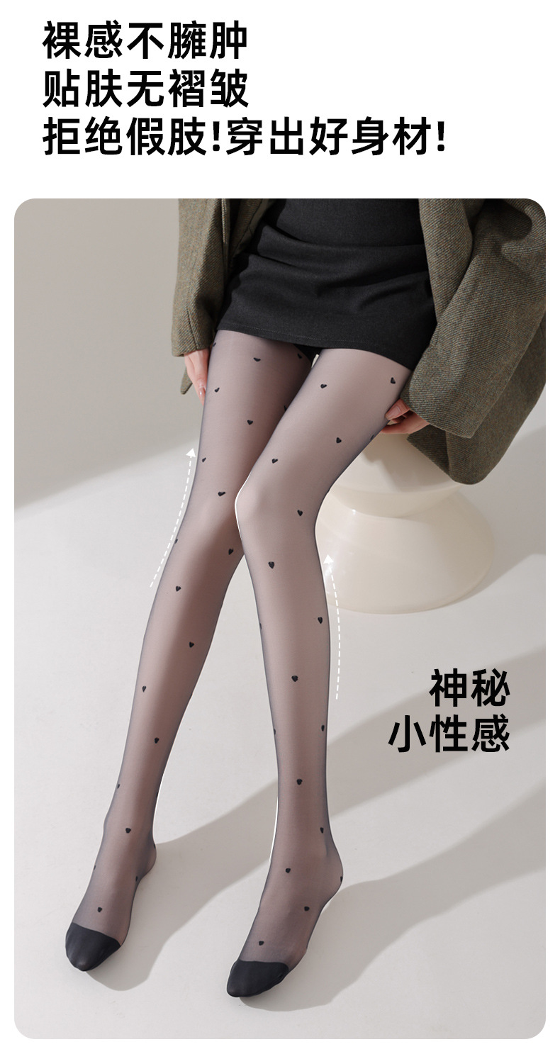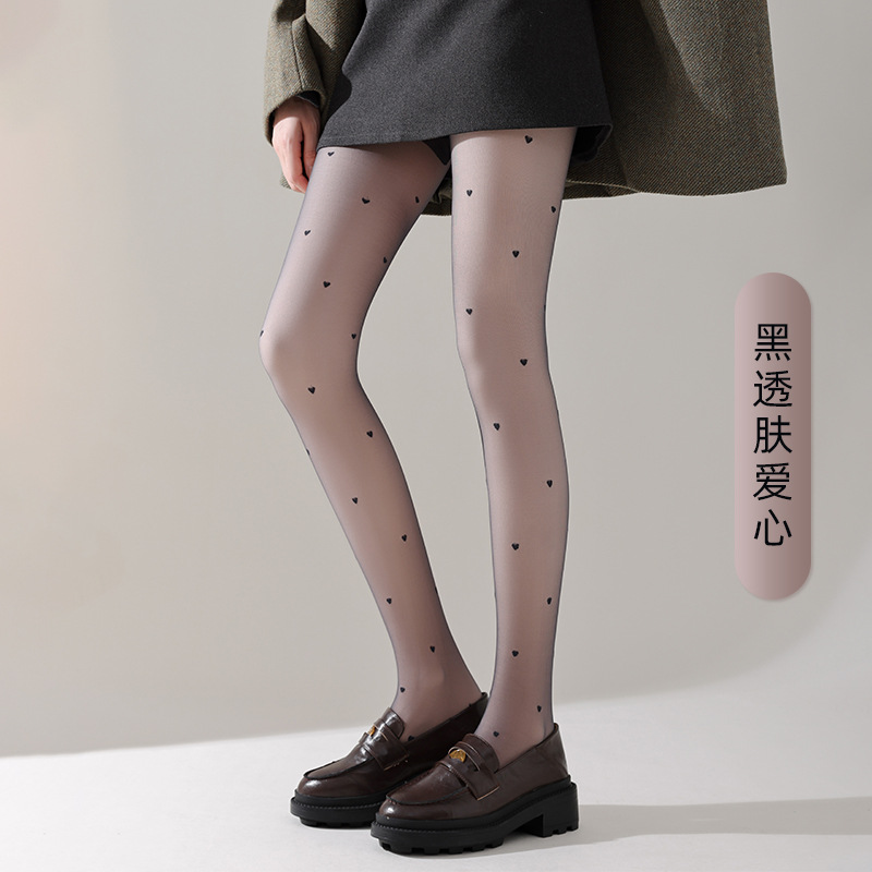 봄가을 얇은 물방울무늬 하트 이중 투명 팬티스타킹 탈부착 가능한 여성용 레깅스, 광채나는 누드감 블랙스타킹스토어 가기