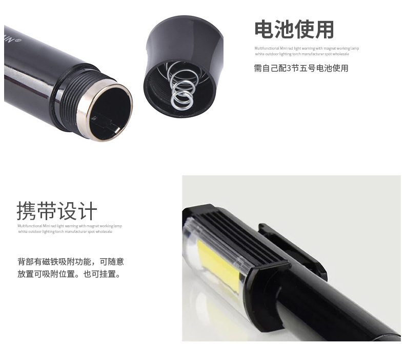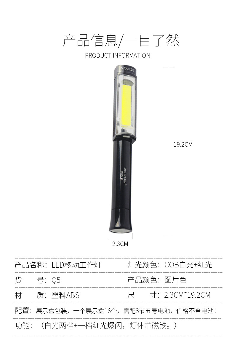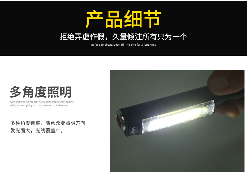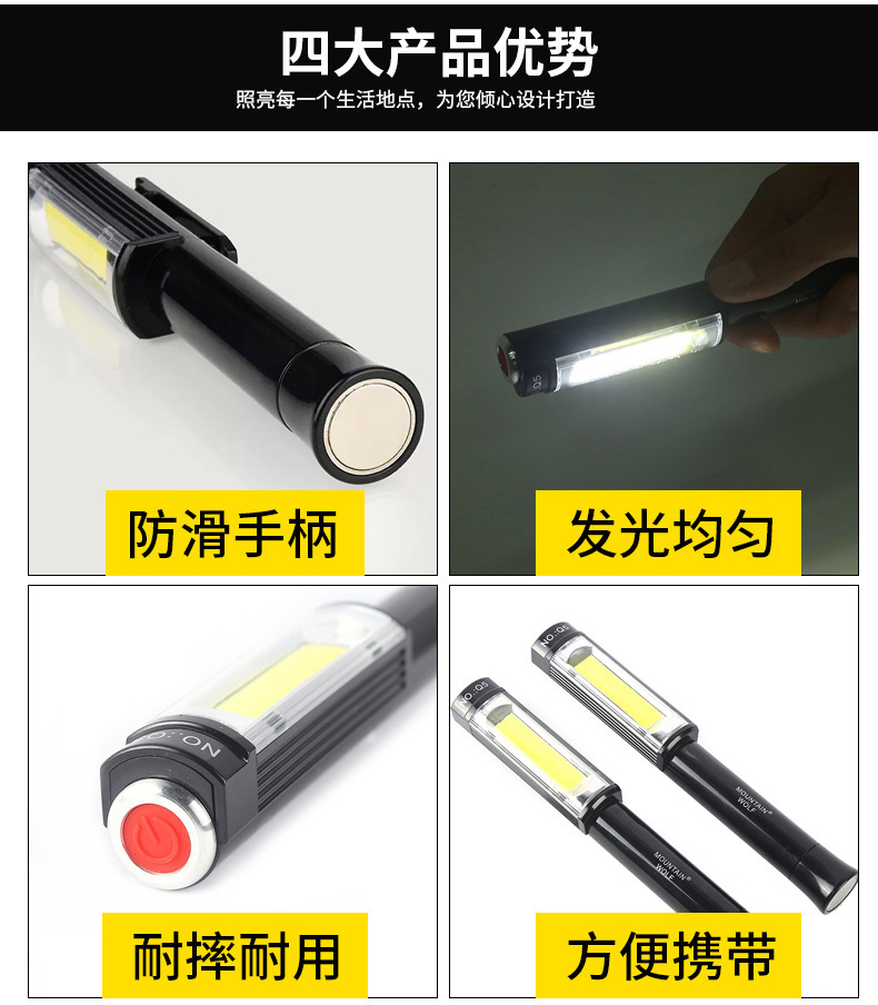빨간색 LED 검사 라이트 자석 휴대용 미니 Q5 작업 조명으로 국경 간 COB 손전등 야외 비상 사태