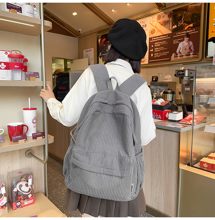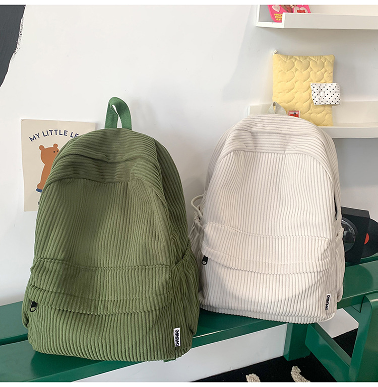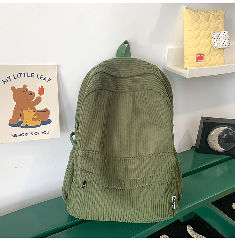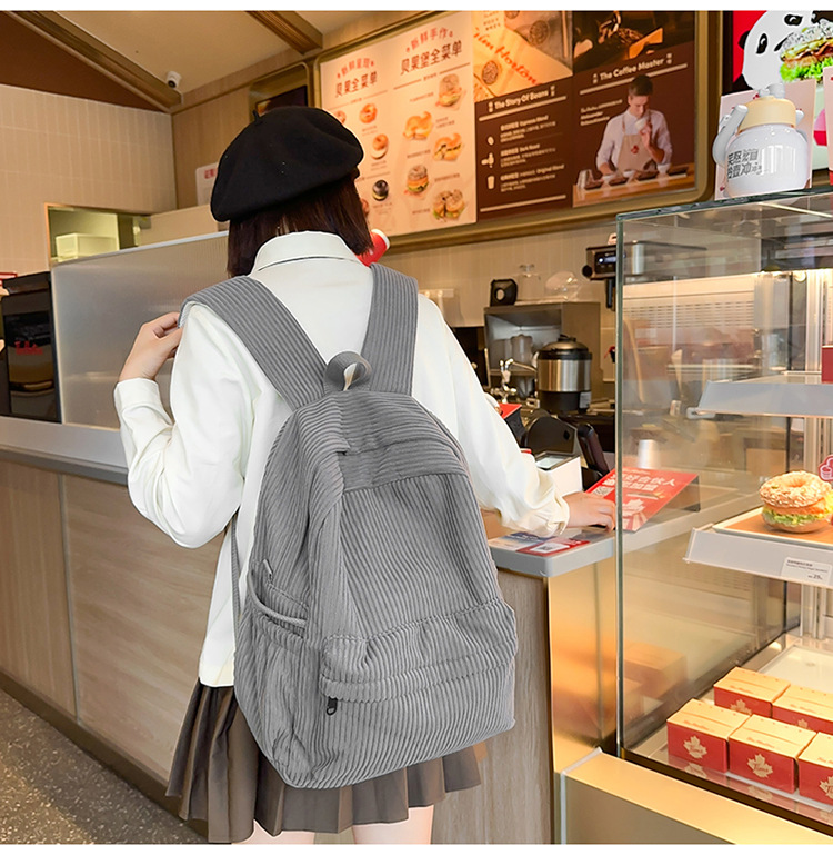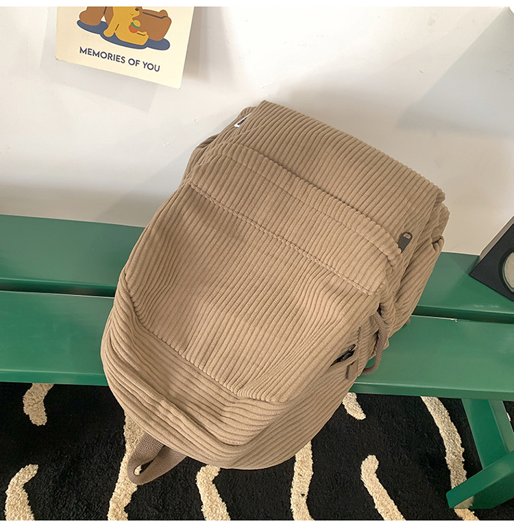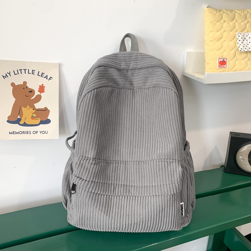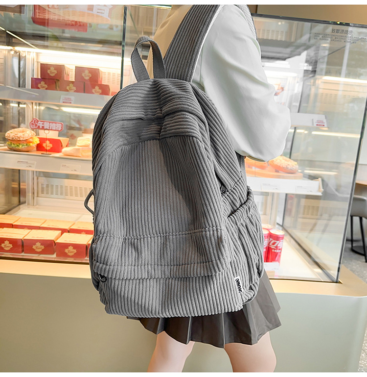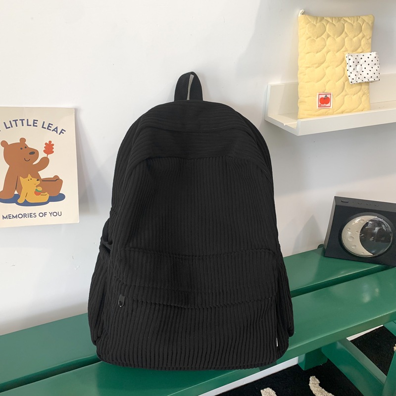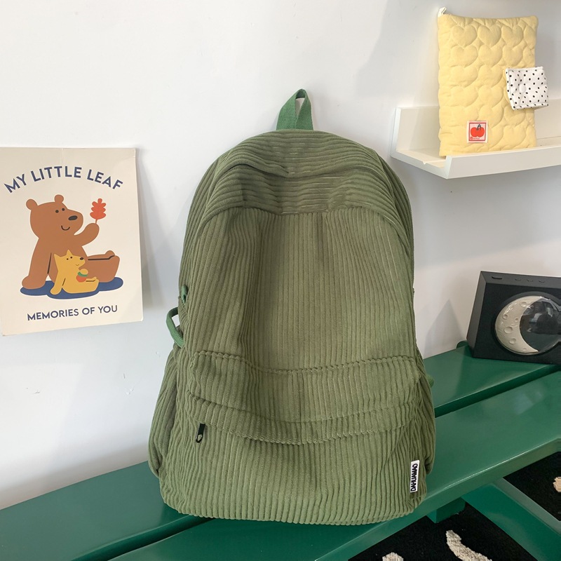 일본 대용량 Schoolbag 여대생 Mori Corduroy 단색 간단한 배낭 고등학교 여행 배낭스토어 가기