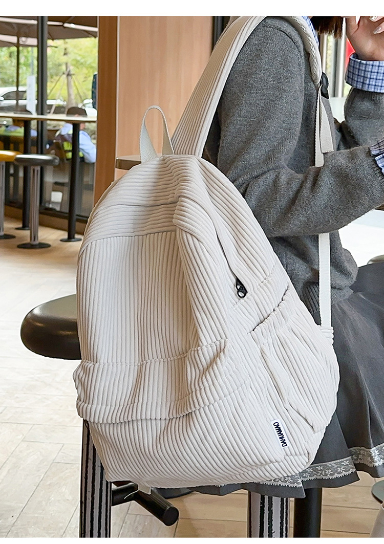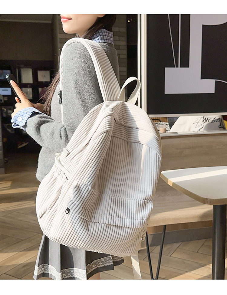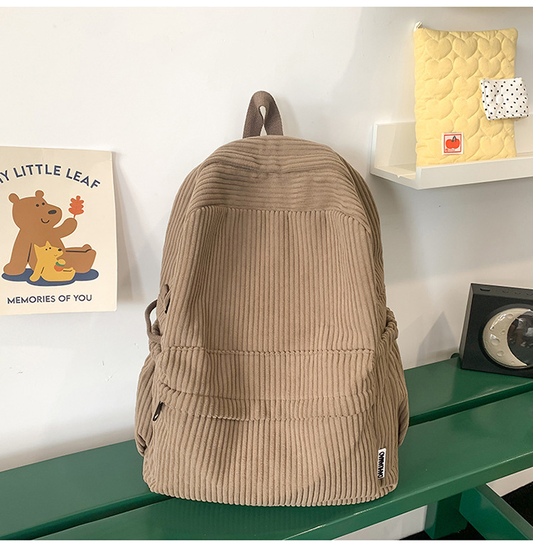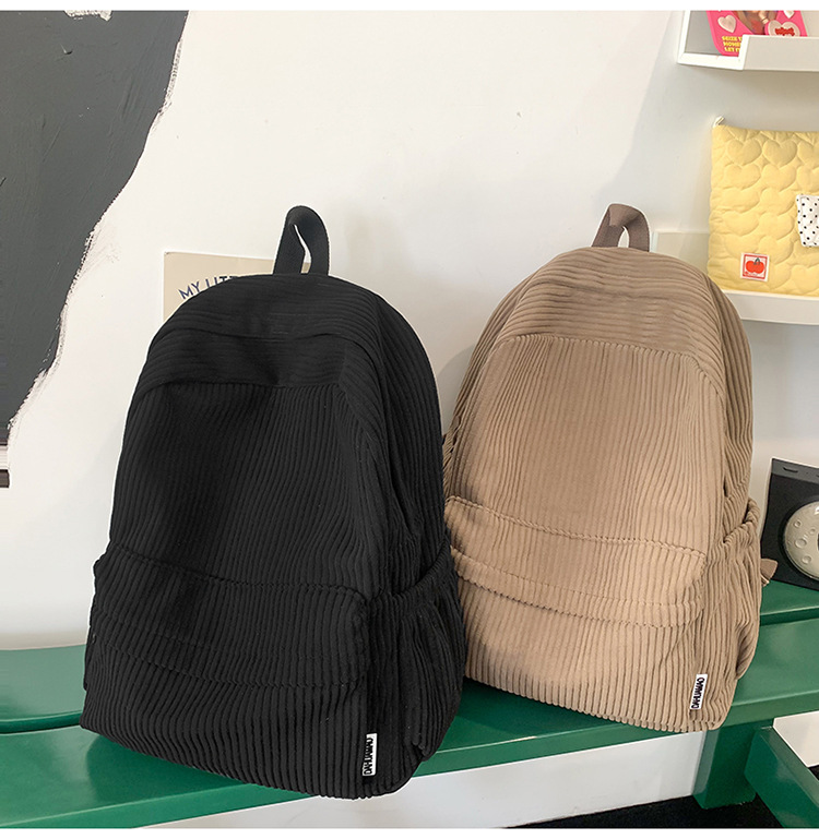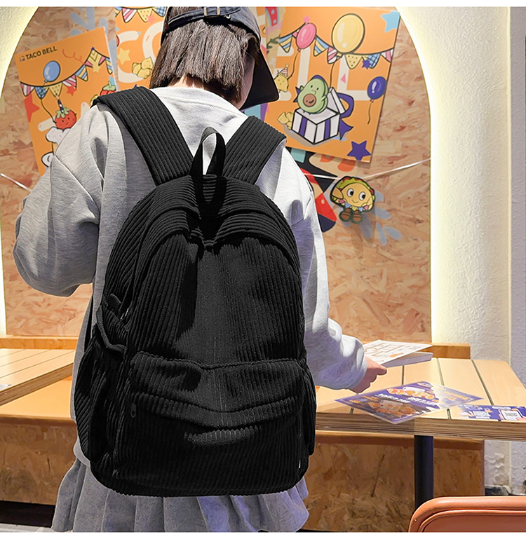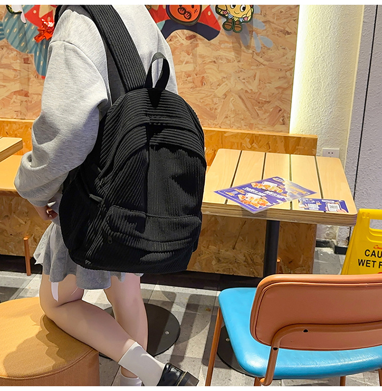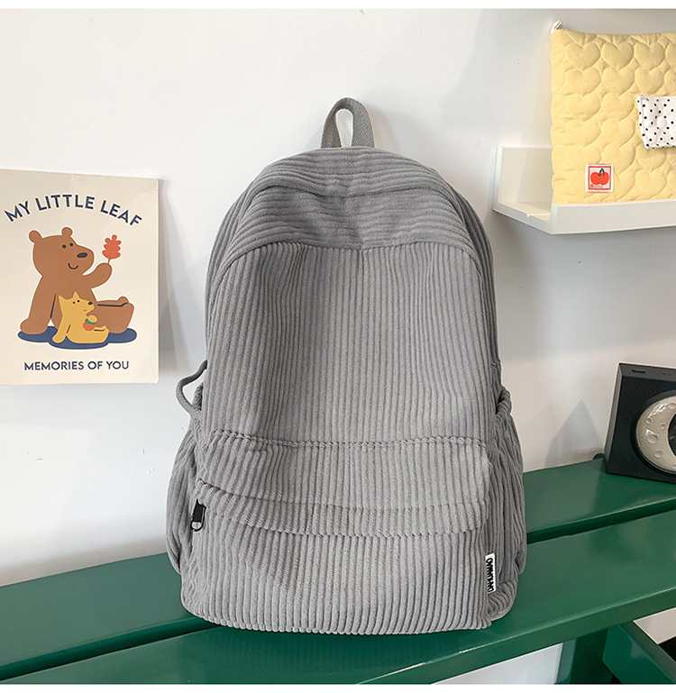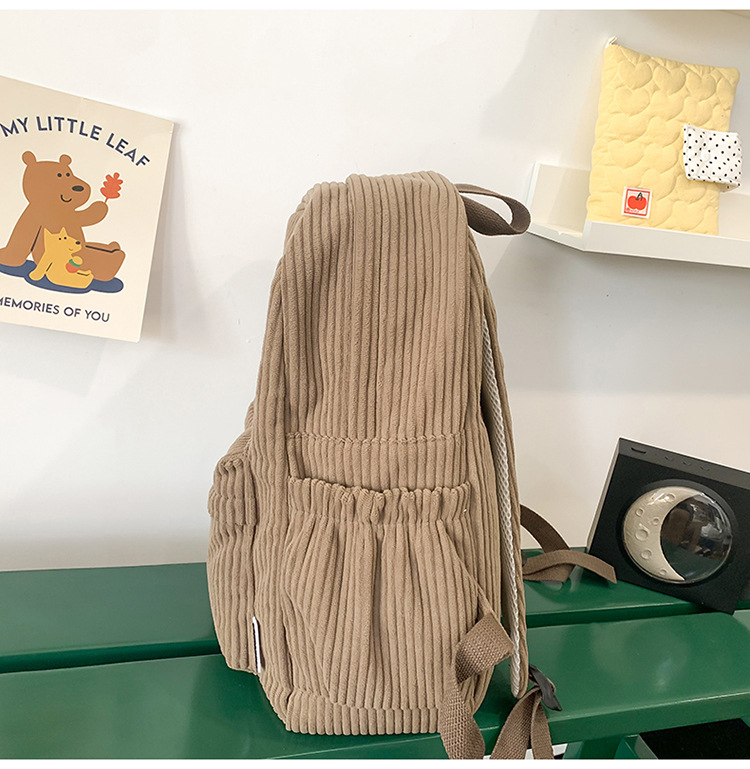 일본 대용량 Schoolbag 여대생 Mori Corduroy 단색 간단한 배낭 고등학교 여행 배낭스토어 가기