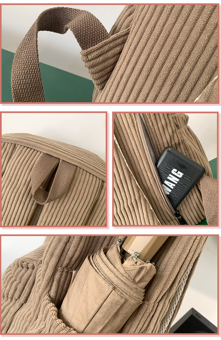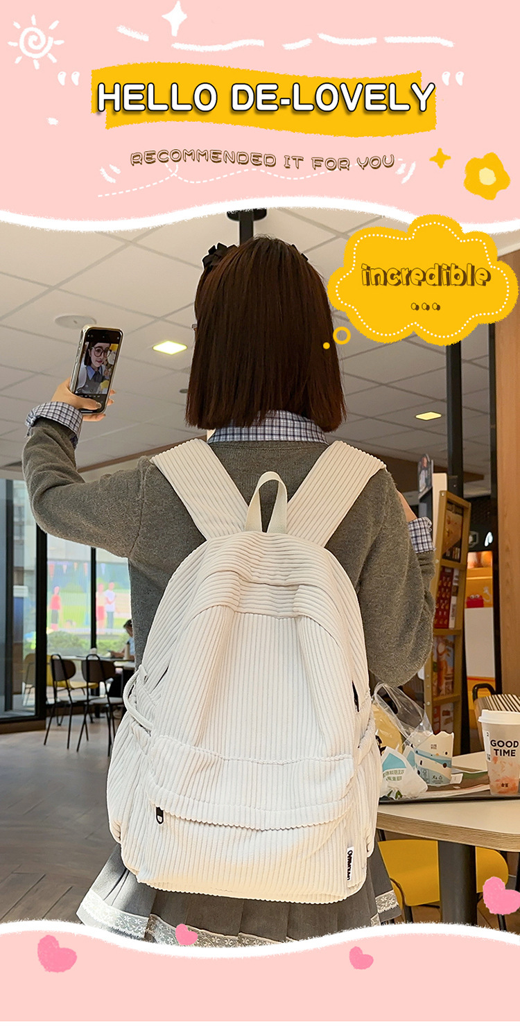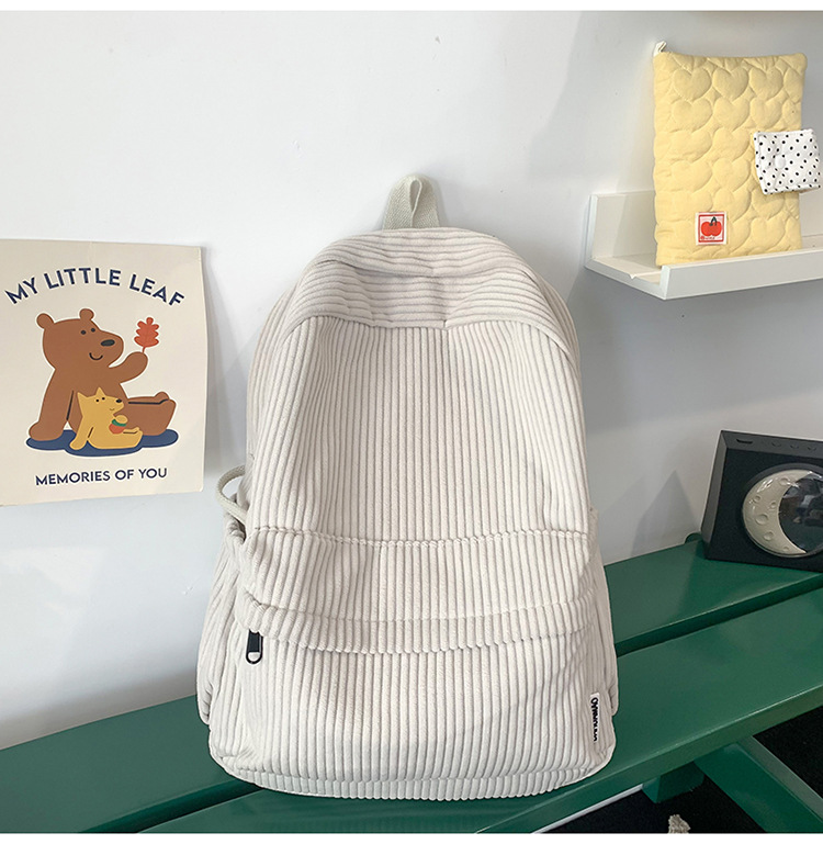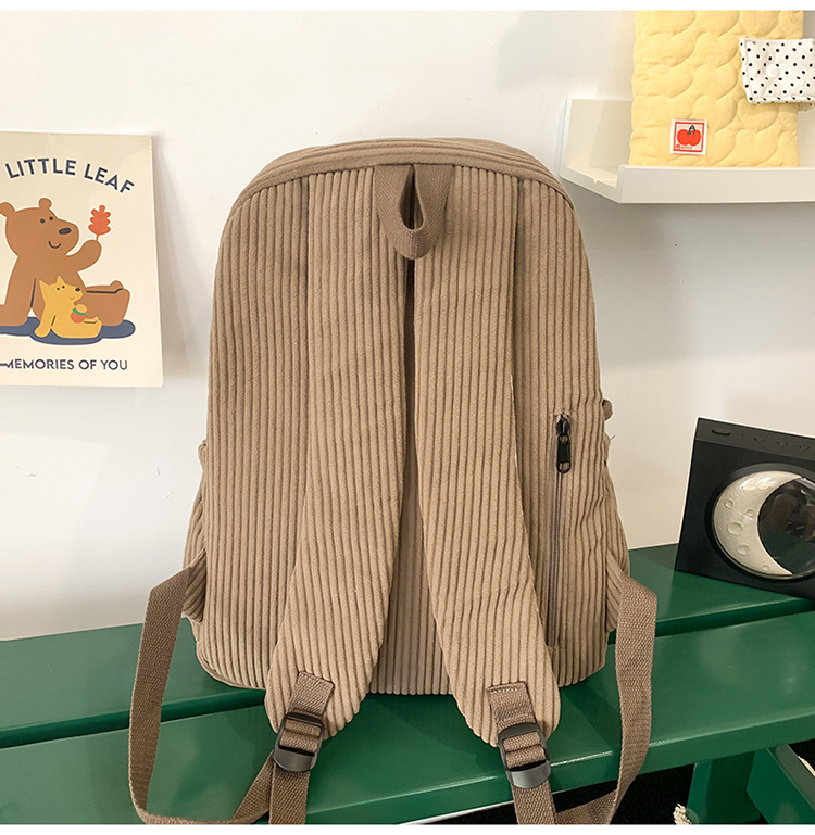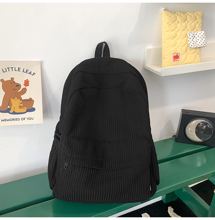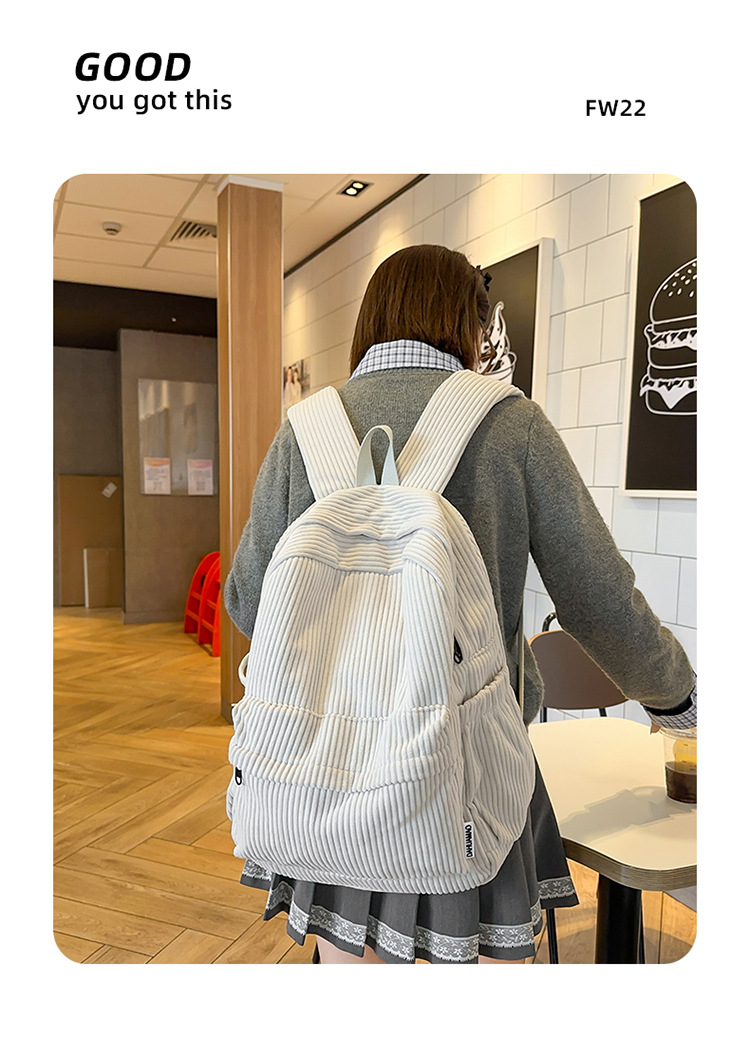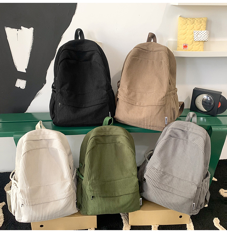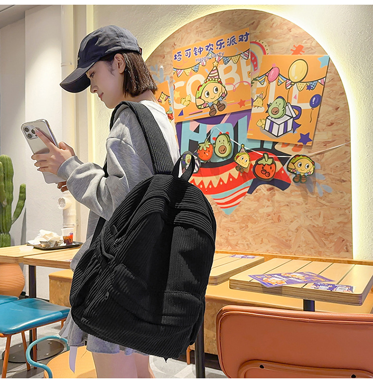 일본 대용량 Schoolbag 여대생 Mori Corduroy 단색 간단한 배낭 고등학교 여행 배낭스토어 가기