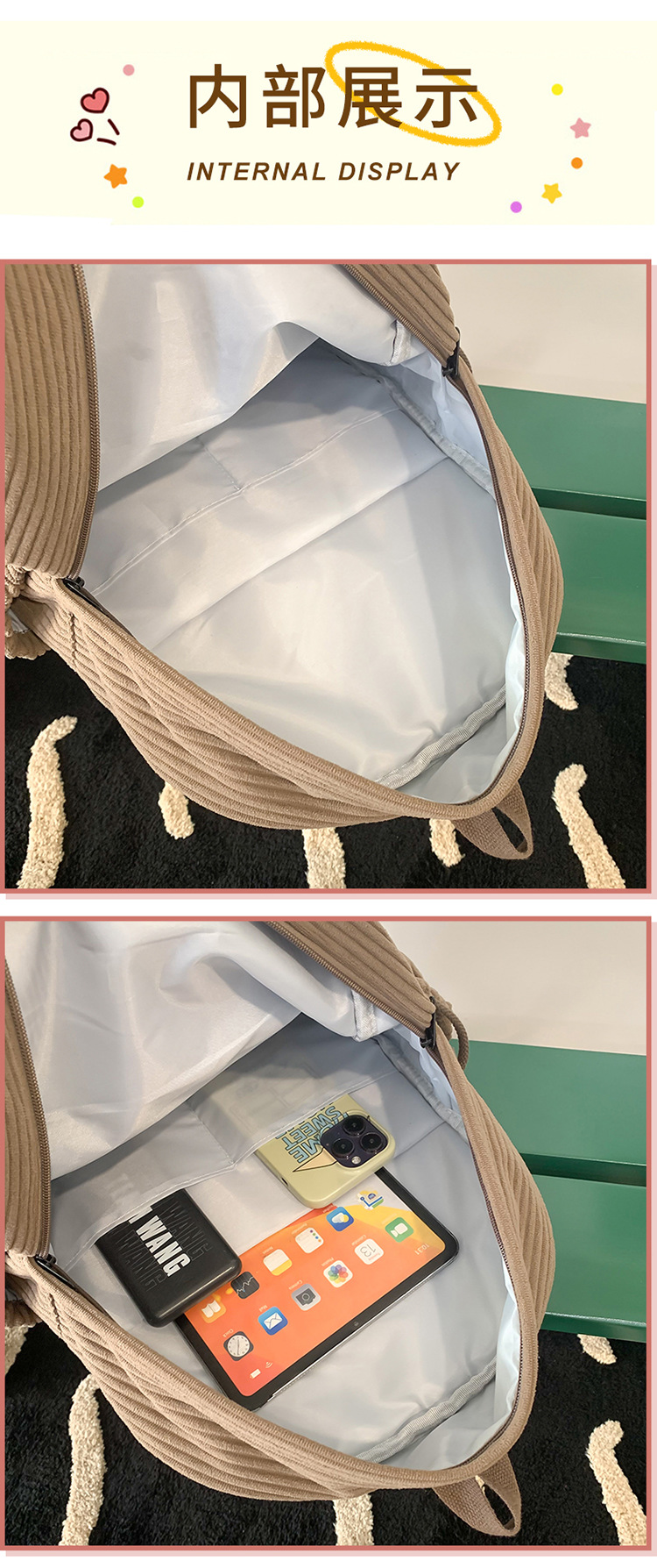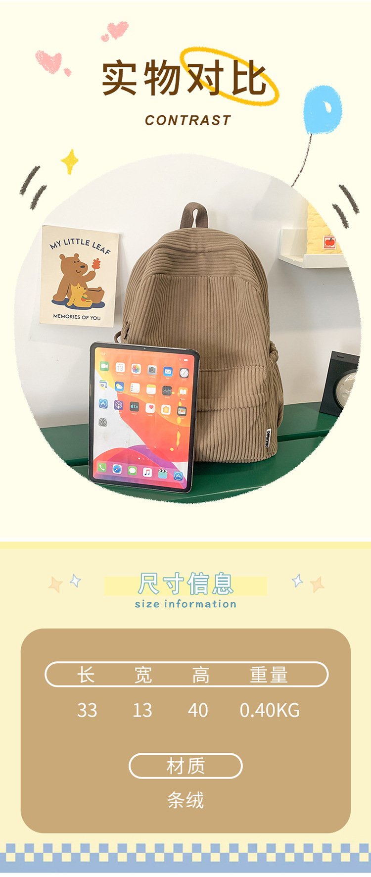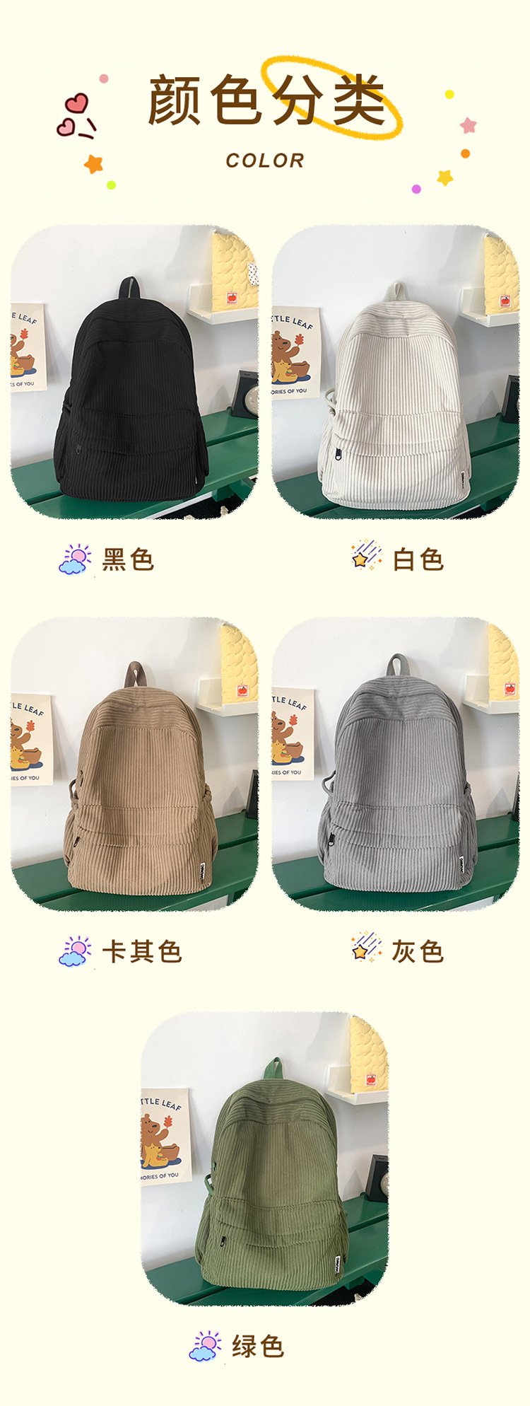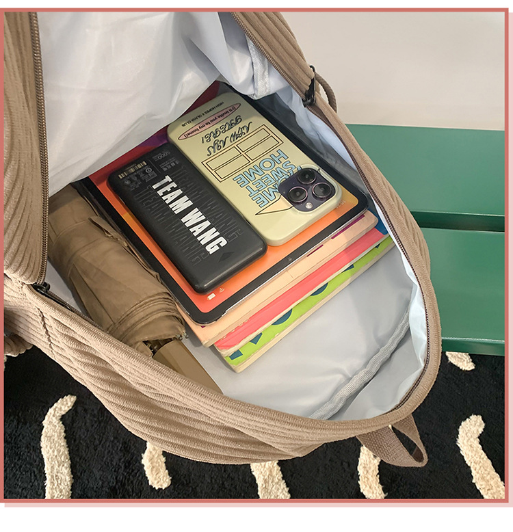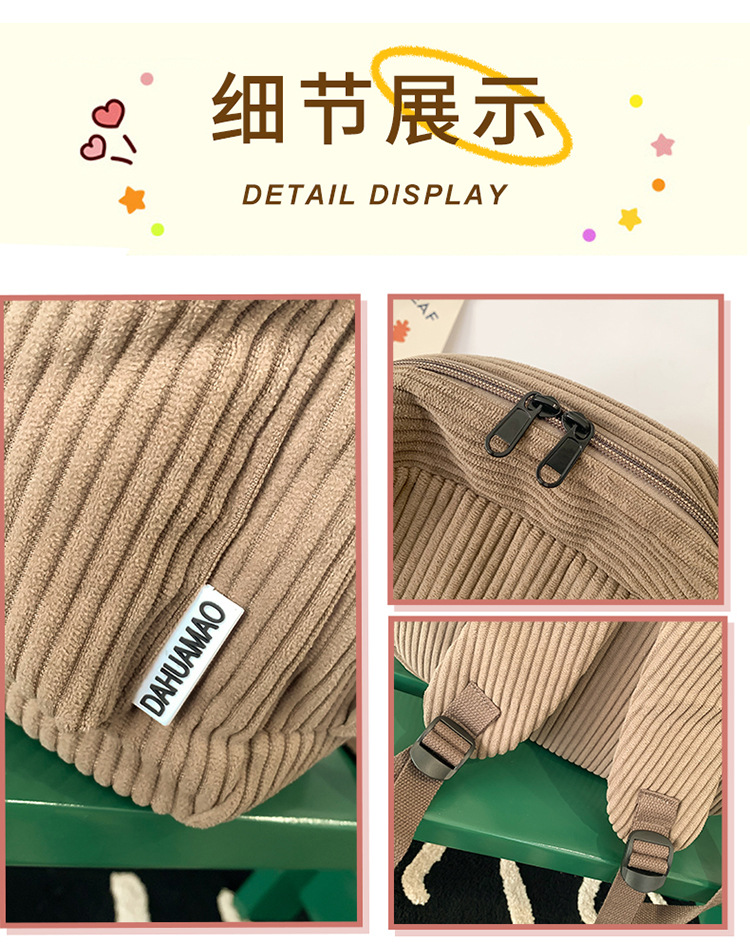 일본 대용량 Schoolbag 여대생 Mori Corduroy 단색 간단한 배낭 고등학교 여행 배낭스토어 가기
