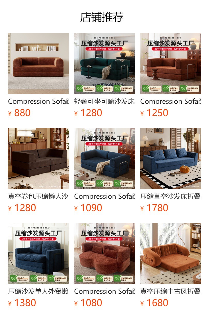 압축 소파, 해외 무역 진공 압축 접이식 소파베드, 일체형 이중용도 소형 소파스토어 가기