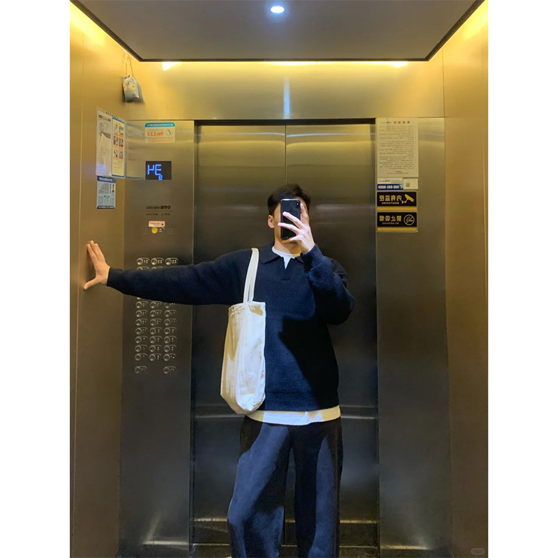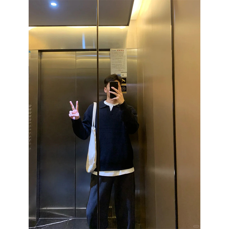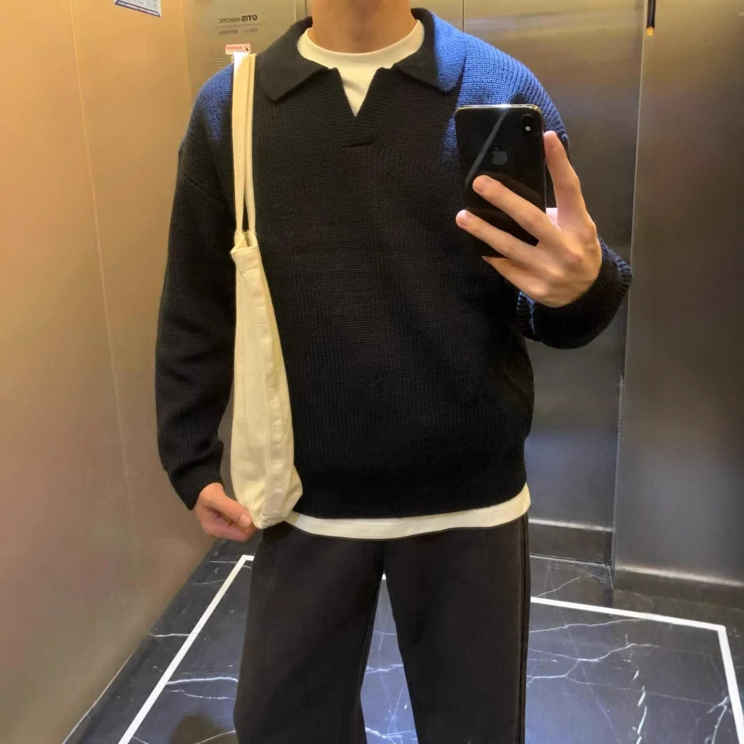 폴로 칼라 스웨터 남성용 루즈 트렌디 브랜드 고급베이스 니트 스웨터 게으른 스타일 셔츠 칼라 풀오버 스웨터 재킷스토어 가기
