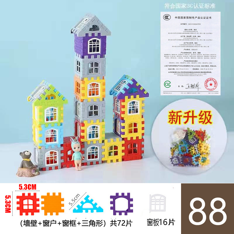 [엄격한 선택] 88 조각 집 건물 블록 어린이를위한 장난감 수제 교육 DIY 스티칭 빌딩 블록 조립 장난감