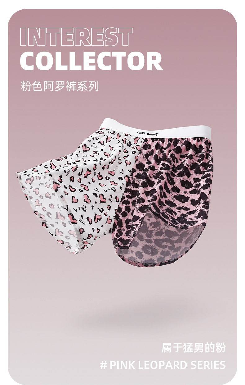 폭발 남성 알로 바지 트렌드 핑크 레오파드 무늬 홈 느슨한 짠 캐주얼 4 코너 소년 속옷 도매