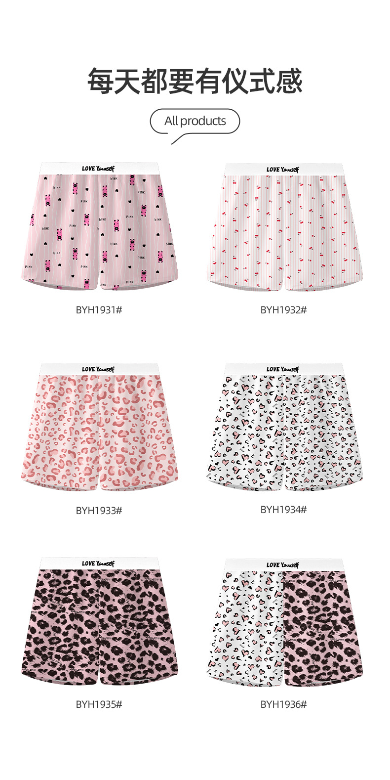 폭발 남성 알로 바지 트렌드 핑크 레오파드 무늬 홈 느슨한 짠 캐주얼 4 코너 소년 속옷 도매스토어 가기
