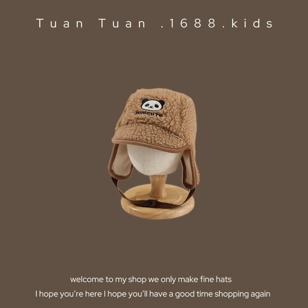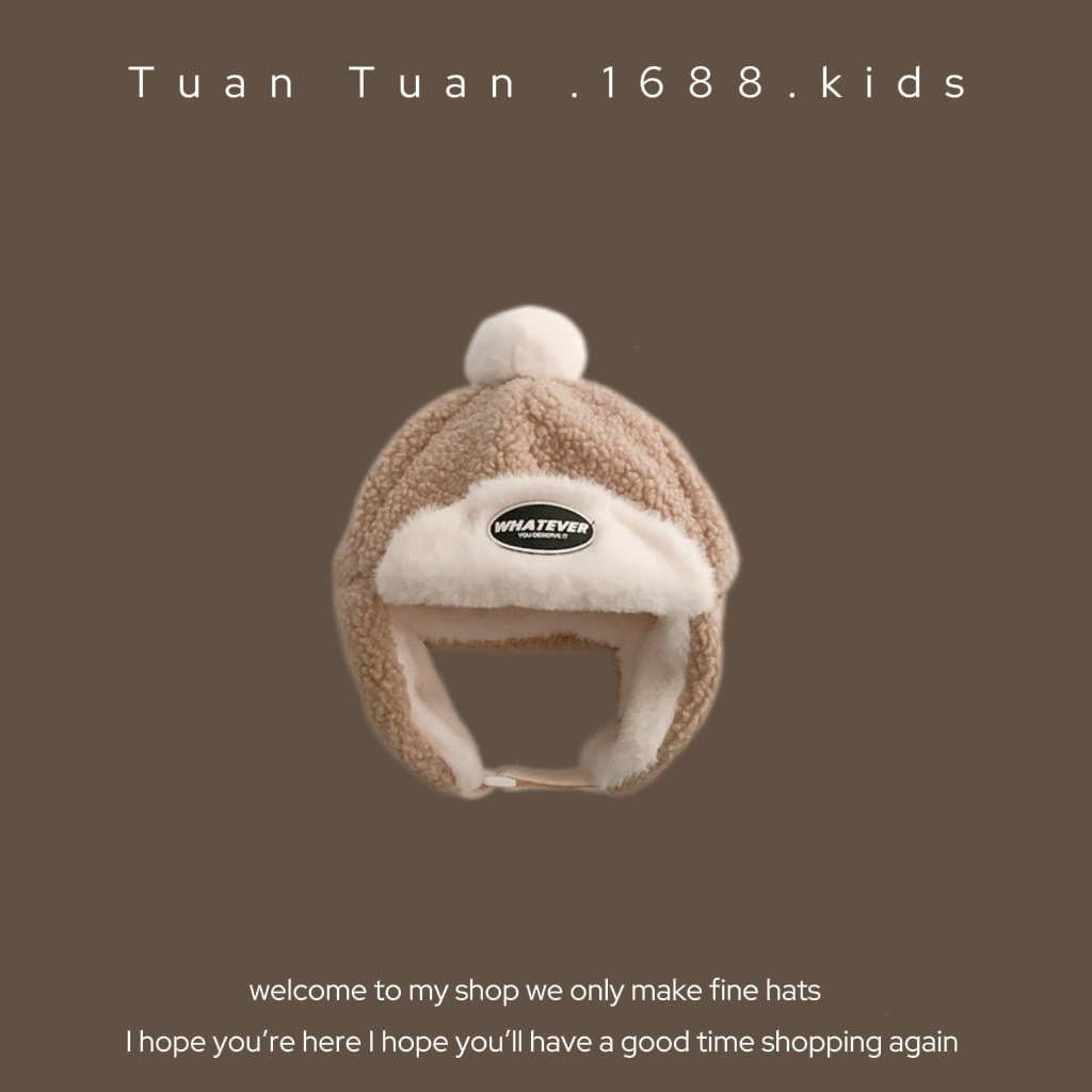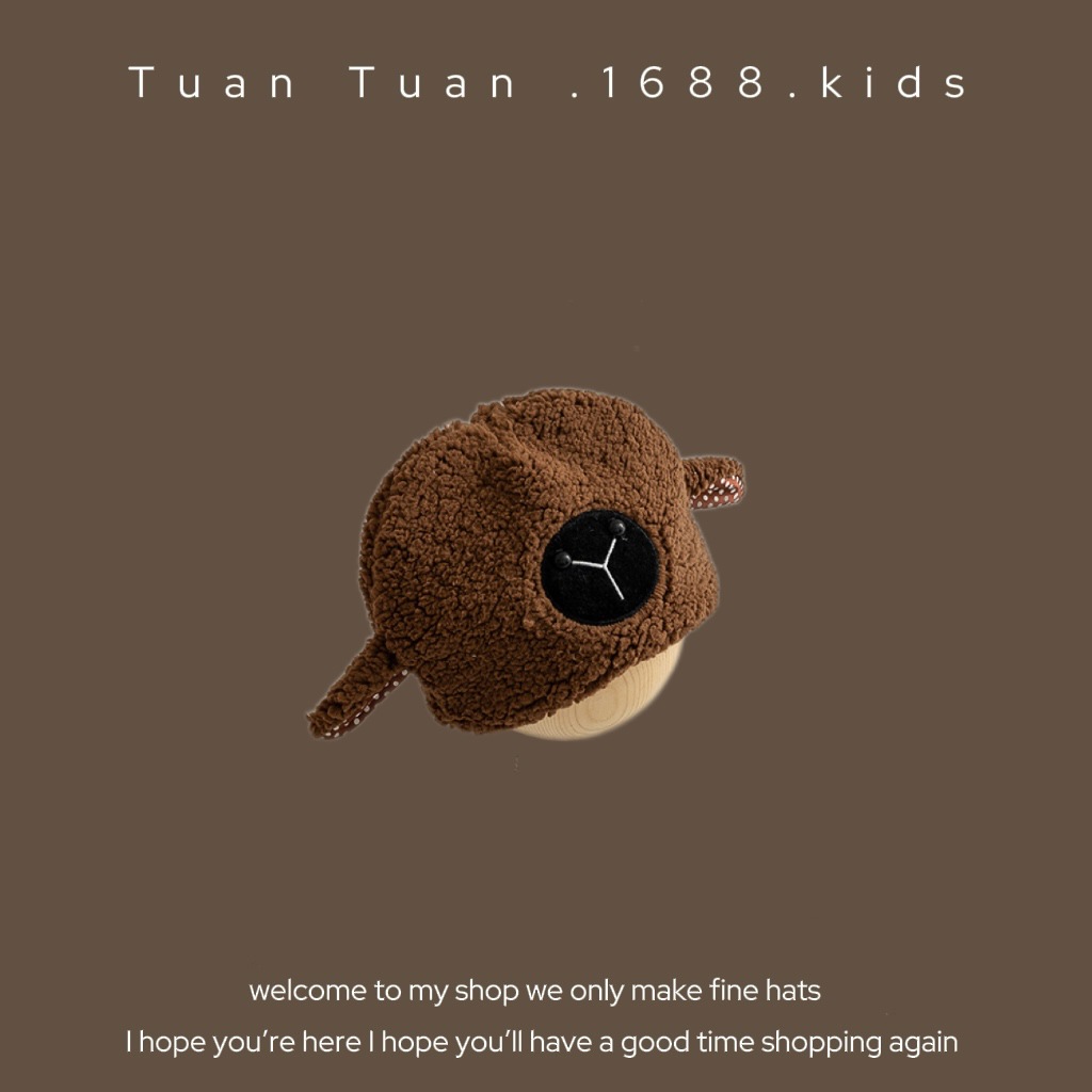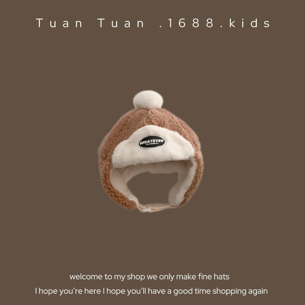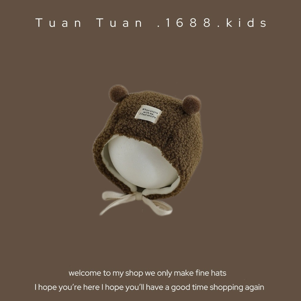 • 양가죽 스플라이스 엣지 귀 보호 모자 커피 색상 42-48CM (5개월-2세 권장) 42-48CM (5개월-2세 권장)