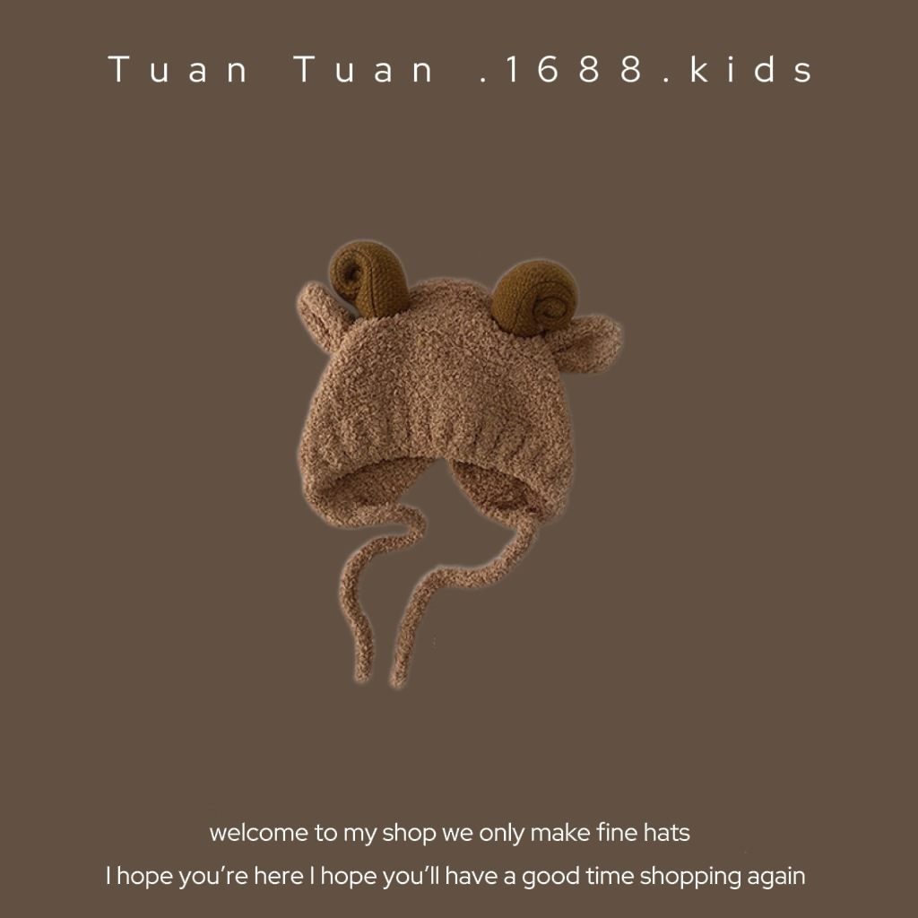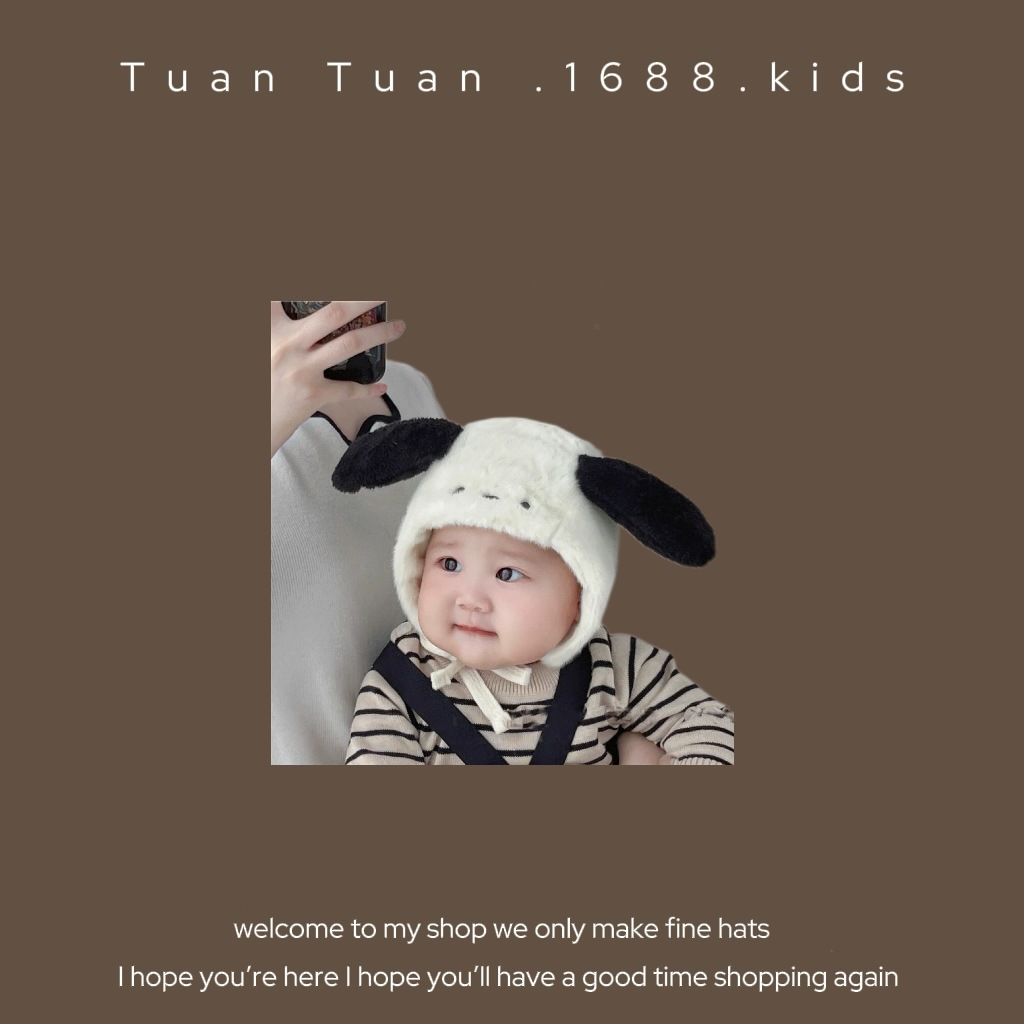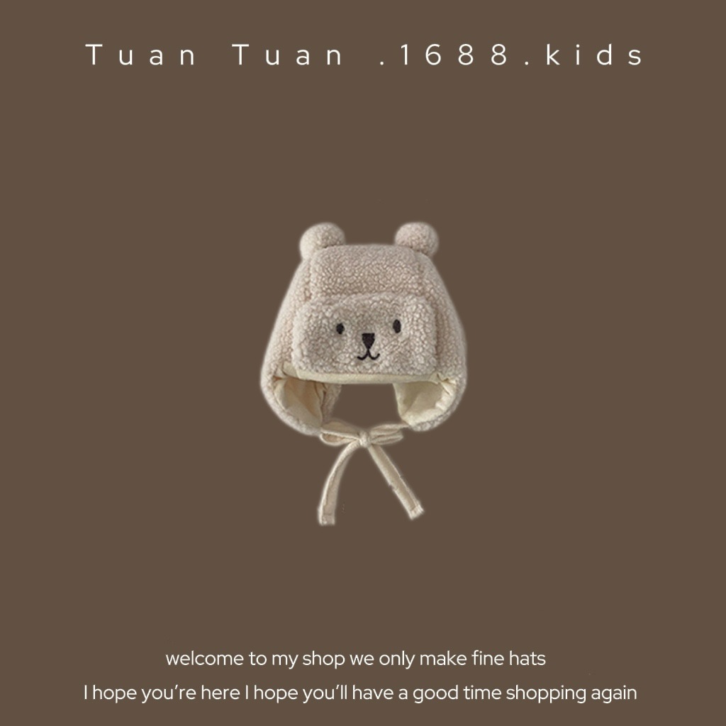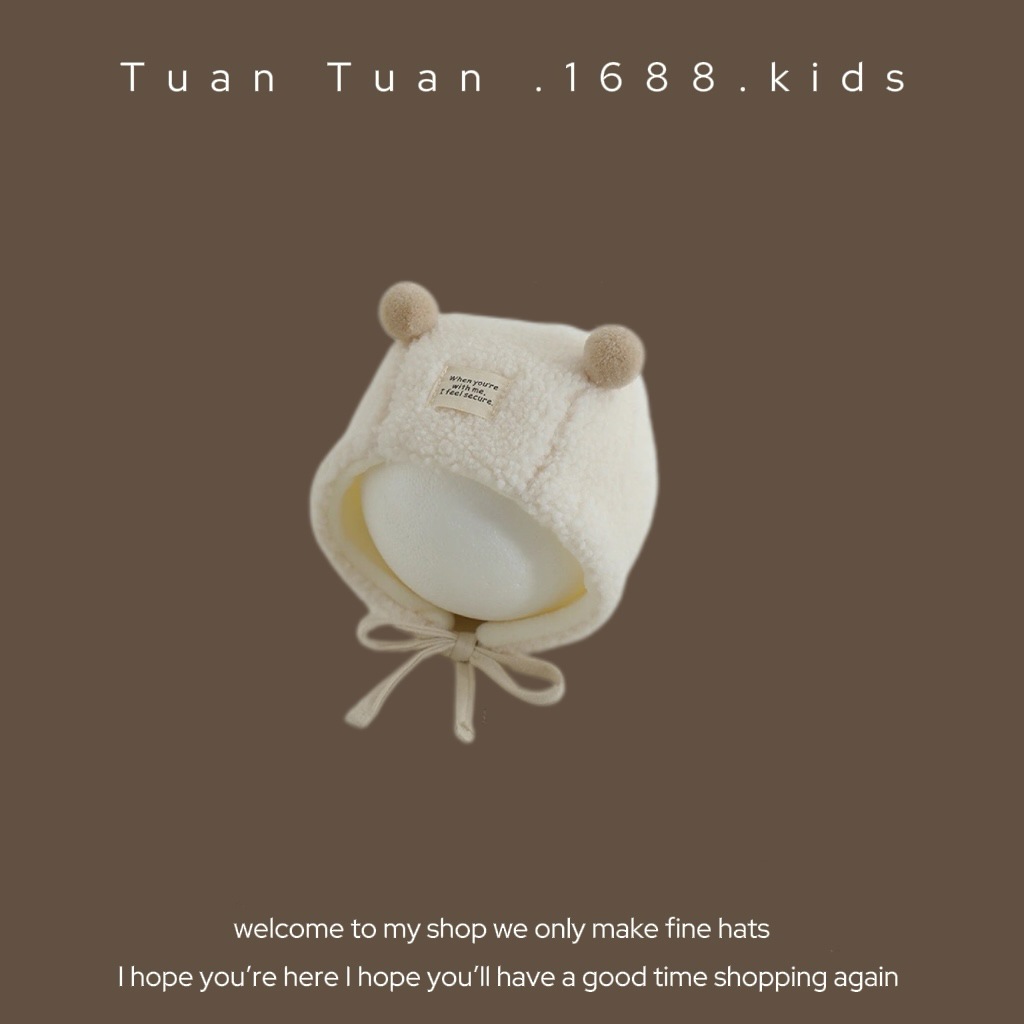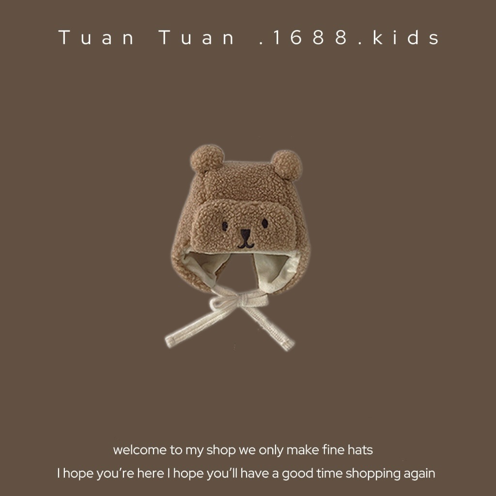 • 양가죽 스플라이스 엣지 귀 보호 모자 커피 색상 42-48CM (5개월-2세 권장) 42-48CM (5개월-2세 권장)