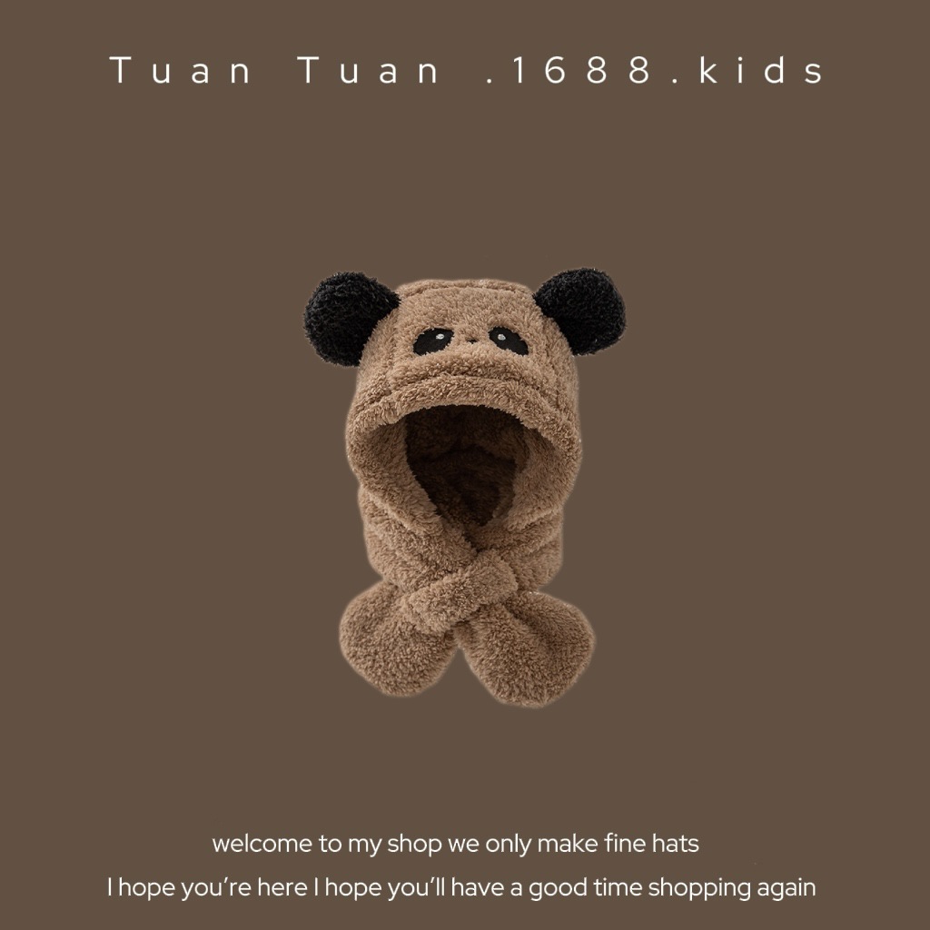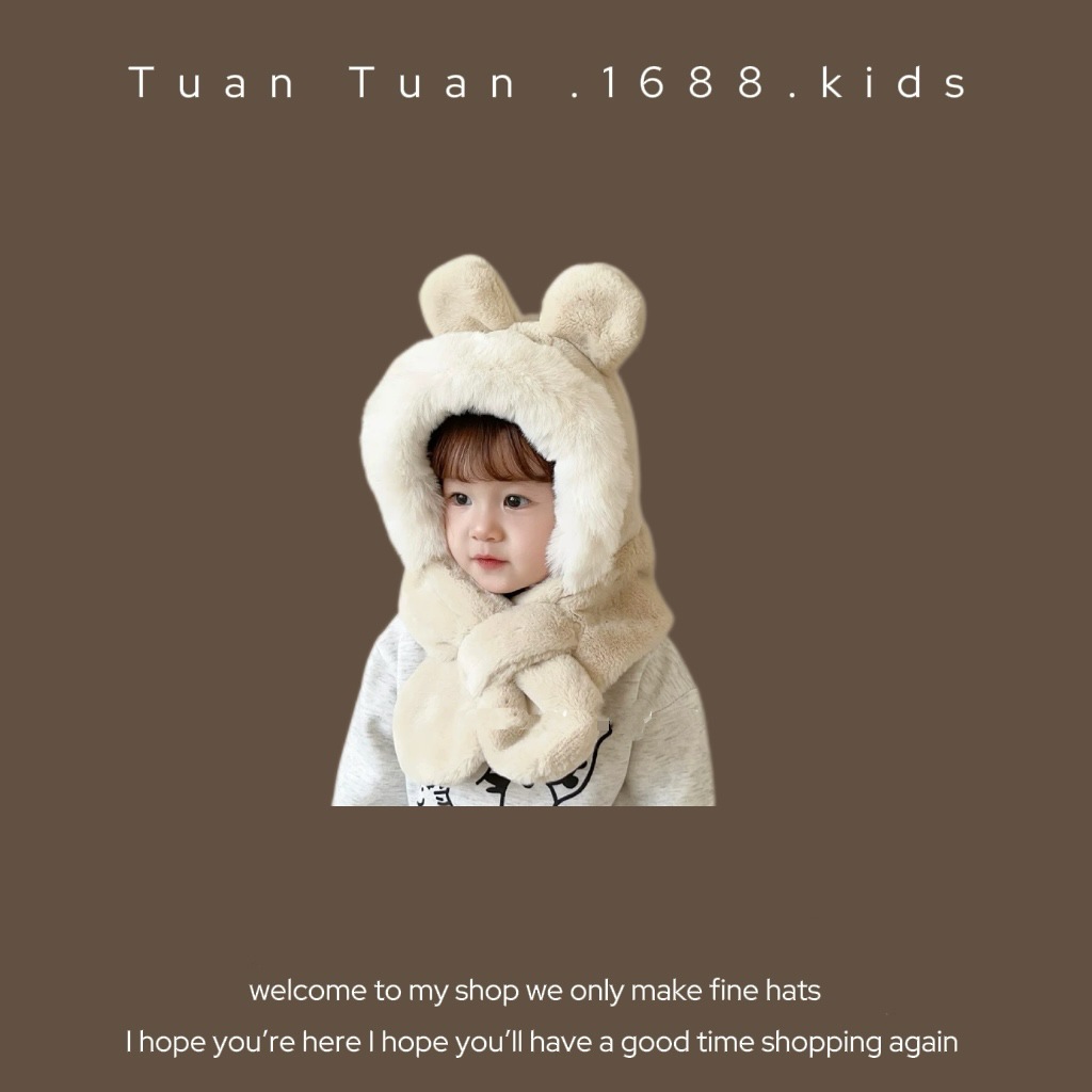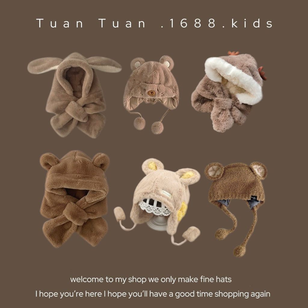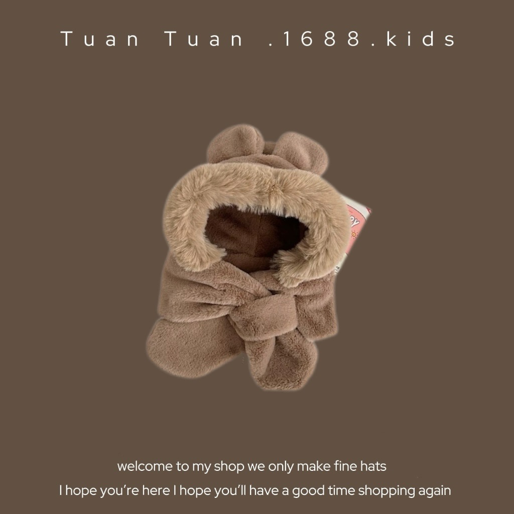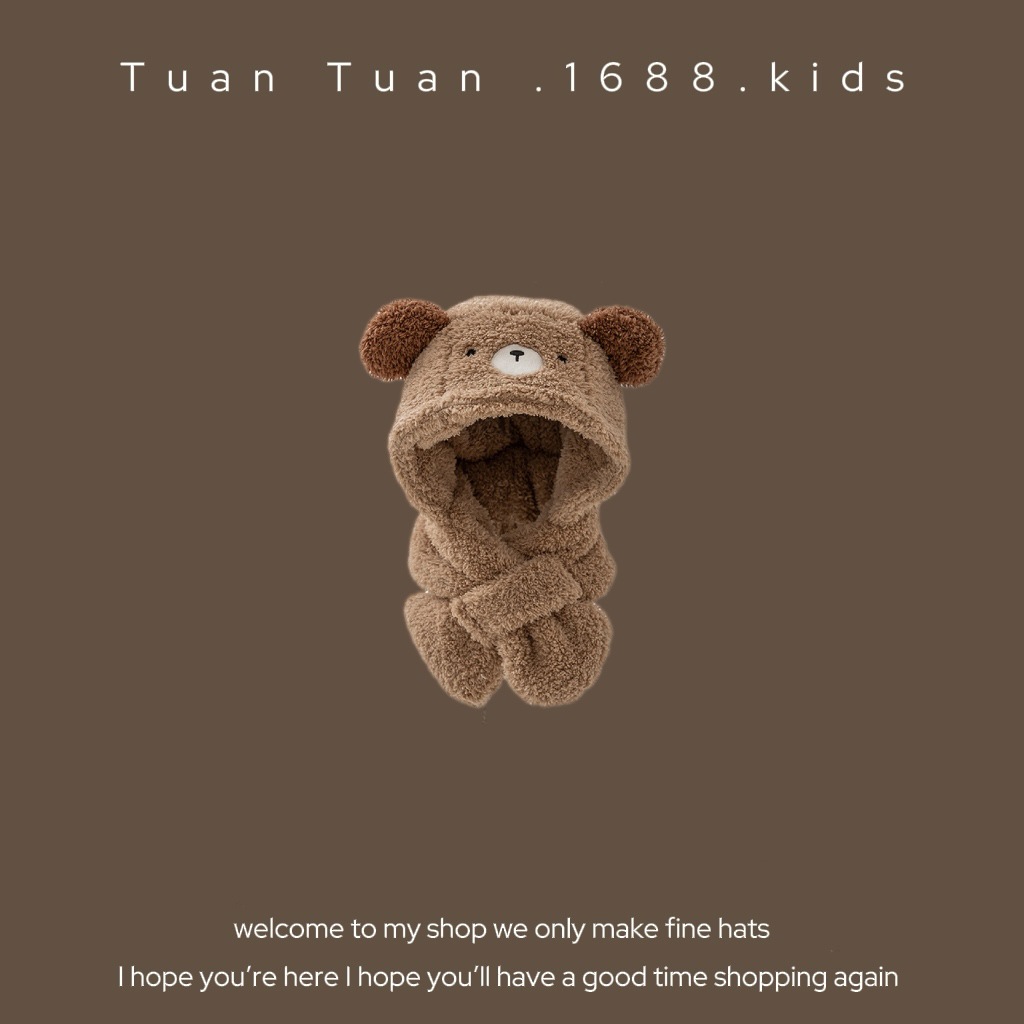 Tuan Tuan ~ ins 어린이 모자와 스카프 소년과 소녀를위한 통합 겨울 만화 봉제 모자 겨울 기모 두껍게스토어 가기