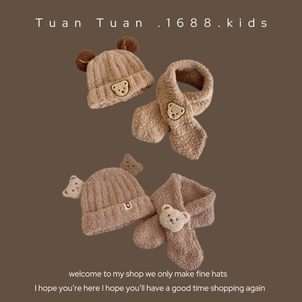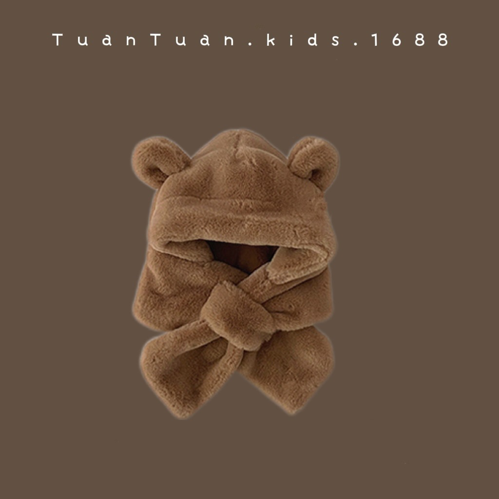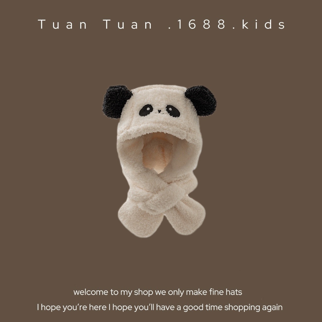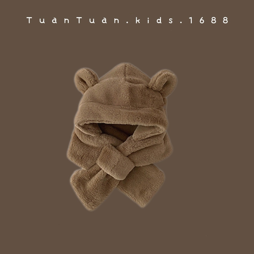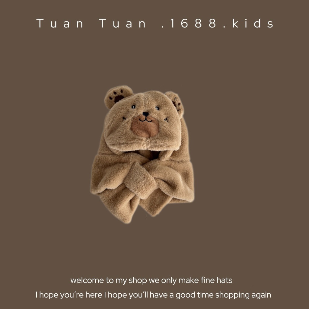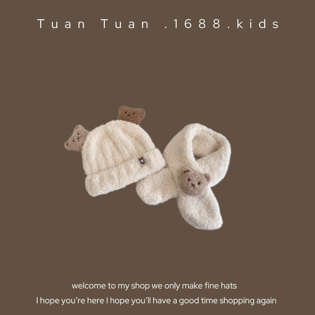 Tuan Tuan ~ ins 어린이 모자와 스카프 소년과 소녀를위한 통합 겨울 만화 봉제 모자 겨울 기모 두껍게스토어 가기