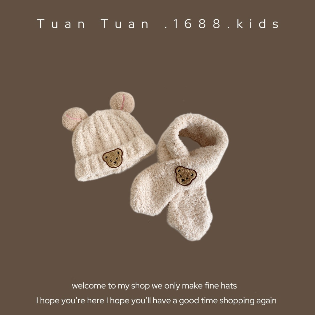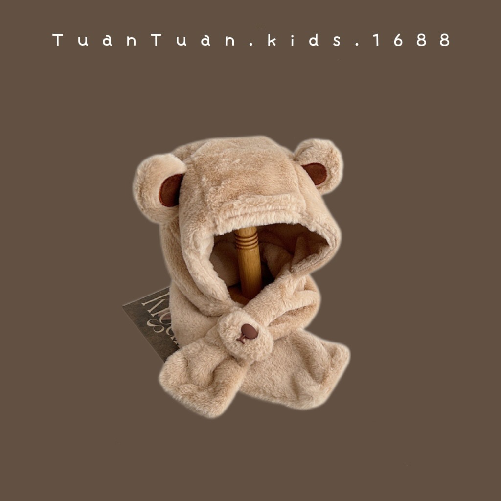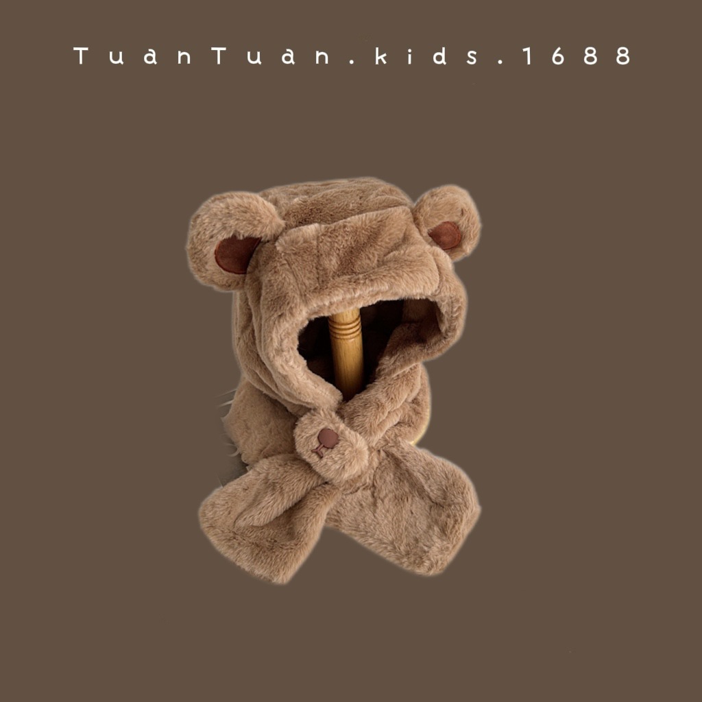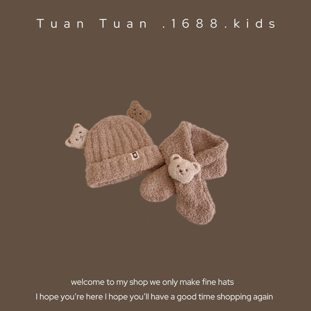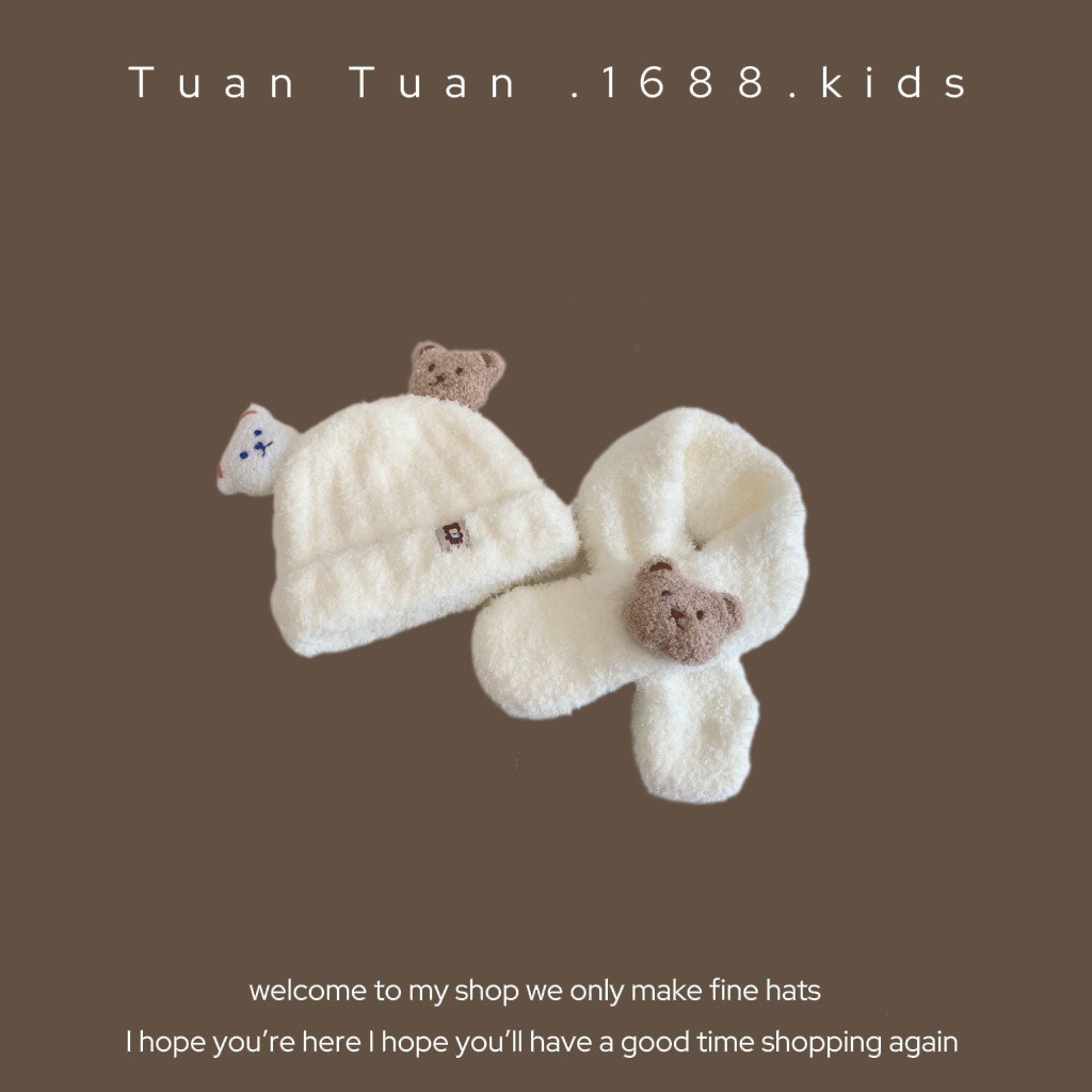 Tuan Tuan ~ ins 어린이 모자와 스카프 소년과 소녀를위한 통합 겨울 만화 봉제 모자 겨울 기모 두껍게스토어 가기