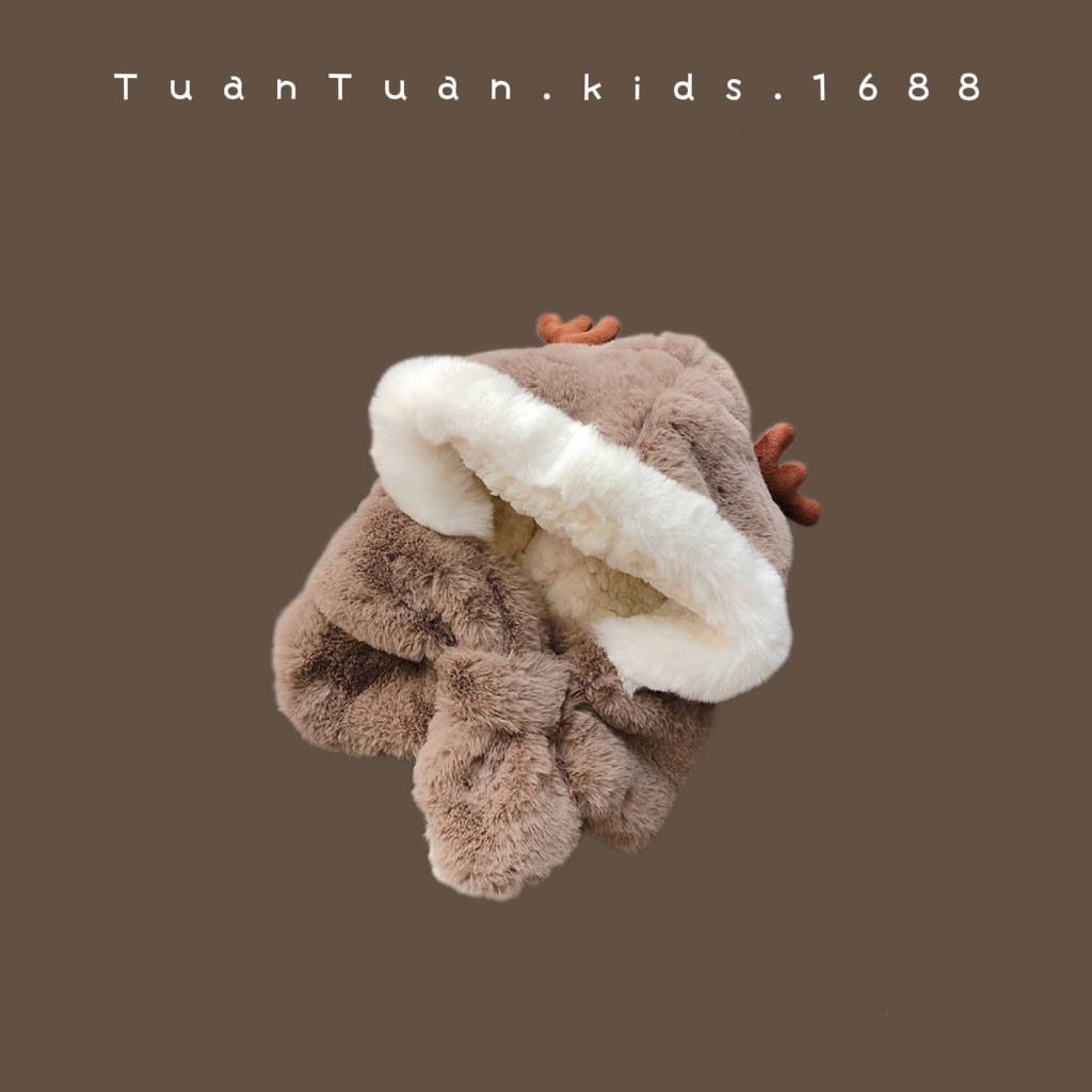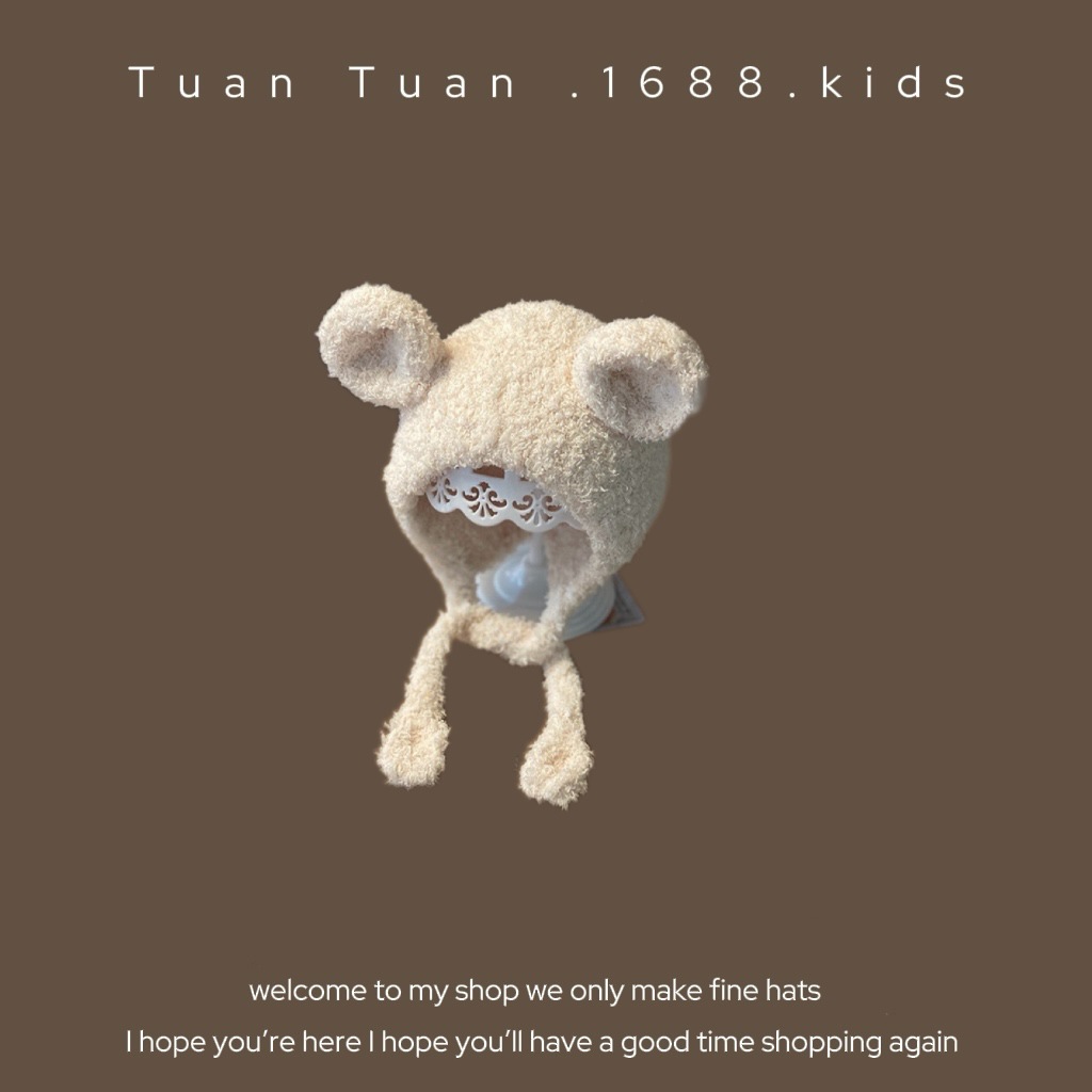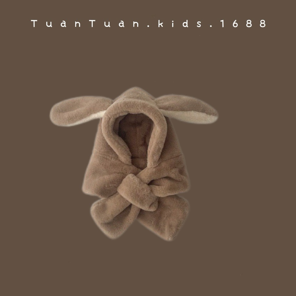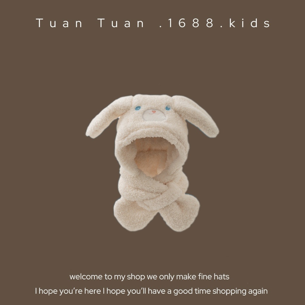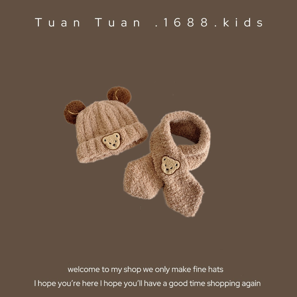 Tuan Tuan ~ ins 어린이 모자와 스카프 소년과 소녀를위한 통합 겨울 만화 봉제 모자 겨울 기모 두껍게스토어 가기
