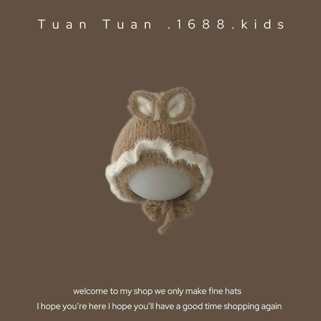 • 토끼 레이스 플러시 모자 카키 42-48CM (5개월~2세 권장)