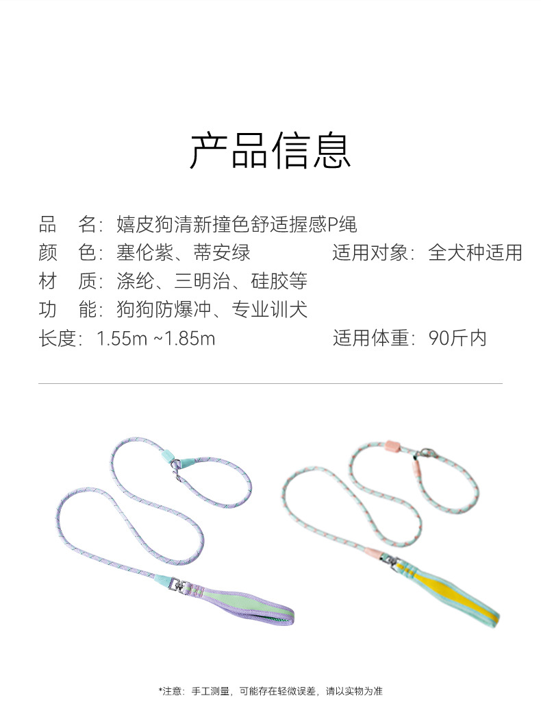 개 P 밧줄 신선한 대조 색상 작고 중간 크기의 개가 테디 베어 골든 리트리버 큰 개 폭발 방지 러시 애완 동물 가죽 끈스토어 가기