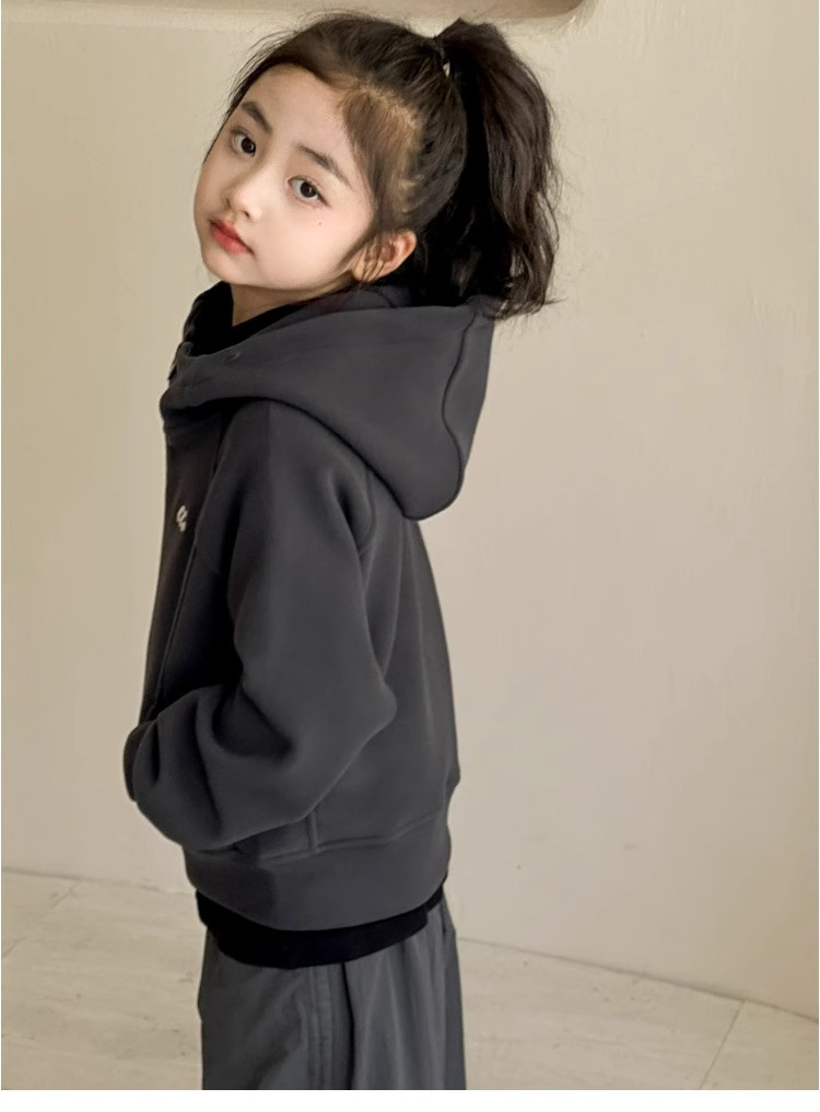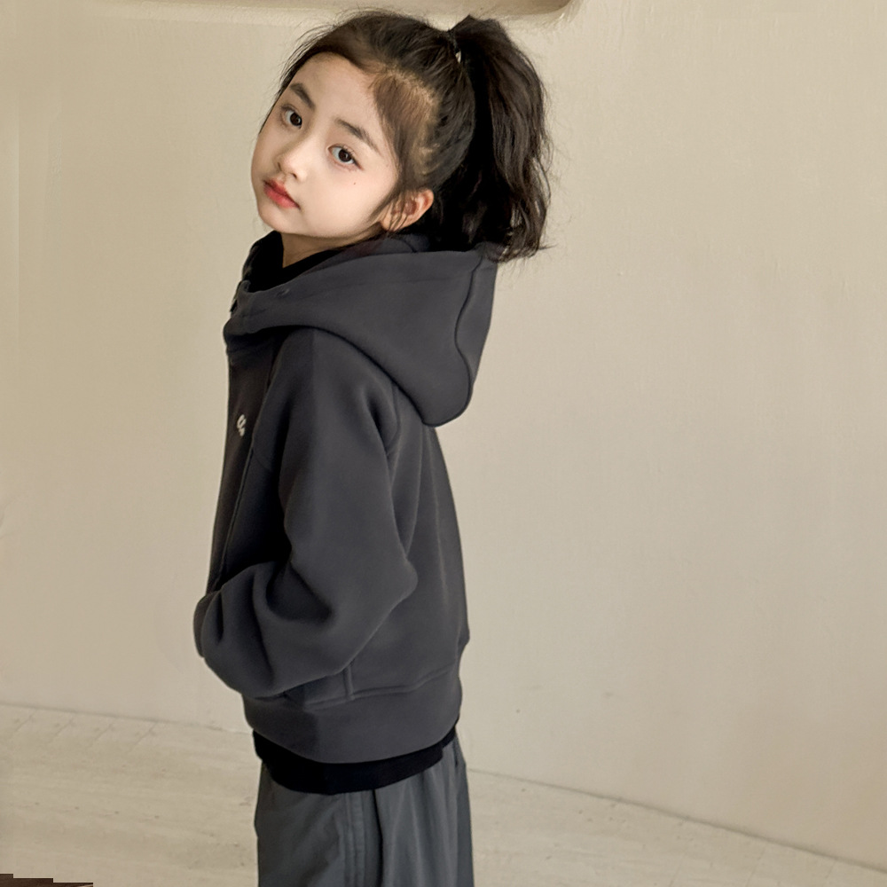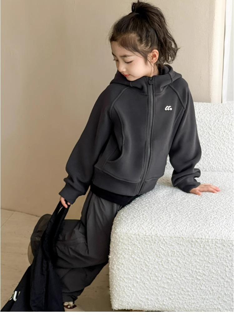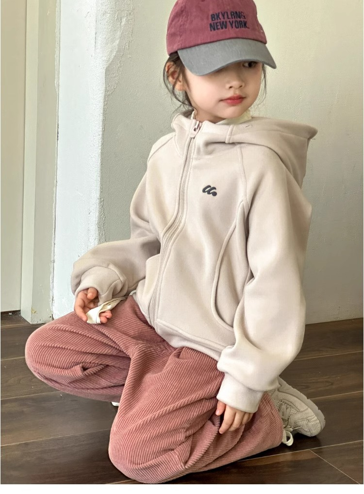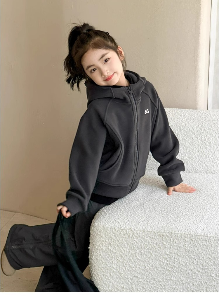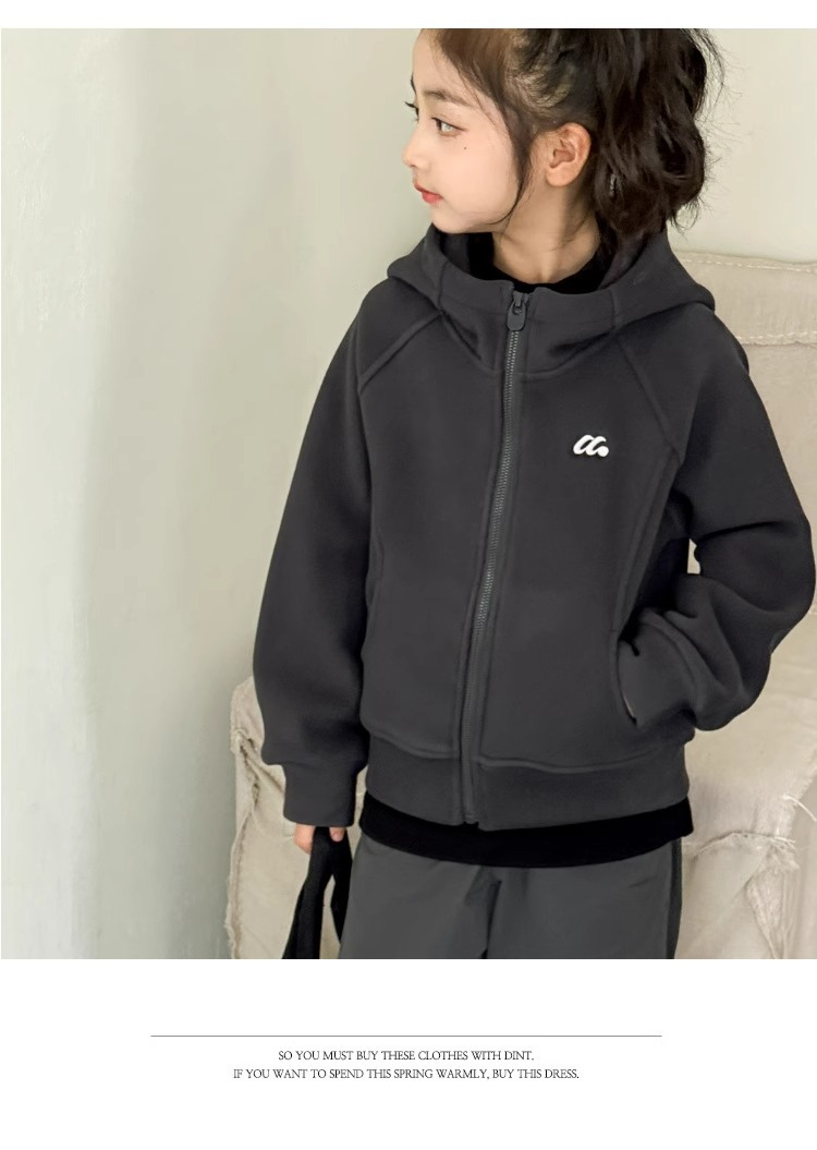 소녀 양면 양털 스웨터 코트 가을과 겨울 어린이 후드 지퍼 셔츠 부드러운 스포츠 카디건 대형 어린이 탑