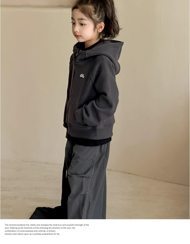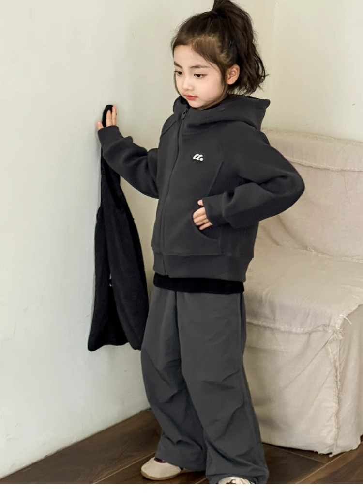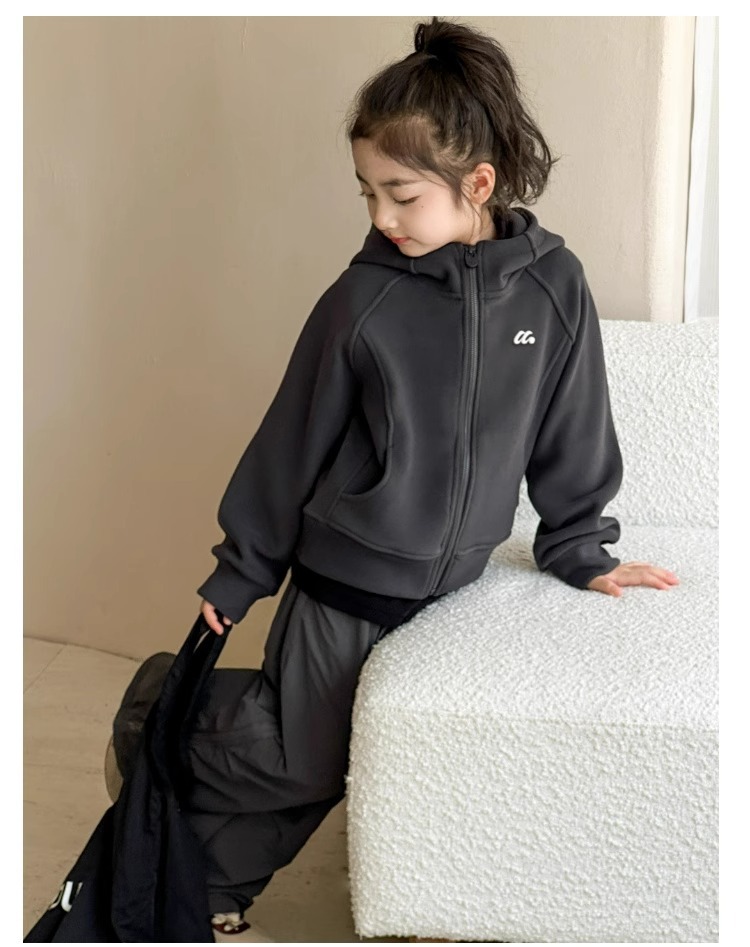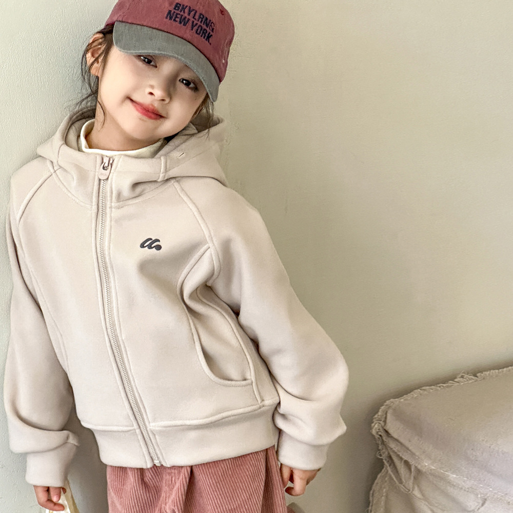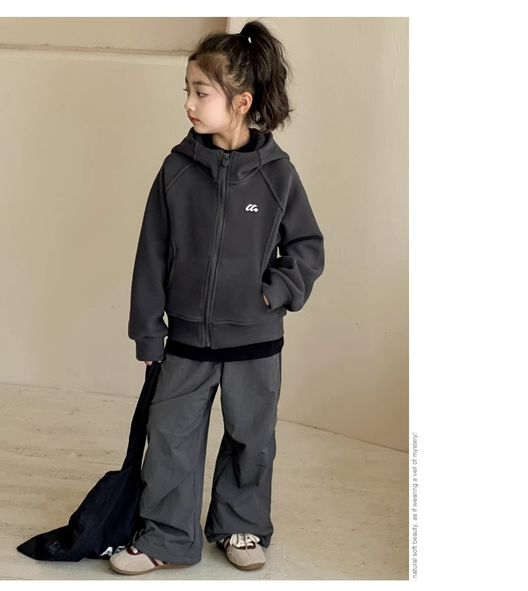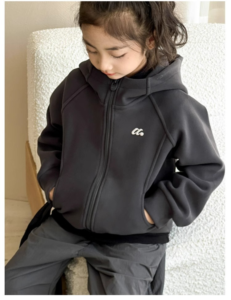 소녀 양면 양털 스웨터 코트 가을과 겨울 어린이 후드 지퍼 셔츠 부드러운 스포츠 카디건 대형 어린이 탑