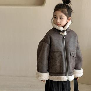 女童外套秋冬款儿童羊羔绒机车夹克皮毛一体中大童加厚洋气上衣潮