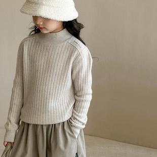 女童半高领毛衣2024新款韩版儿童羊毛混纺针织衫中大童刺绣打底衫