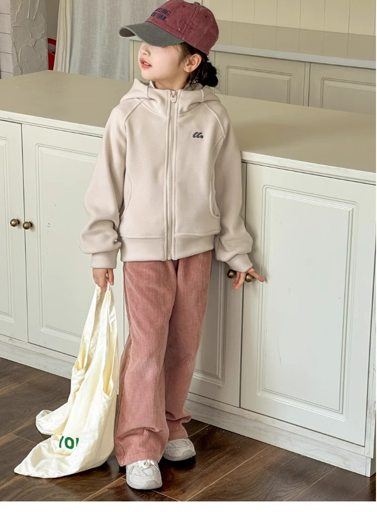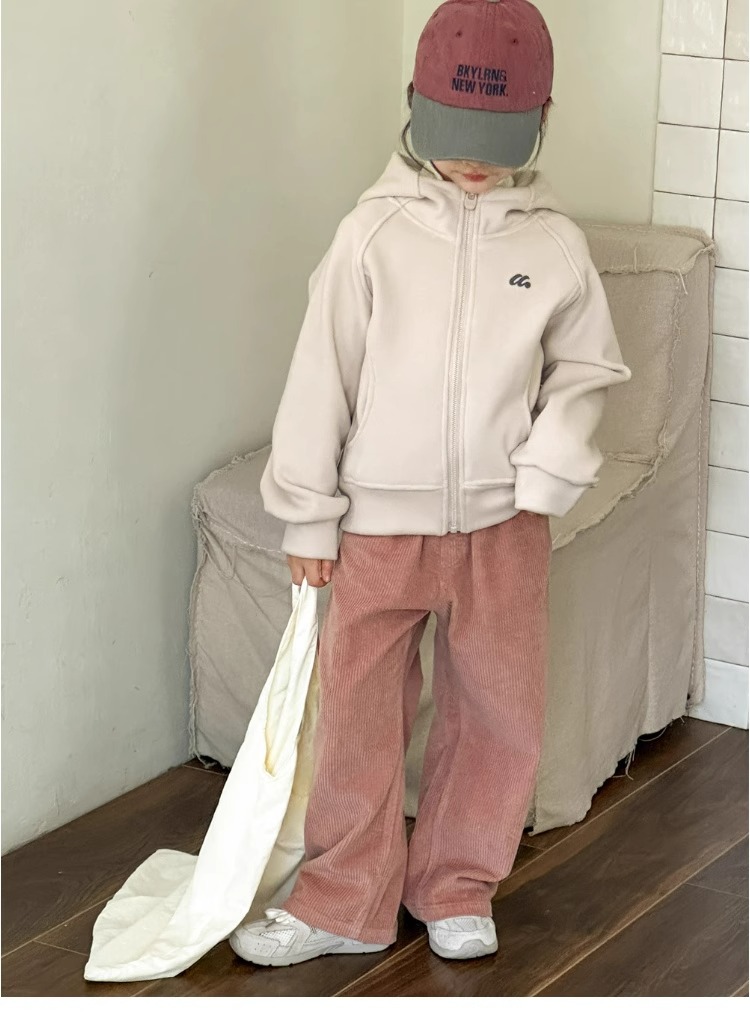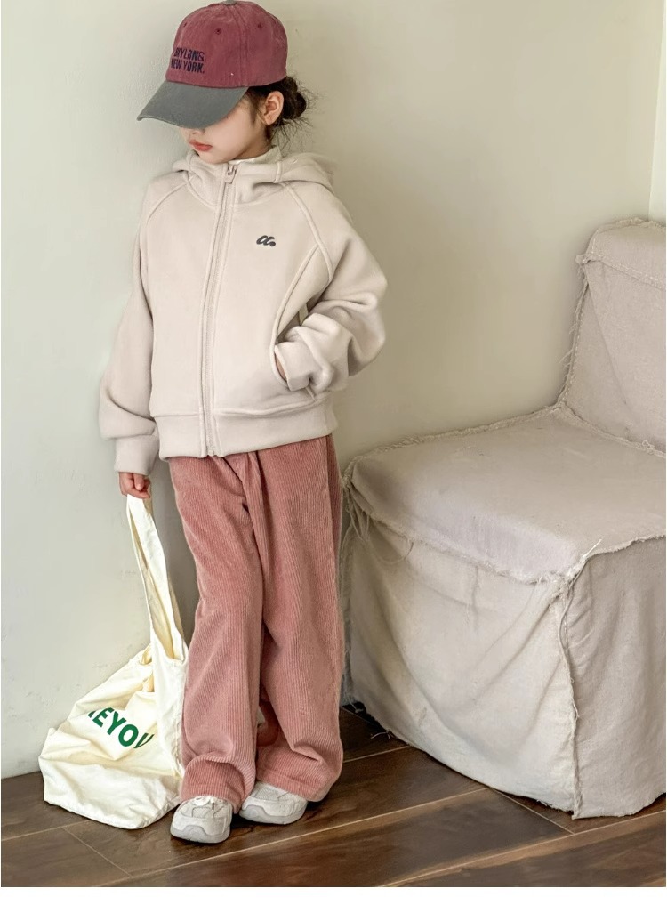 女童裤子秋冬款儿童灯芯绒直筒裤复古宽松高腰休闲裤女孩阔腿裤厚