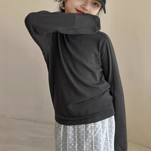 女童半高领打底衫秋冬款2024新款儿童纯色中大童休闲T恤弹力上衣